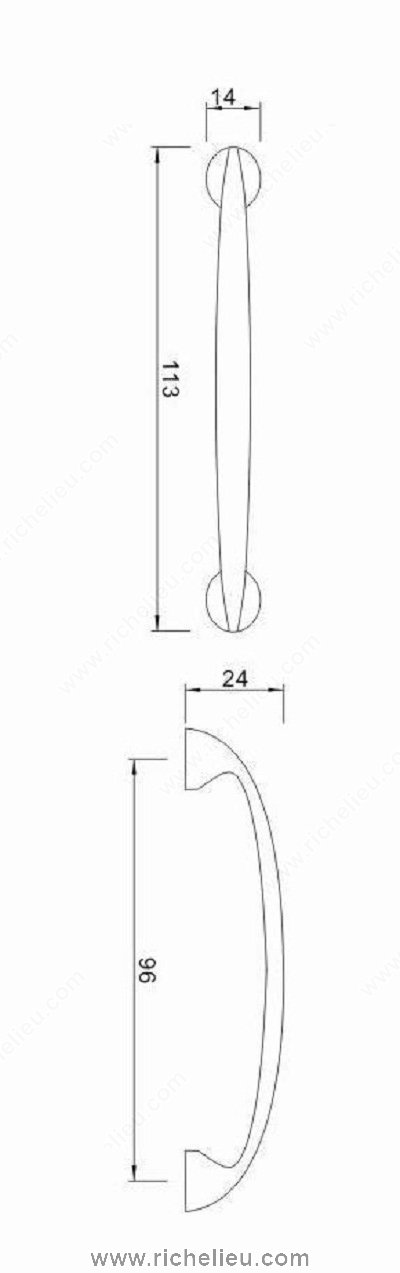 Richelieu BP6231396174 Transitional Metal Pull - 6231 offers a perfect blend of elegance and functionality for your furniture and cabinetry. This thoughtfully designed curved pull features wide posts that gracefully flare inward, providing a subtle charm that enhances any décor. Crafted from high-quality zamak, it ensures durability while maintaining a refined appearance. With an overall length of 4 7/16 inches and a projection of 15/16 inches, this pull is perfectly sized for comfortable grip and usability. The center-to-center measurement of 3 25/32 inches makes it compatible with a variety of installations, while the matte chrome finish in gray and chrome adds a contemporary touch to your spaces. Installation is straightforward, thanks to the included M4 screws, making it easy for both professionals and DIY enthusiasts alike. The transitional style of the pull seamlessly integrates into various design themes, from modern to traditional, ensuring versatility in your projects. Whether you're updating kitchen cabinets, bathroom vanities, or dressers, the Richelieu BP6231396174 is an excellent choice that combines style and practicality. Elevate your interiors with this stylish pull that is ready to ship via UPS.