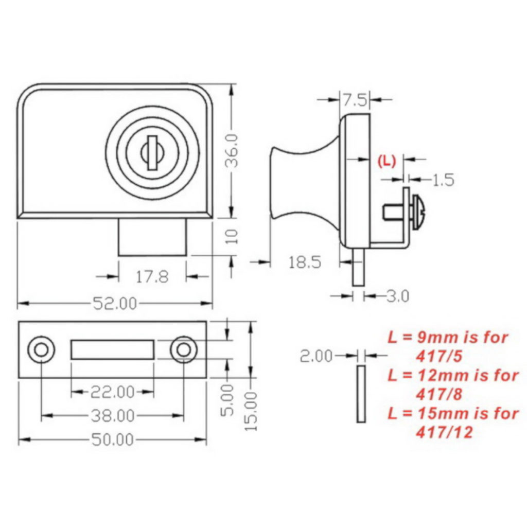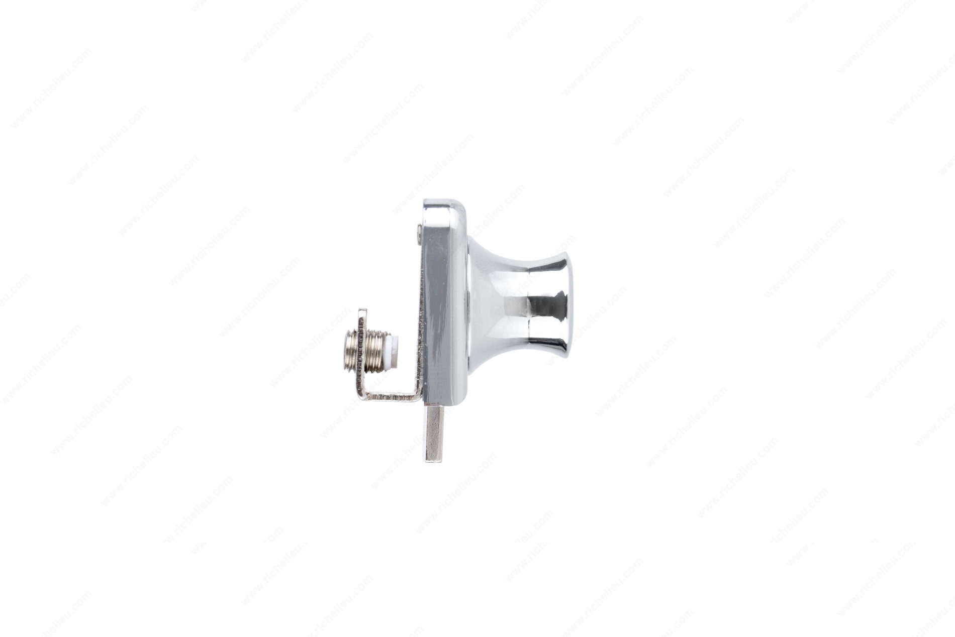 Richelieu BP641751140 Double Door Cabinet Lock For Glass offers a sophisticated locking solution specifically designed for glass furniture. This innovative double glass door lock does not require any holes to be drilled into the glass, ensuring integrity and aesthetics are preserved. The cylinder can also function as a handle, providing dual functionality that enhances convenience. Installation and operation are straightforward, making it an excellent choice for both professionals and DIY enthusiasts. The lock attaches seamlessly to the right-hand door, and when engaged, it prevents the left-side door from passing over the overlap of the lock, ensuring secure closure and safety. Crafted from durable zinc die cast, this lock is built to withstand everyday use while maintaining its sleek appearance. The chrome finish adds a touch of modern elegance, making it suitable for various interior designs. It accommodates glass thicknesses ranging from 3/16 to 1/4 inch, allowing for flexibility in application. Keyed alike #110 enhances security by ensuring that multiple locks can be operated with the same key. The Richelieu BP641751140 is an essential hardware piece for creating secure and stylish glass cabinet doors.