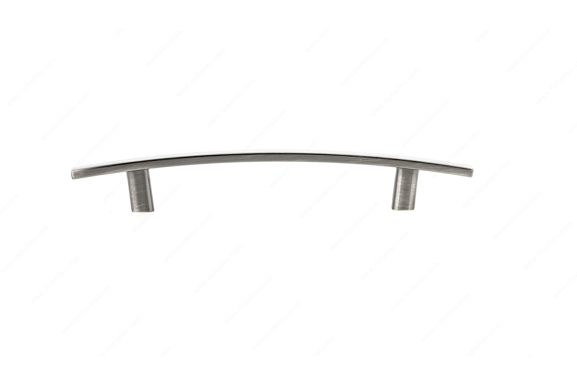 Richelieu BP650128169 Transitional Metal Pull - 650 offers a stylish upgrade for kitchen and bathroom cabinetry. This pull showcases a slightly curved design that enhances the aesthetic of any interior décor, combining functionality with elegance. Crafted from durable zamak, it promises longevity while maintaining a refined look. With a center-to-center measurement of 5 1/32 inches, this pull is well-suited for various cabinet configurations. The overall dimensions are 7 25/32 inches in length, 7/16 inches in width, and it projects 1 7/32 inches from the surface, ensuring a comfortable grip and a distinctive presence. Finished in black stainless steel, it adds a modern touch, making it an excellent choice for contemporary and transitional styles alike. Included with each pull is an 8/32 inch screw for easy installation, ensuring that the upgrade process is seamless. Packaged neatly in a bag, the Richelieu BP650128169 is part of a new collection that is designed to elevate your space effortlessly. Whether you're renovating or building anew, this pull is an essential addition that combines practicality with a striking design.