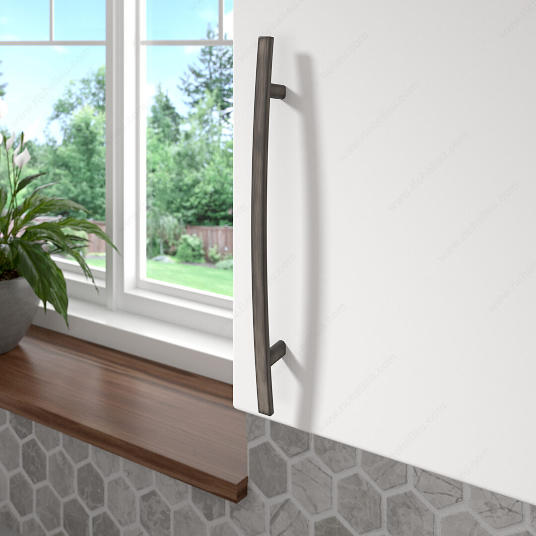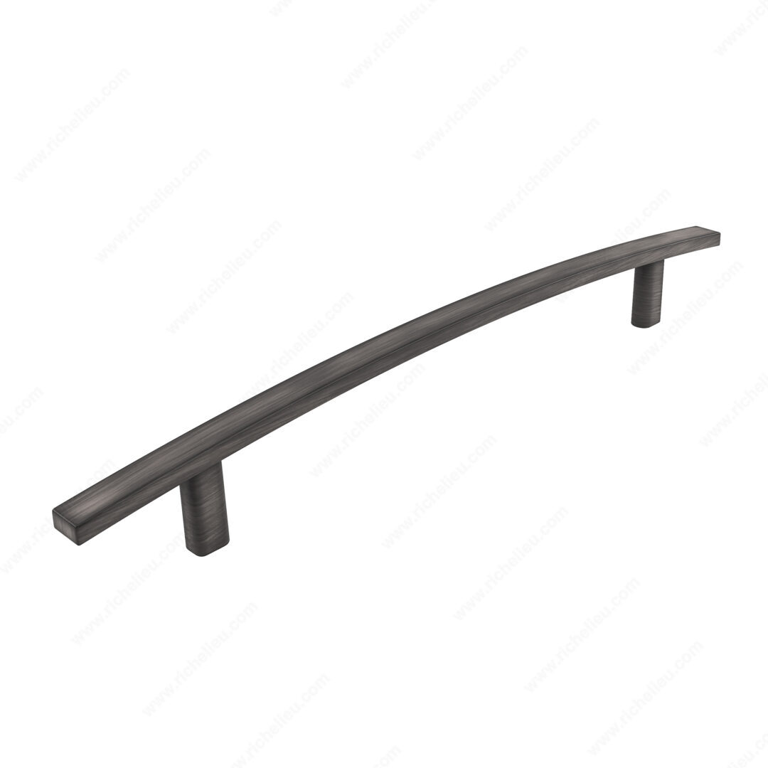 Richelieu BP650192143 Transitional Metal Pull - 650 offers a refined touch to kitchen and bathroom cabinetry. This elegantly designed pull features a slightly curved shape that enhances the aesthetic of any interior décor, making it an ideal choice for those seeking a sophisticated upgrade. Crafted from durable zamak, this pull boasts both strength and longevity, ensuring it withstands daily use while maintaining its appealing look. The antique nickel finish adds a timeless quality, harmonizing beautifully with the gray and chrome accents. With overall dimensions of 10 7/8 inches in length, a width of 7/16 inches, and a projection of 1 1/4 inches, it seamlessly fits into various cabinet styles. Installation is straightforward, as it comes with 8/32 inch screws included, allowing for a hassle-free setup. The center-to-center measurement of 7 9/16 inches makes it compatible with many existing cabinet layouts, providing flexibility in design choices. Packaged in a convenient bag, the Richelieu BP650192143 is ready to ship via UPS, making it an accessible option for both professionals and DIY enthusiasts. Elevate your cabinetry with this transitional metal pull that combines functionality with a touch of elegance.