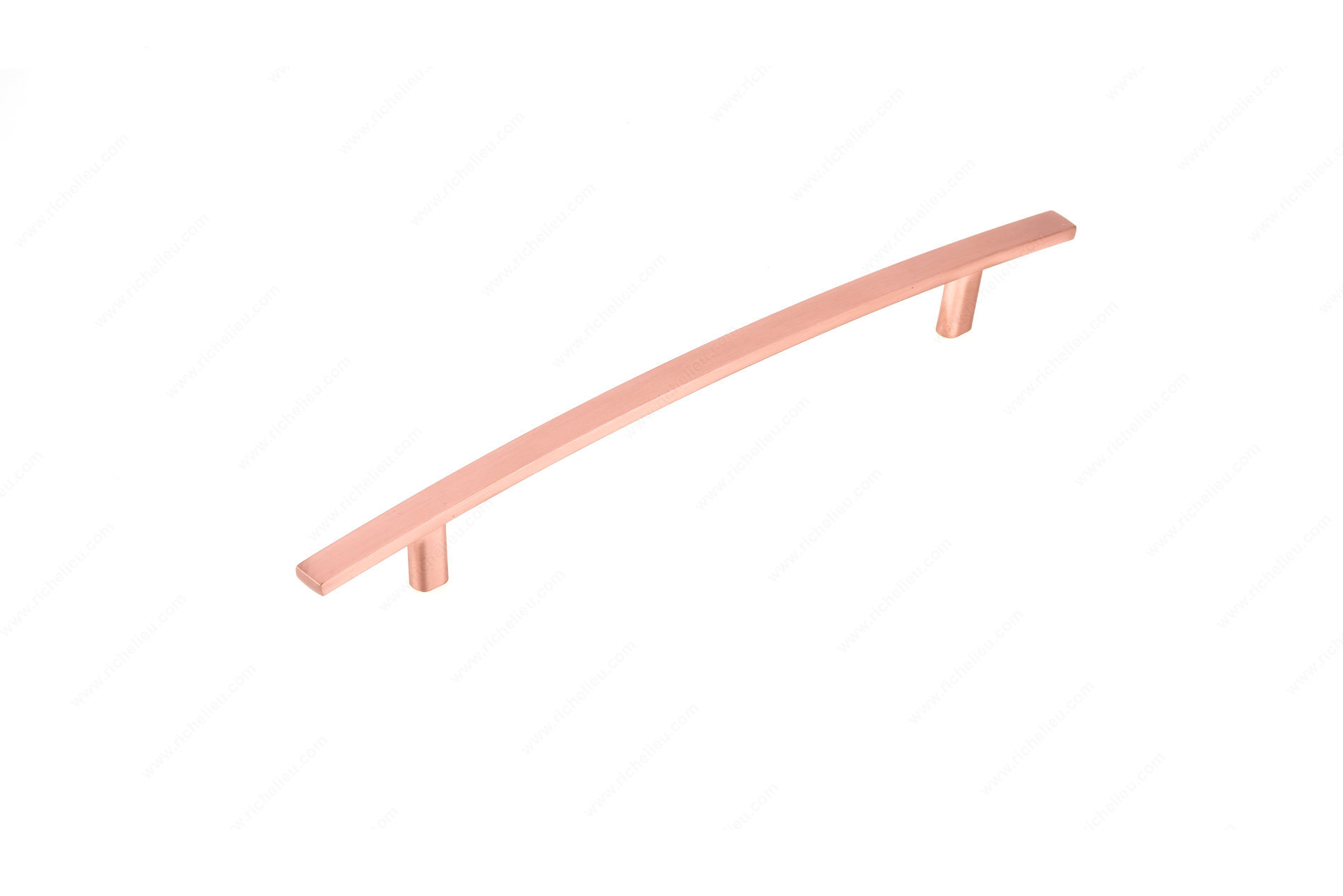 Richelieu BP650192192 Transitional Metal Pull - 650 brings a sophisticated touch to your kitchen and bathroom cabinetry. The elegant, slightly curved design of this pull not only enhances the aesthetic appeal of your interiors but also provides a comfortable grip for everyday use. Crafted from durable zamak, this pull is designed to withstand the rigors of daily operation while maintaining its stylish appearance. With an overall length of 10 7/8 inches and a projection of 1 1/4 inches, it offers a perfect balance of size and functionality. The center-to-center measurement of 7 9/16 inches ensures compatibility with a variety of cabinet styles, making it an ideal choice for any renovation or new build. Finished in a stunning rose gold hue, it adds a contemporary flair to your space, pairing beautifully with other elements in the New Collection. Each pull is packaged conveniently in a bag and includes an 8/32 inch screw for easy installation. Whether you're updating your cabinetry or completing a new project, the Richelieu BP650192192 Transitional Metal Pull is a stylish and practical choice that will elevate your home's décor.