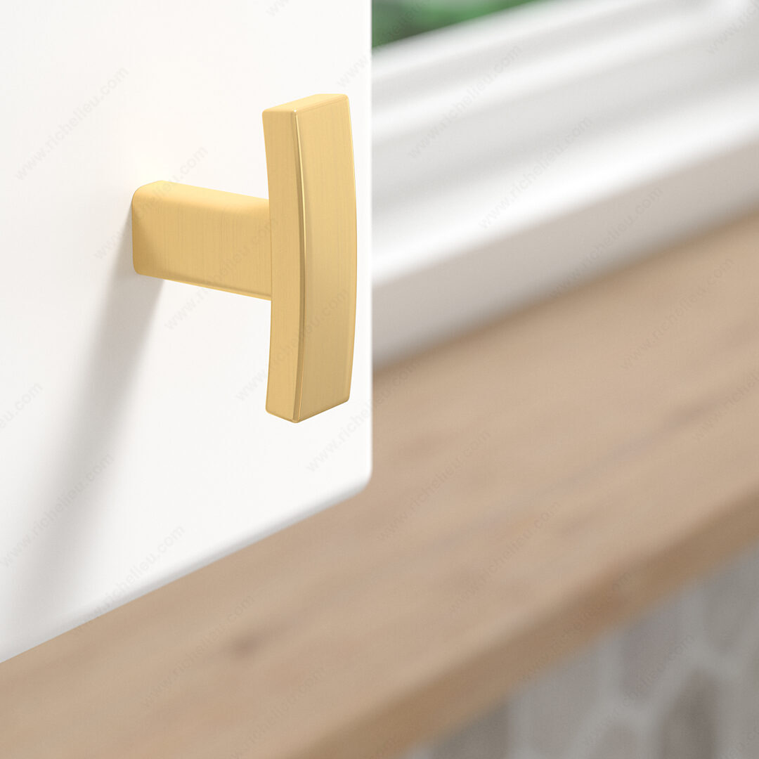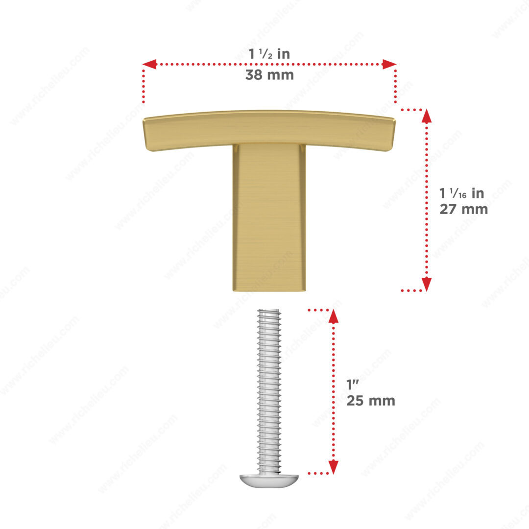 Richelieu BP65038160 Transitional Metal Knob - 650 elegantly enhances the aesthetic of kitchen and bathroom cabinets with its sophisticated design. This transitional-style knob features a slightly curved shape that adds a distinguished touch to any interior decor, making it an ideal choice for both modern and traditional spaces. Crafted from durable zamak material, the knob is finished in a luxurious satin brass that beautifully complements its yellow and brass color palette. With overall dimensions of 1 1/2 inches in length, 7/16 inches in width, and a projection of 1 1/16 inches, it provides a comfortable grip while maintaining a sleek profile. The Richelieu BP65038160 is easy to install, complete with an 8/32 inch screw included for your convenience. Packaged in a bag, this knob is ready to ship via UPS, ensuring a seamless purchasing experience. Whether you are a building professional looking to elevate a project or a homeowner aiming to refresh your space, this knob offers both functionality and style. Transform your cabinets with the Richelieu BP65038160 Transitional Metal Knob, and enjoy the perfect blend of elegance and practicality in your home.