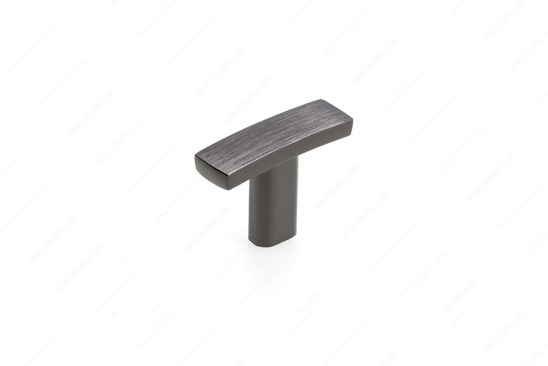Richelieu BP65038169 Transitional Metal Knob - 650 enhances the elegance of kitchen and bathroom cabinetry with its stylish design. Crafted from durable zamak, this knob features a sophisticated black stainless steel finish that adds a contemporary touch to any interior decor. The slightly curved shape not only provides a comfortable grip but also elevates the visual appeal of your cabinetry. Measuring 1 1/2 inches in length, 7/16 inches in width, and with a projection of 1 1/16 inches, this knob is perfectly sized for a variety of cabinet styles. It seamlessly fits within the transitional style, making it an ideal choice for those looking to blend traditional and modern aesthetics. Each knob is packaged securely in a bag, and installation is straightforward with the included 8/32 inch screw. As part of Richelieu's New Collection, the BP65038169 knob is designed for those who appreciate quality craftsmanship and stylish functionality. With the ability to ship via UPS, it's convenient to order and receive this stylish upgrade for your home. Choose the Richelieu BP65038169 for a refined look that enhances the beauty and functionality of your cabinets.