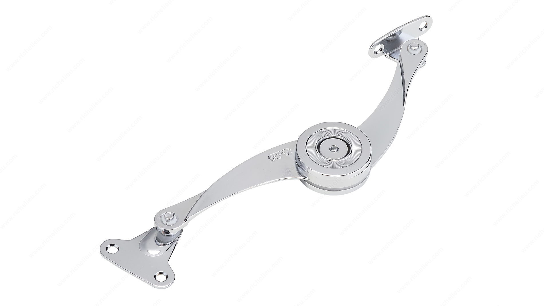 Richelieu BP65130180 Designer Flap Stay for Wood Cabinet Door offers a sophisticated solution for enhancing the functionality and aesthetics of your cabinetry. Designed specifically for wood doors ranging from 11 3/4 to 19 5/8 inches in length, this flap stay allows for both up-opening and down-opening doors. It conveniently holds doors open at multiple angles - 75°, 90°, and 100° for up-opening doors, while down-opening doors remain secure at a 90° angle. Crafted from durable steel and finished in a sleek chrome, the BP65130180 is not only stylish but also built to last. Installation is straightforward, requiring a minimum depth of only 140 mm and lateral space of 20 mm, making it an efficient choice that takes up minimal space within your cabinet. The tension is easily adjustable with the included Allen key, ensuring a customized fit for your specific needs. This product is ANSI/BIFMA certified, affirming its quality and reliability. With its reversible design and included screws, the Richelieu Designer Flap Stay is an excellent addition for professionals and discerning homeowners alike, providing seamless functionality and enhancing the overall appeal of your cabinetry.