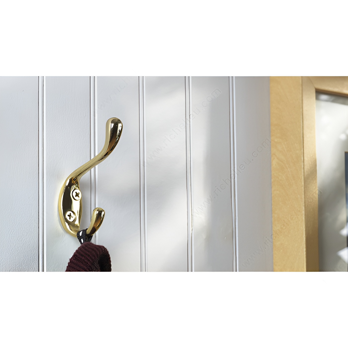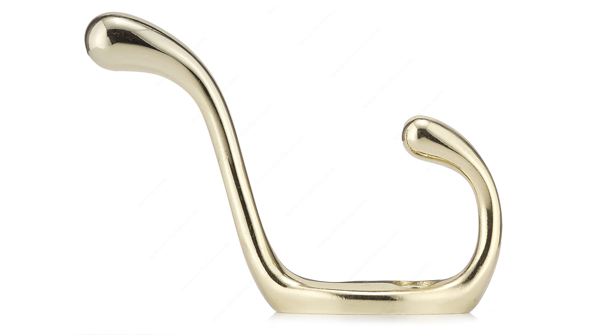 Richelieu BP6514130 3-1/2 in Utility Hook - 6514 offers a practical and stylish solution for organizing any space. Designed with simplicity and functionality in mind, this double hook provides an efficient way to hang clothes, bags, or accessories, ensuring your area remains tidy and clutter-free. With an overall height of 3-1/2 inches and a sleek brass finish, the hook exudes durability and elegance. The combination of yellow and brass colors adds a pop of brightness, making it a visually appealing addition to any room. Crafted from robust metal, it boasts a substantial load capacity of 22 pounds, allowing it to support various items without compromising strength. Measuring 25/32 inches in width and featuring a projection of 2-1/2 inches, this utility hook fits seamlessly into different spaces, whether in a hallway, laundry room, or entryway. Installation is made easy with screws included in the package, ensuring a hassle-free setup. Richelieu’s commitment to quality and design ensures that this utility hook not only serves its purpose efficiently but also enhances your decor. Elevate your space with the practicality and style of the Richelieu BP6514130 Utility Hook.