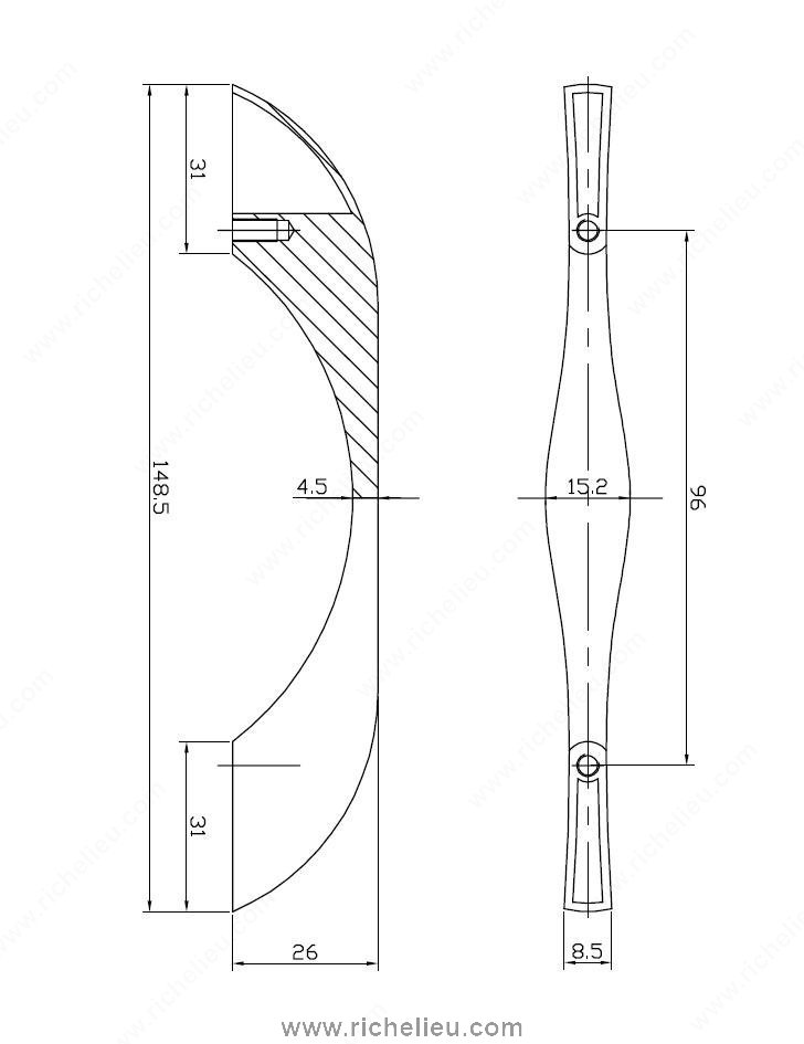 Richelieu BP696996140 Modern Metal Pull - 6969 enhances your space with a sleek, contemporary design that embodies elegance and sophistication. This metal pull is not just a functional hardware piece; it serves as a stylish accent, perfect for modern décor. Its overall length of 5 7/8 inches and a center-to-center measurement of 3 25/32 inches make it an ideal choice for cabinets and drawers alike. Crafted from durable metal, the pull features a striking chrome finish that adds a touch of shine while complementing various color schemes. The subtle gray and chrome palette ensures versatility, making it suitable for kitchens, bathrooms, or living areas. With an overall projection of 1 1/32 inches and a width of 19/32 inches, this pull provides a comfortable grip without compromising on style. Included with your purchase are 8/32 inch screws, ensuring a hassle-free installation process. Designed for professionals and discerning homeowners, the Richelieu BP696996140 pull not only meets functional needs but also elevates the aesthetic of any space. Transform your cabinetry and furniture with this must-have accessory that speaks to modern sensibilities.