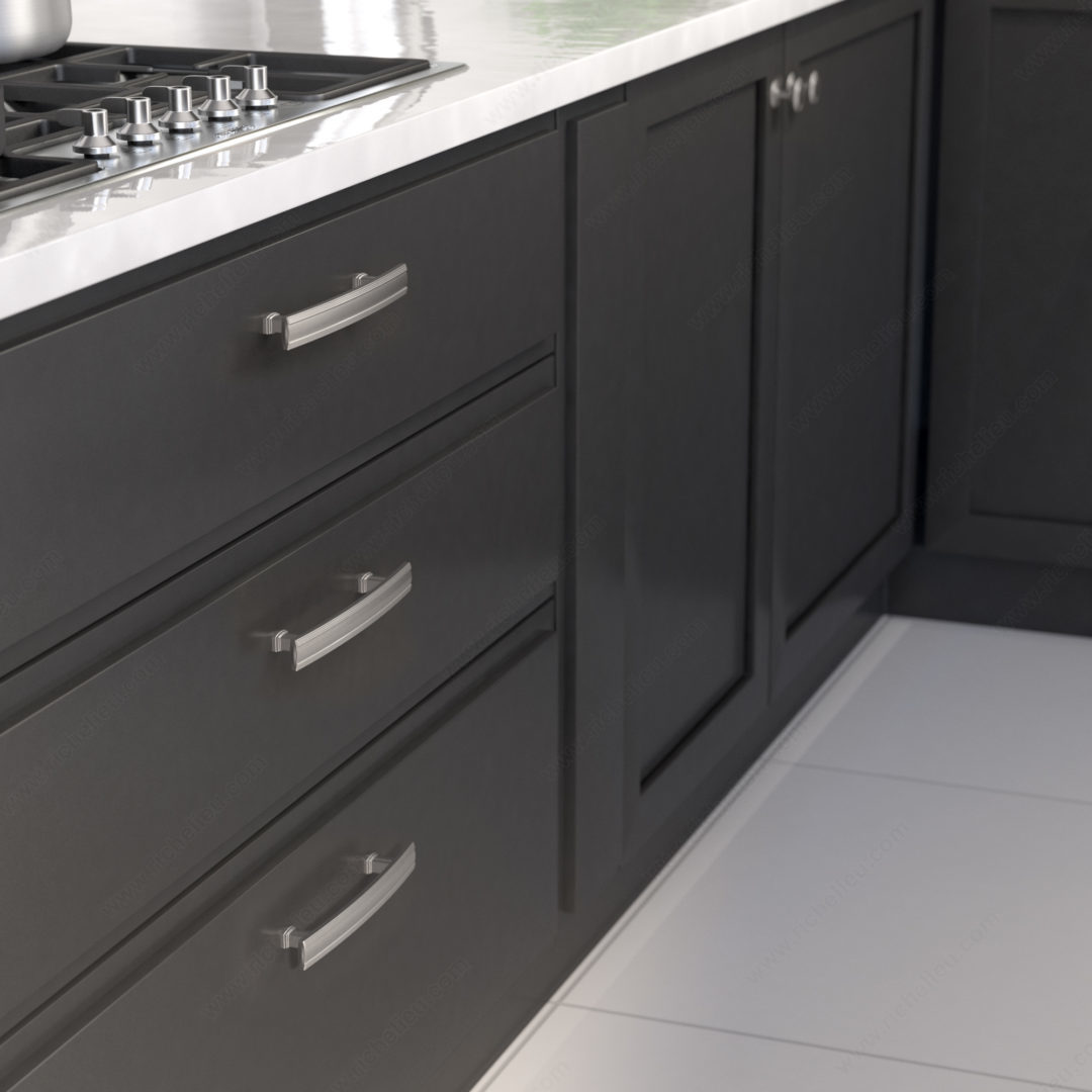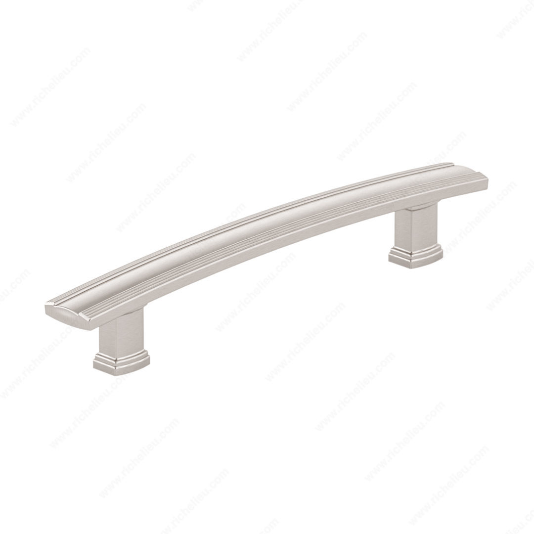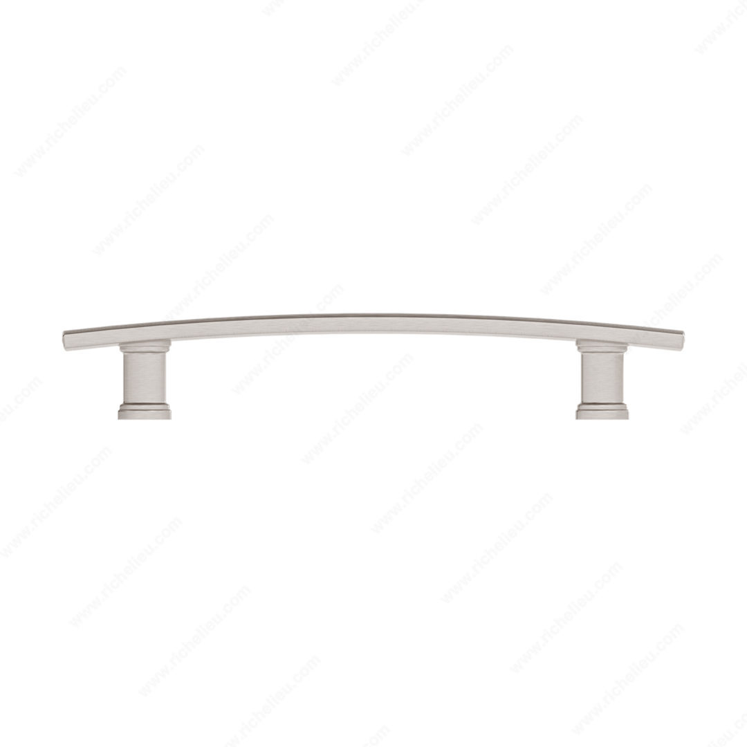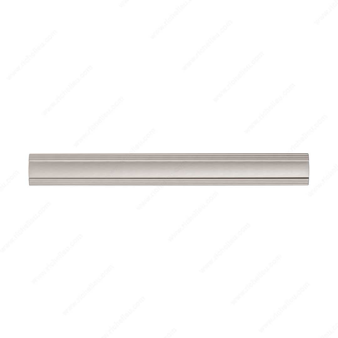 Richelieu BP7070128195 Transitional Metal Pull - 7070 brings a sophisticated touch to your furniture with its smooth, arched design, elegantly framed by thin stripes. This transitional pull is crafted from durable zamak, ensuring longevity and resilience while enhancing the overall aesthetic of your cabinetry or furniture pieces. With an overall length of 6 27/32 inches and a center-to-center measurement of 5 1/32 inches, this pull is designed to fit seamlessly into a variety of applications. The brushed nickel finish adds a contemporary flair, complemented by the striking gray and chrome color scheme, making it an eye-catching addition to any space. The projection of 1 3/16 inches allows for comfortable grip and functionality, while the 25/32 inch width provides a streamlined appearance. Each pull comes with an 8/32 inch screw for easy installation, making it a practical choice for both professionals and DIY enthusiasts. Part of the new collection, the BP7070128195 is not only a stylish hardware option but also a versatile one, suitable for various design aesthetics. Elevate your cabinetry with this distinctive transitional pull that perfectly balances form and function.