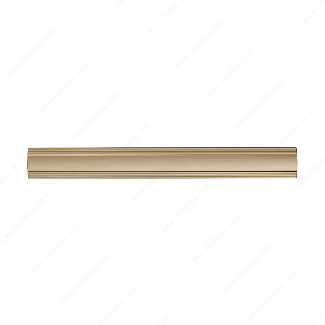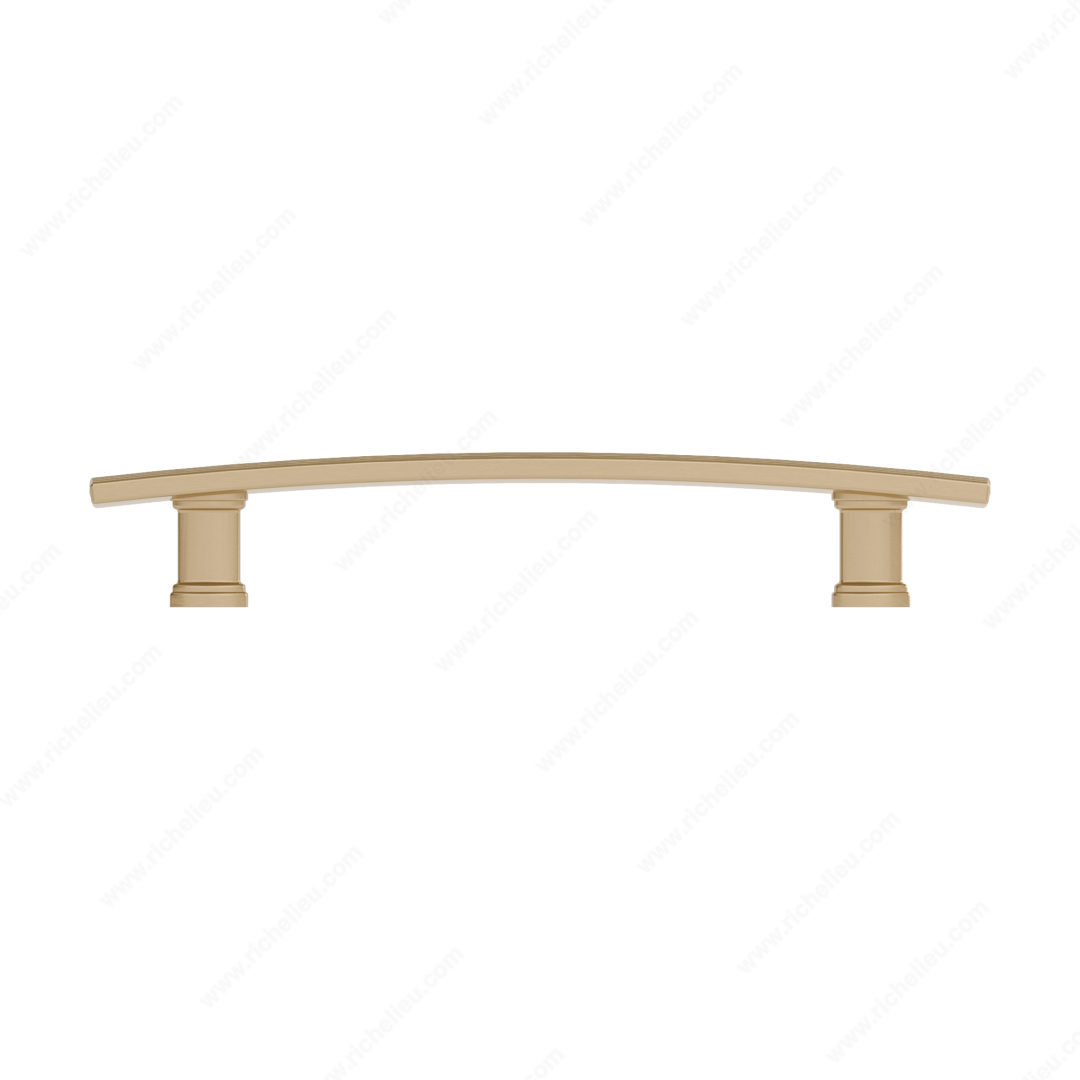 Richelieu BP7070128CHBRZ Transitional Metal Pull - 7070 offers a sophisticated touch to your furniture with its smooth, arched design and elegant thin stripes framing the pull. This transitional pull is crafted from high-quality Zamak, ensuring durability while enhancing the visual appeal of cabinetry or furniture pieces. With a center-to-center measurement of 5 1/32 inches, this pull is not only stylish but also practical for a variety of applications. The overall dimensions of 6 27/32 inches in length, 25/32 inches in width, and a projection of 1 3/16 inches provide a comfortable grip and make installation straightforward. The stunning champagne bronze finish adds warmth and sophistication, allowing it to seamlessly blend with various design aesthetics. Each pull comes with an 8/32 inch screw included, simplifying the installation process. As part of the new collection, it pairs beautifully with other pieces in the 7070 line, making it a versatile choice for those looking to elevate their space. Whether you're a building professional or a discerning homeowner, the Richelieu BP7070128CHBRZ pull is an excellent addition to your interior design toolkit, combining functionality with refined style.