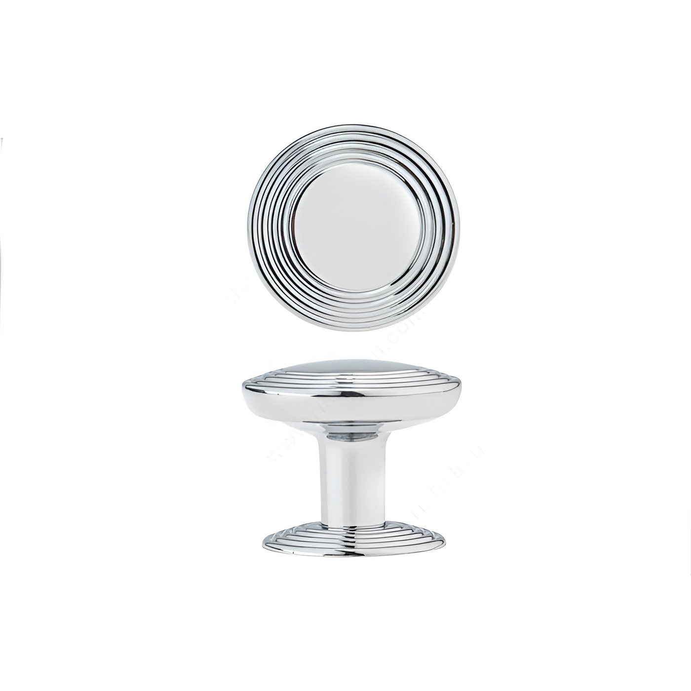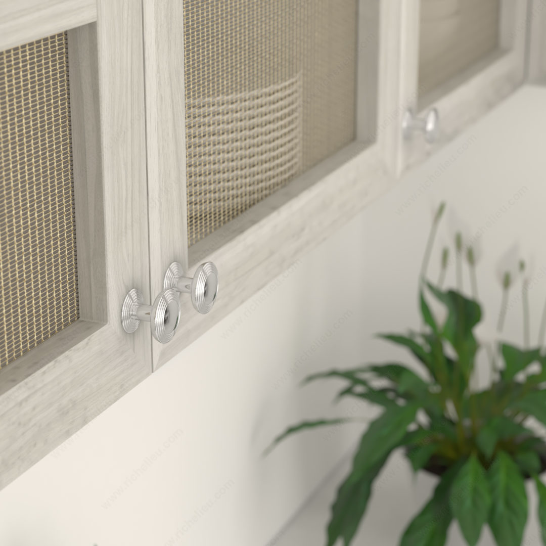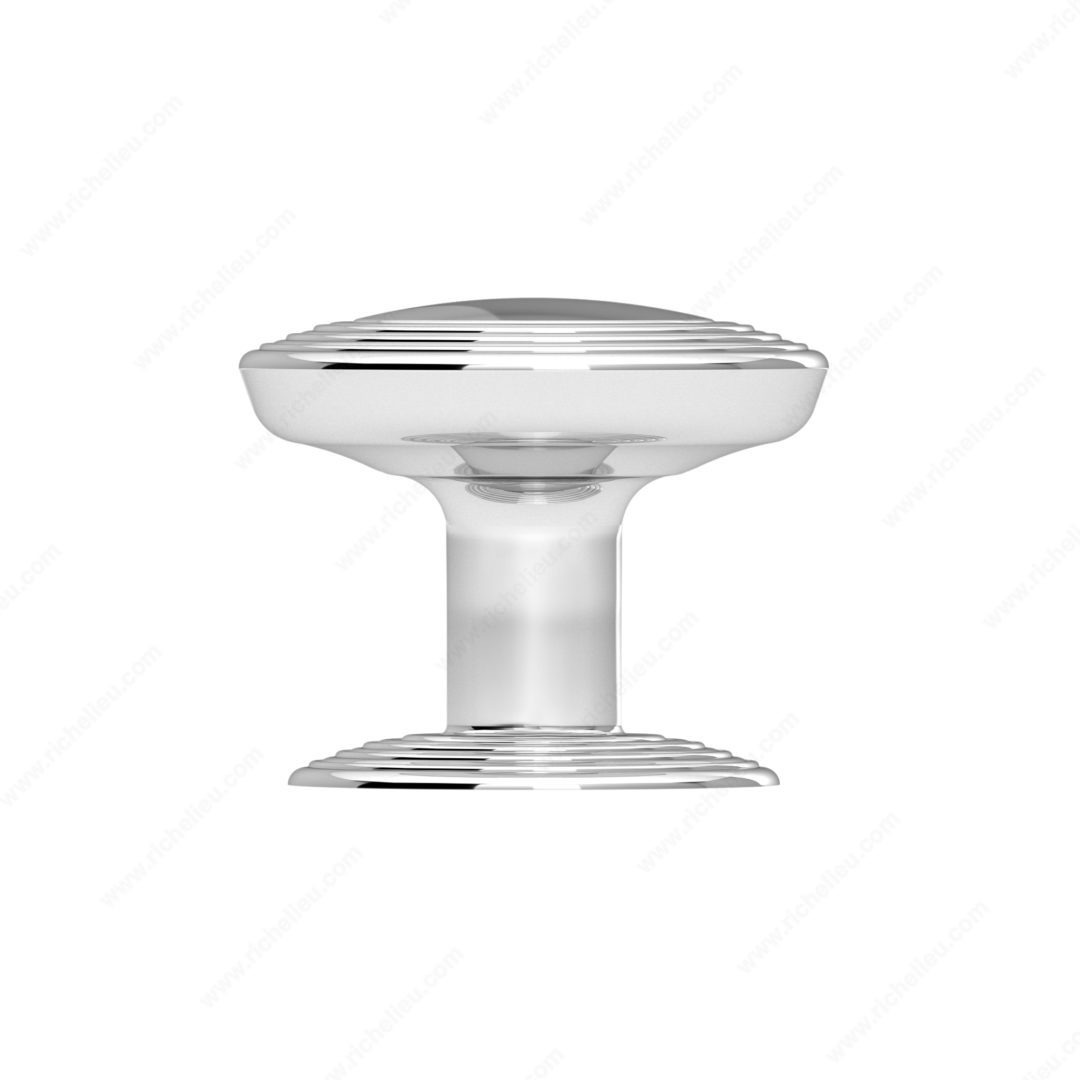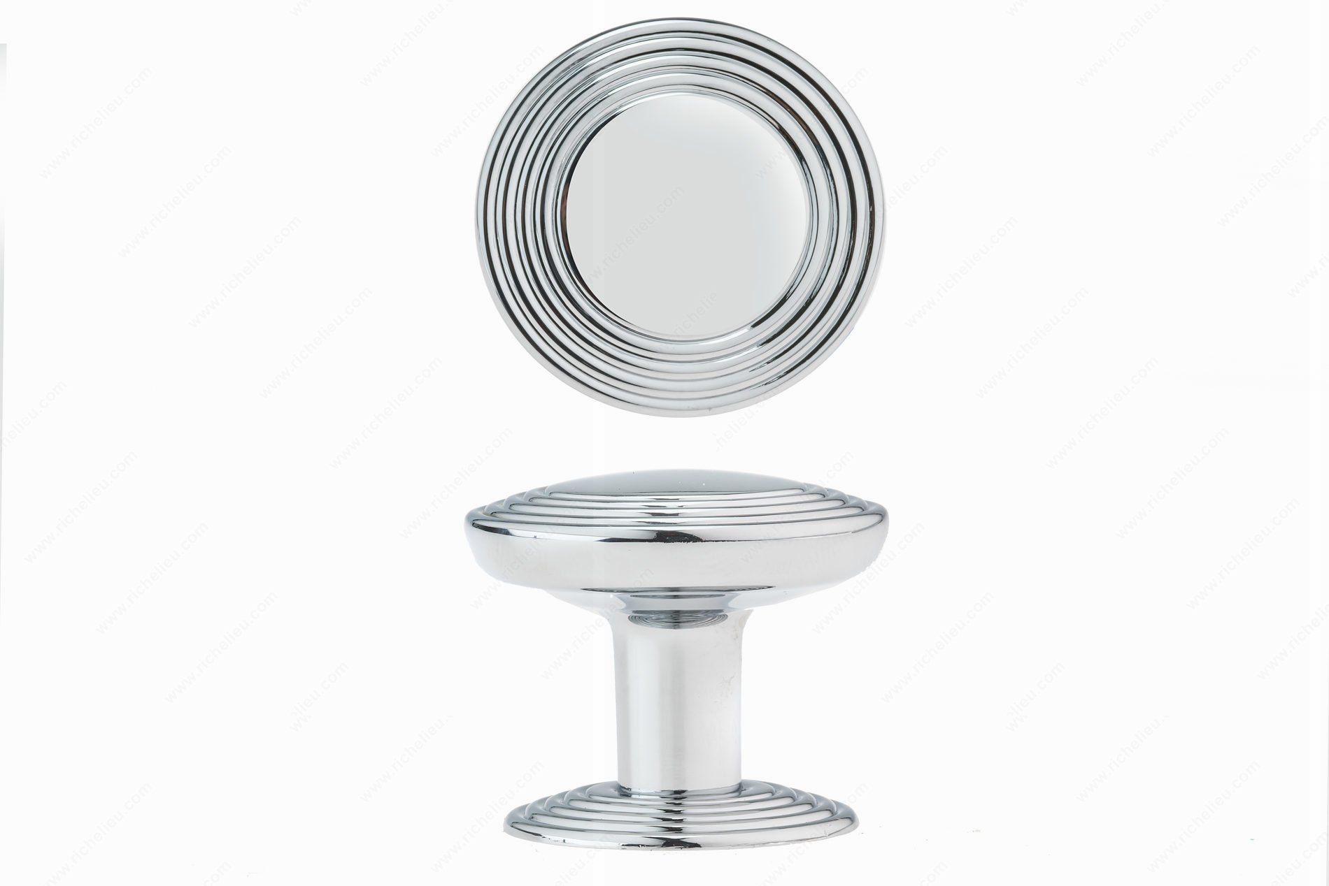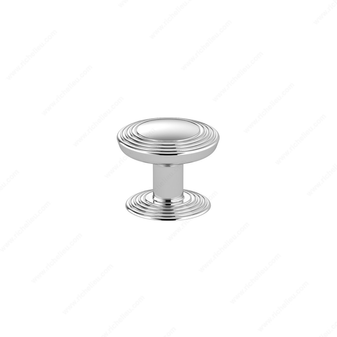 Richelieu BP707032140 Transitional Metal Knob - 7070 offers a perfect blend of elegance and functionality, making it an excellent choice for various furniture styles. The smooth, convex disc design is framed by tiered rings, enhancing its aesthetic appeal. This knob is paired with a detachable matching backplate, providing added versatility in your design choices. Crafted from durable zamak, this knob features a striking chrome finish that not only complements contemporary spaces but also transitions beautifully into more traditional environments. With an overall diameter of 1 1/4 inches and a projection of 1 1/16 inches, it fits comfortably in hand, ensuring ease of use. The included 8/32 inch screw makes installation straightforward, allowing for quick upgrades to cabinets, drawers, or furniture pieces. Available in a sophisticated gray and chrome color palette, the BP707032140 is part of Richelieu's new collection, ensuring you have access to modern and stylish options. Whether you're a building professional or a discerning homeowner looking to elevate your space, this transitional knob is a functional accessory that doesn’t compromise on style. Embrace the perfect balance of design and practicality with Richelieu's BP707032140.