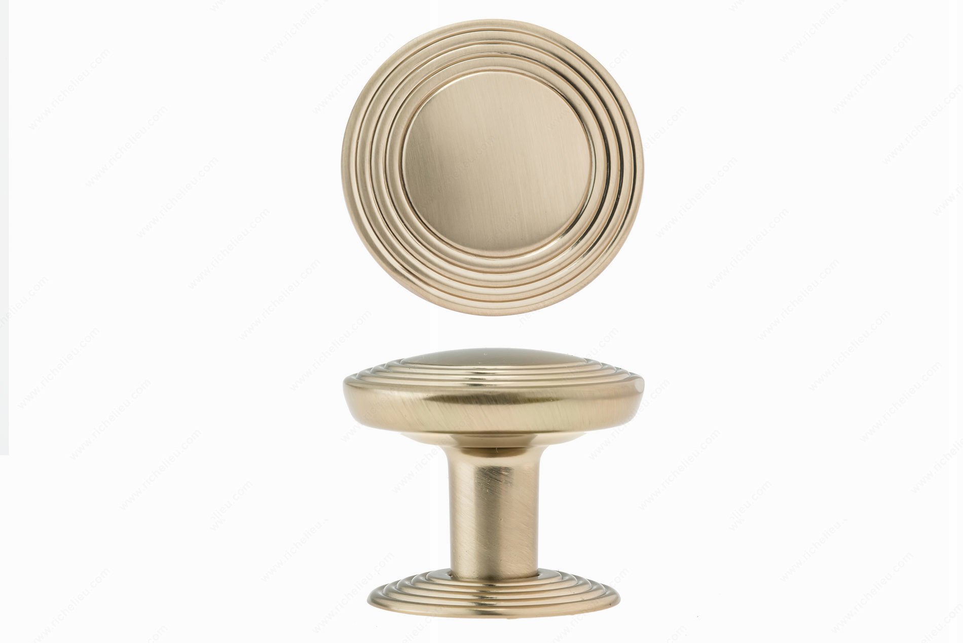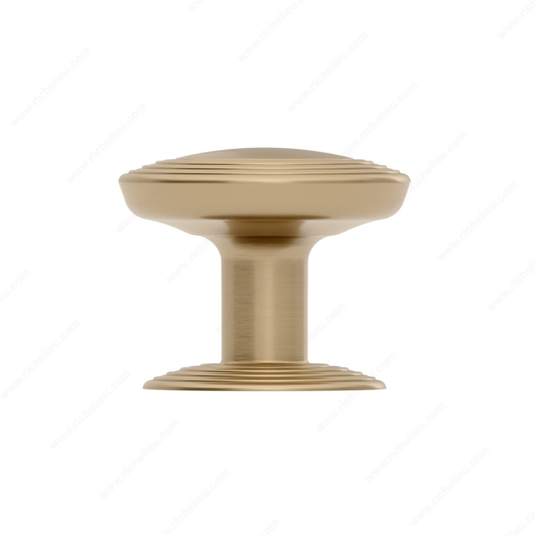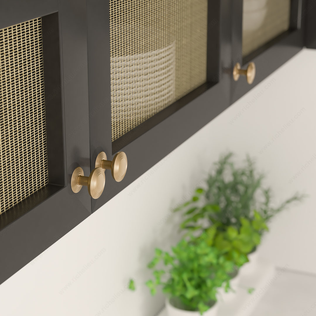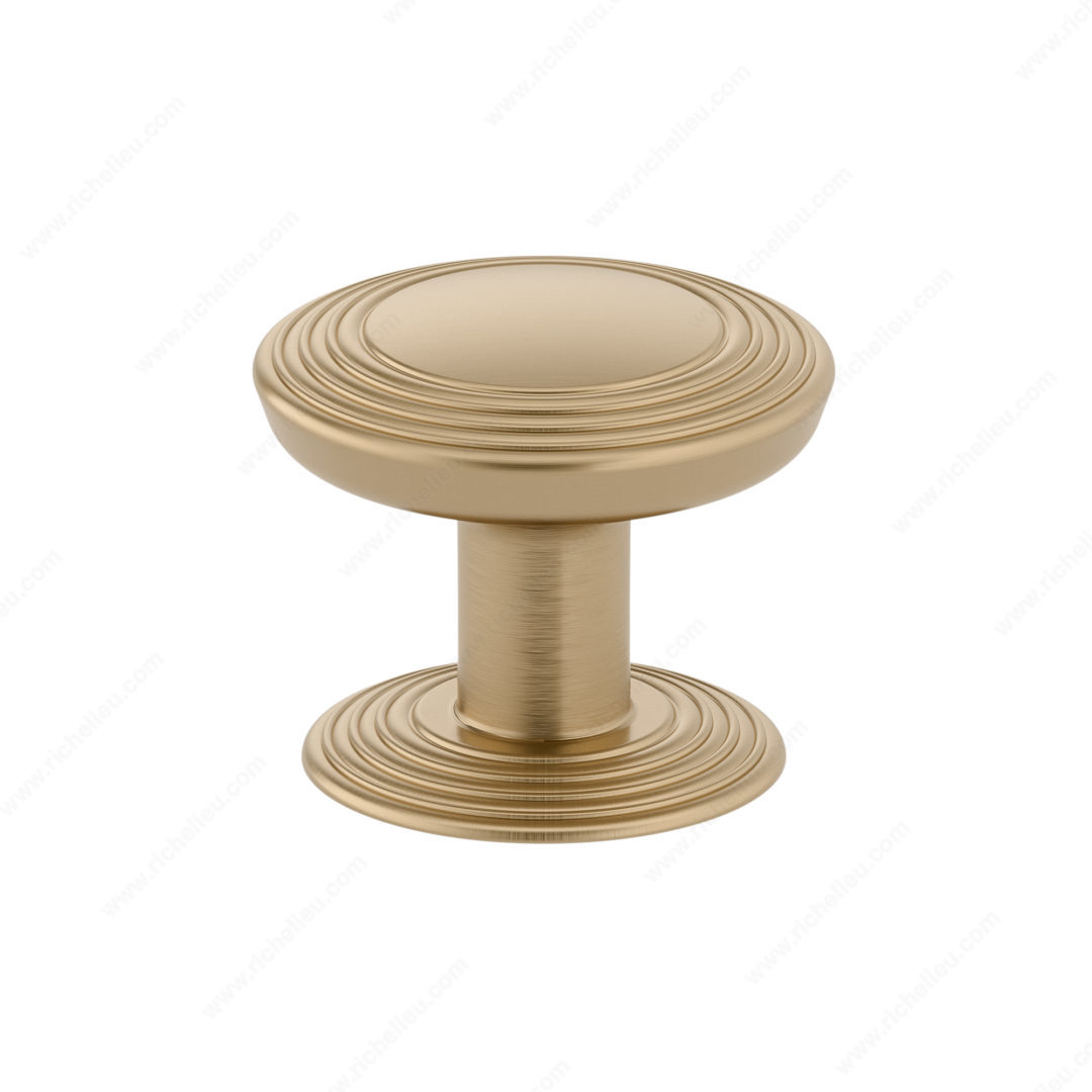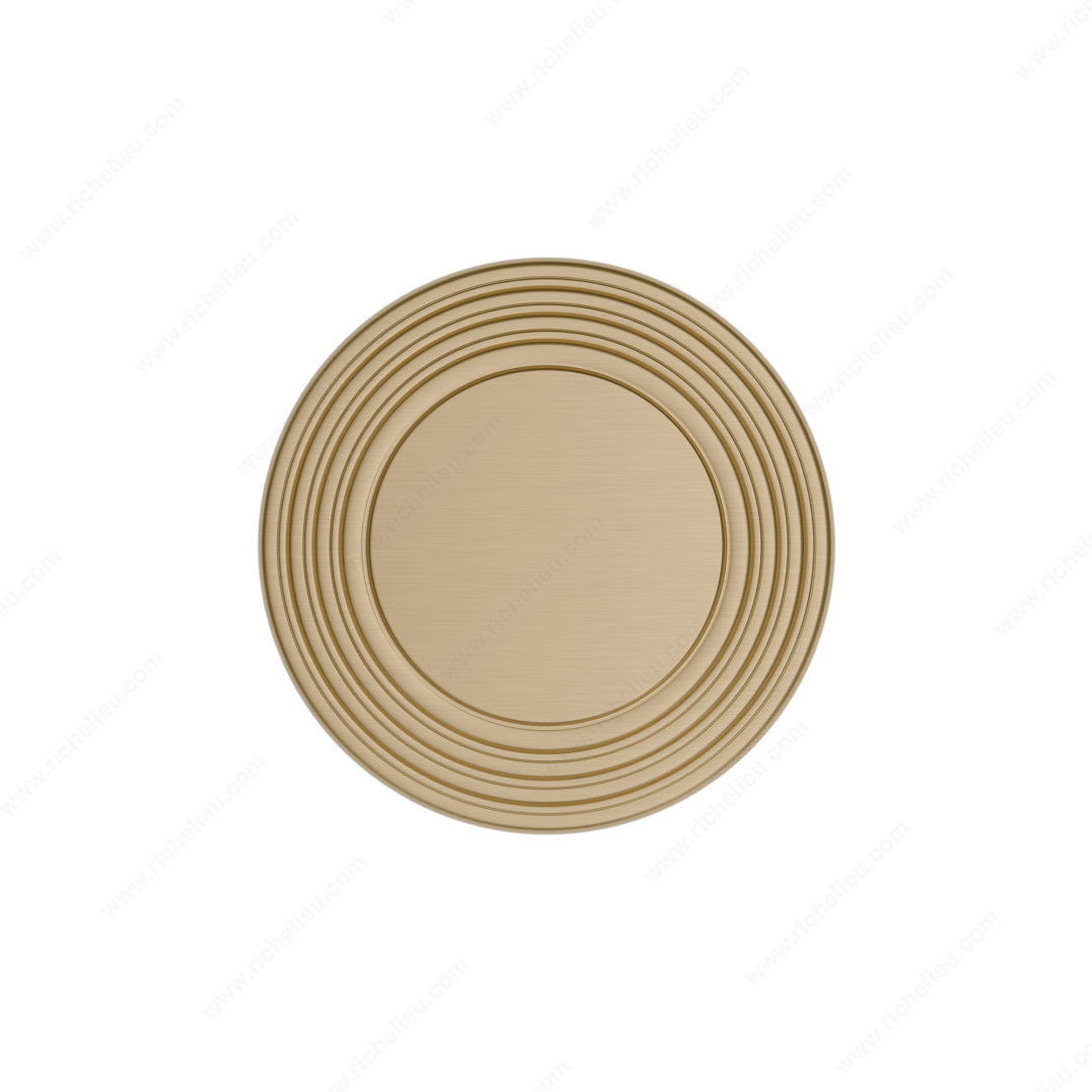 Richelieu BP707032CHBRZ Transitional Metal Knob - 7070 presents a refined aesthetic that enhances the elegance of your furniture. The smooth, convex disc design is artfully framed by tiered rings, creating a visual depth that draws attention while remaining versatile for various decor styles. Complemented by a detachable backplate, this knob not only elevates the overall appearance but also ensures ease of installation and customization. Crafted from high-quality zamak, the knob features a luxurious Champagne Bronze finish (CHBRZ) that adds warmth and sophistication. With an overall diameter of 1 1/4 inches and a projection of 1 1/16 inches, it provides a comfortable grip and is suitable for various applications, from kitchen cabinets to furniture drawers. This knob is part of Richelieu's New Collection, showcasing their commitment to innovative design and functional hardware. Each unit comes with an 8/32 inch screw for straightforward mounting, making it a practical choice for both building professionals and knowledgeable homeowners. Transform your interiors with the Richelieu BP707032CHBRZ Transition Metal Knob, a perfect blend of style and function that enhances any space with its distinctive charm.