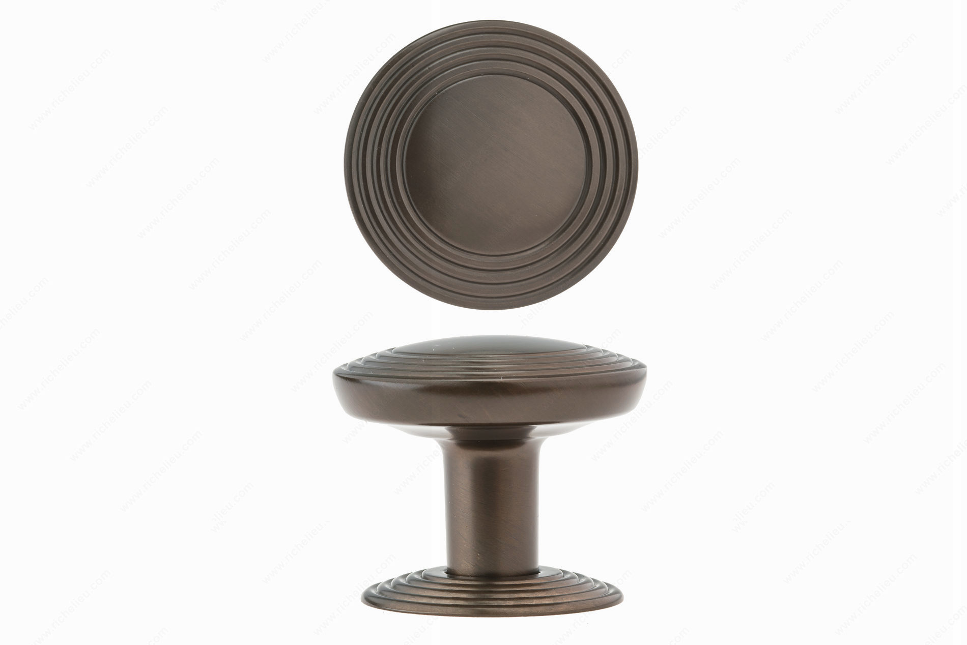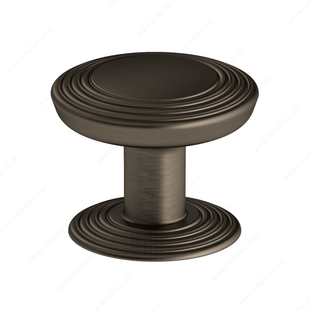 Richelieu BP707040HBRZ Transitional Metal Knob - 7070 offers a refined aesthetic that enhances the elegance of your furniture with its smooth, convex disc design. Framed by tiered rings, this knob is paired with a matching detachable backplate, creating a cohesive and sophisticated look. The combination of brown and bronze tones, coupled with the Honey Bronze finish, adds warmth and character, making it an ideal choice for a variety of décor styles. Constructed from high-quality Zamak, this knob ensures durability while maintaining a sleek appearance. Measuring 1 9/16 inches in diameter and projecting 1 5/16 inches, it fits comfortably within the hand, providing ease of use. The knob is part of Richelieu’s New Collection, specifically designed for transitional spaces, blending seamlessly with both modern and traditional environments. Installation is straightforward with the included 8/32 inch screws, making it easy for professionals and savvy homeowners alike to upgrade their cabinetry. The BP707040HBRZ is not just a functional hardware piece but also a statement accessory that enriches the overall design of your furniture. Elevate your interior spaces with this stylish knob that combines form and function effortlessly.