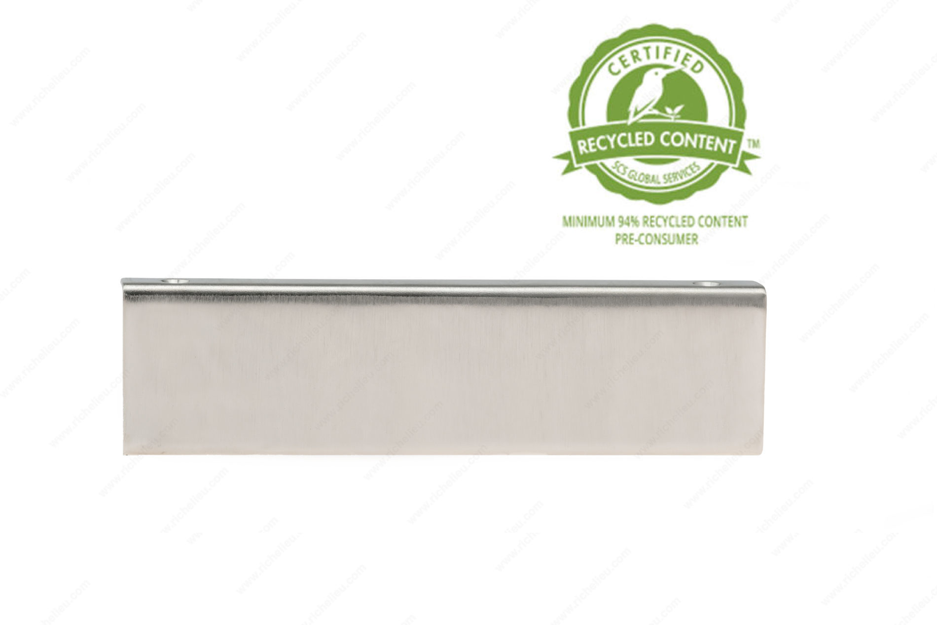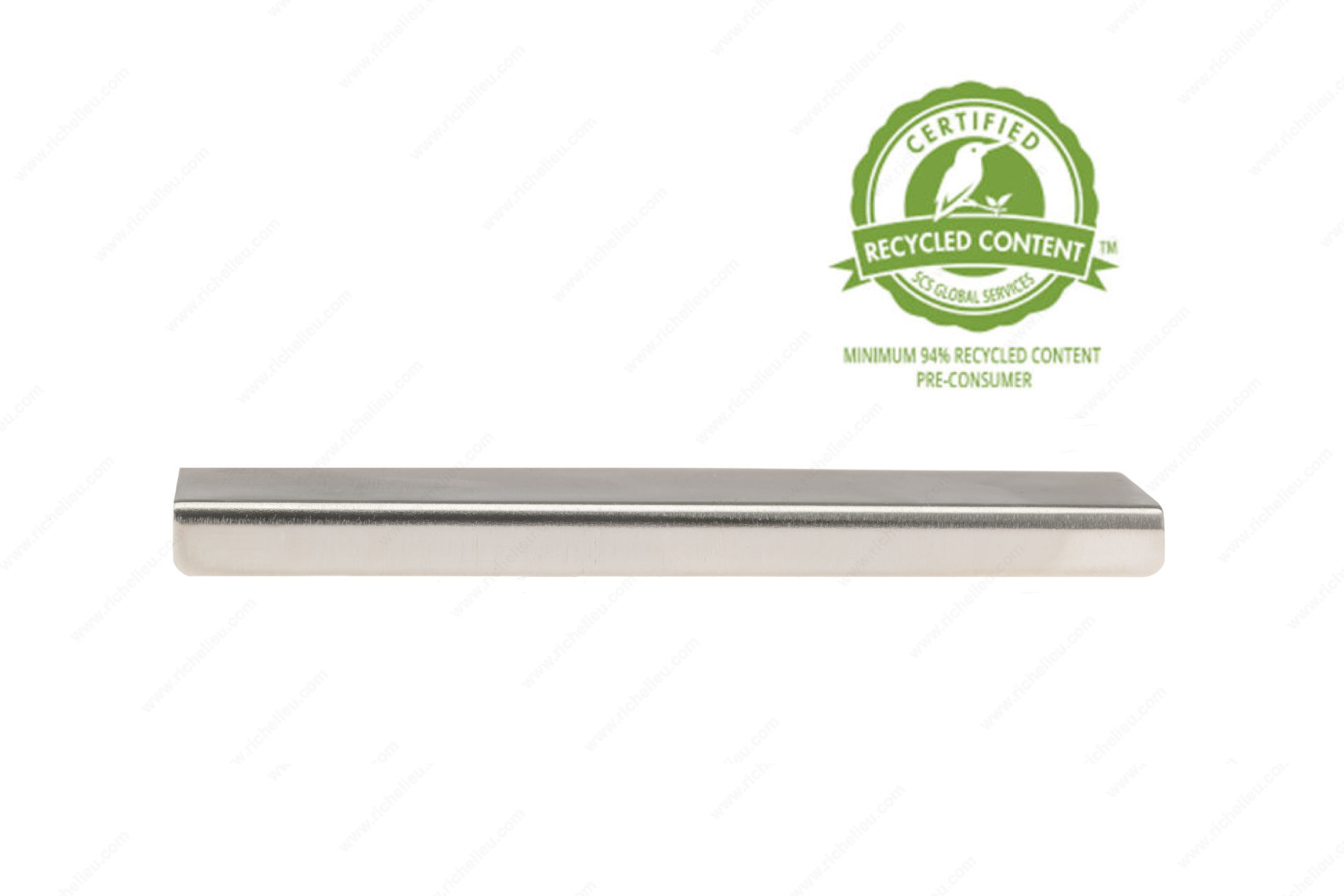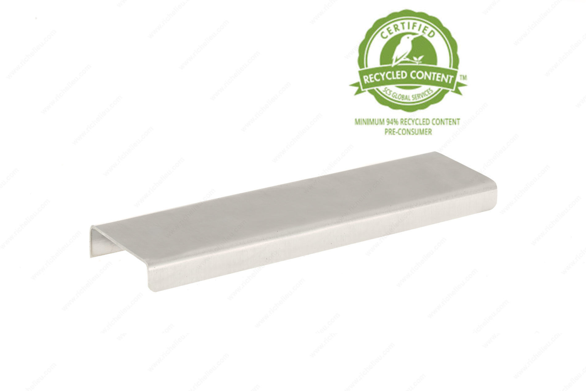 Richelieu BP710555195 Modern Brass Edge Pull - 71055 seamlessly combines style and sustainability, making it an ideal choice for contemporary spaces. Crafted from solid brass, this edge pull not only boasts a striking brushed nickel finish but also adheres to LEED® certification standards, contributing towards Credits 4.1 and 4.2 for recycled content. With a center-to-center measurement of 5 inches and overall dimensions of 6 inches in length, 1/2 inch in width, and a projection of 1 1/2 inches, this edge pull is designed for both functionality and aesthetic appeal. The modern design complements various interior styles, while the gray and chrome color palette adds a sophisticated touch to your cabinetry. Included with the pull are wood screws, ensuring a straightforward installation process. The BP710555195 is part of Richelieu's new collection, reinforcing your commitment to high-quality, environmentally conscious products. As a versatile accessory, it enhances the overall look of your space while providing a reliable grip. Elevate your cabinetry with this exceptional edge pull, a perfect blend of elegance and practicality.