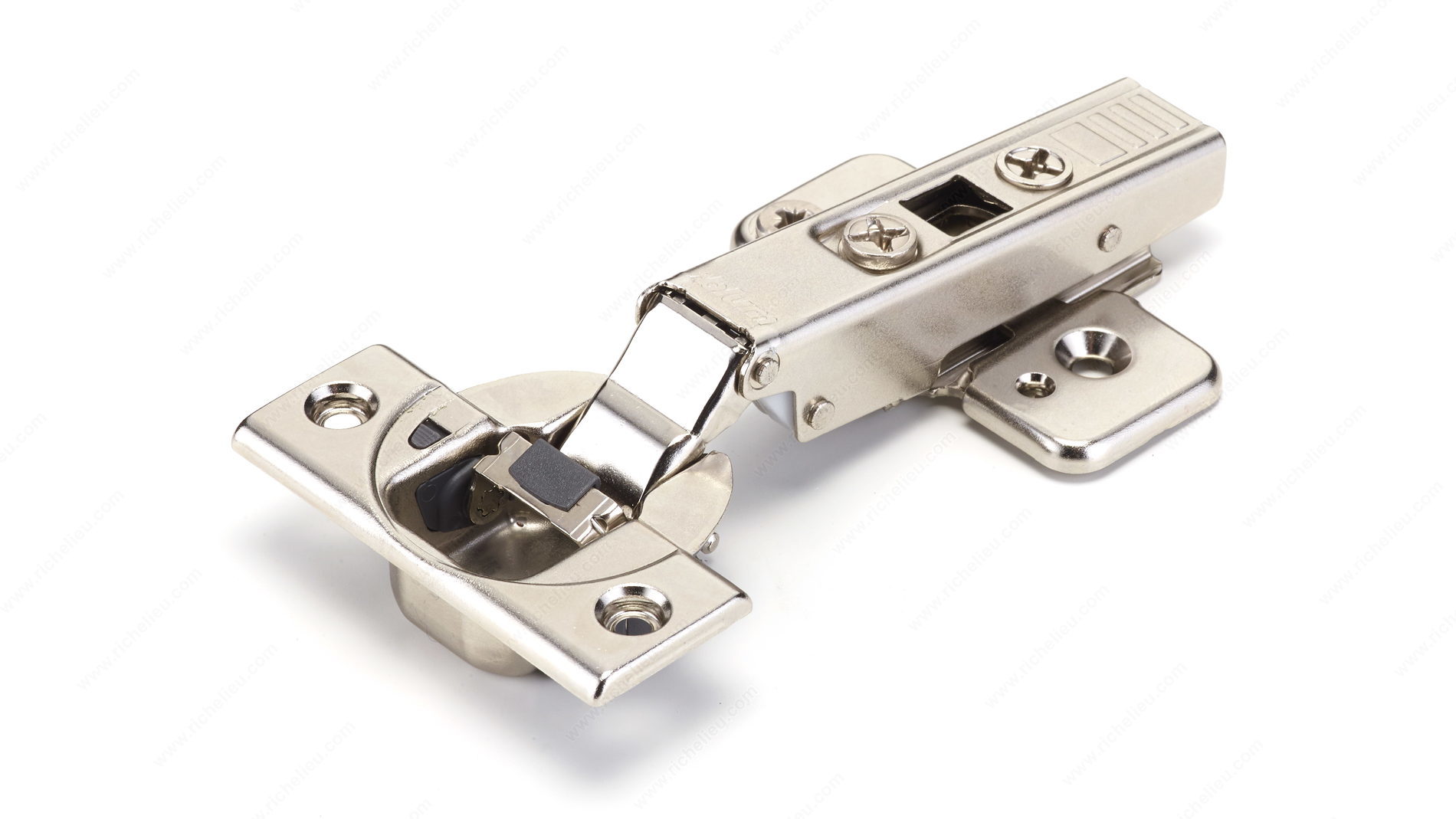 Richelieu BP71B35523180 CLIP top BLUMOTION - Hinge 110 offers a seamless blend of precision and innovation for your cabinetry needs. This hinge is engineered with integrated BLUMOTION technology, ensuring a silent and effortless closing action that enhances the overall user experience. Designed to withstand at least 200,000 cycles, the CLIP top BLUMOTION hinge guarantees longevity and reliability, making it a staple for quality furniture pieces. Ideal for frameless cabinets, this hinge accommodates a minimum door and cabinet thickness of 5/8 inches, providing flexibility in design. The hinge opens to a generous angle of +110°, allowing for easy access to cabinet interiors. Its soft-closing mechanism ensures that doors close gently, preventing slamming and extending the lifespan of your cabinetry. Crafted from durable steel with a sleek nickel finish, the hinge not only performs exceptionally but also adds a touch of elegance to your furniture. Each package contains two units and includes screws for straightforward installation, making it a user-friendly option for both professionals and DIY enthusiasts. Upgrade your cabinetry with Richelieu’s BP71B35523180 hinge and experience the perfect combination of functionality and style.