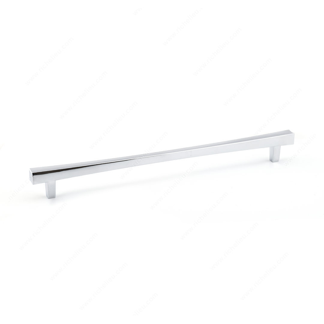 Richelieu BP7227256140 Transitional Metal Pull - 7227 seamlessly blends modern and classic design elements, making it an ideal choice for enhancing furniture and cabinetry. This elegant pull features flared ends that add a striking visual appeal, elevating the overall aesthetic of any space. Crafted from durable zamak, the pull is finished in a sophisticated chrome with a gray undertone, ensuring longevity and a polished look. Measuring 11 5/8 inches in length with a center-to-center measurement of 10 1/8 inches, it provides a comfortable grip while maintaining a streamlined profile. The overall projection of 1 1/4 inches and a width of 1/2 inch make it versatile for various applications. Included with the pull are 8/32 inch screws for easy installation, allowing you to update your cabinetry swiftly. Whether you're working on a contemporary kitchen or a transitional living area, this pull complements all collections within the 7227 series, providing a cohesive look throughout your project. Richelieu’s commitment to quality ensures that this pull not only enhances your design vision but also stands the test of time, making it a smart investment for both professionals and discerning homeowners.