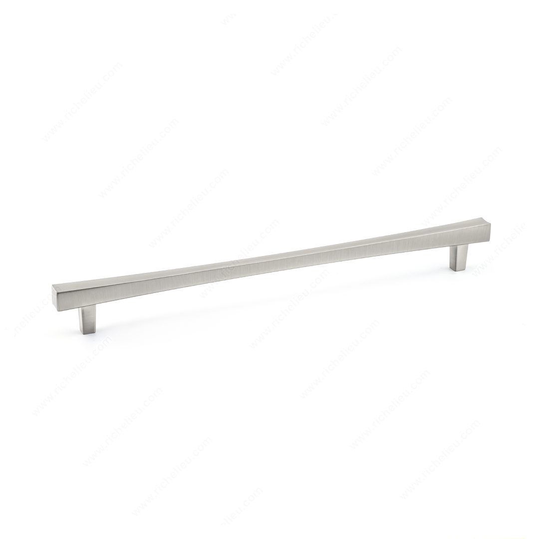 Richelieu BP7227256195 Transitional Metal Pull - 7227 seamlessly blends modern aesthetics with classic charm, making it an ideal choice for enhancing furniture and cabinetry. This elegant pull features flared ends, providing a sophisticated look that elevates any space. Crafted from durable Zamac, this pull not only boasts a stylish design but also offers long-lasting functionality. With an overall length of 11 5/8 inches and a center-to-center measurement of 10 1/8 inches, it fits perfectly on a variety of doors and drawers. The brushed nickel finish, complemented by gray and chrome accents, adds a touch of contemporary flair while ensuring versatility to match various interior styles. The pull’s projection of 1 1/4 inches allows for comfortable grip, making it easy to open cabinets and drawers. It includes 8/32 inch screws for convenient installation, ensuring a hassle-free setup. With a width of 1/2 inch, the pull maintains a sleek profile, perfect for those seeking a refined look without overwhelming their design. Part of the comprehensive 7227 collection, this transitional pull is designed to coordinate effortlessly with other pieces, making it an excellent choice for your next project. Elevate your cabinetry with the Richelieu BP7227256195 Transitional Metal Pull.