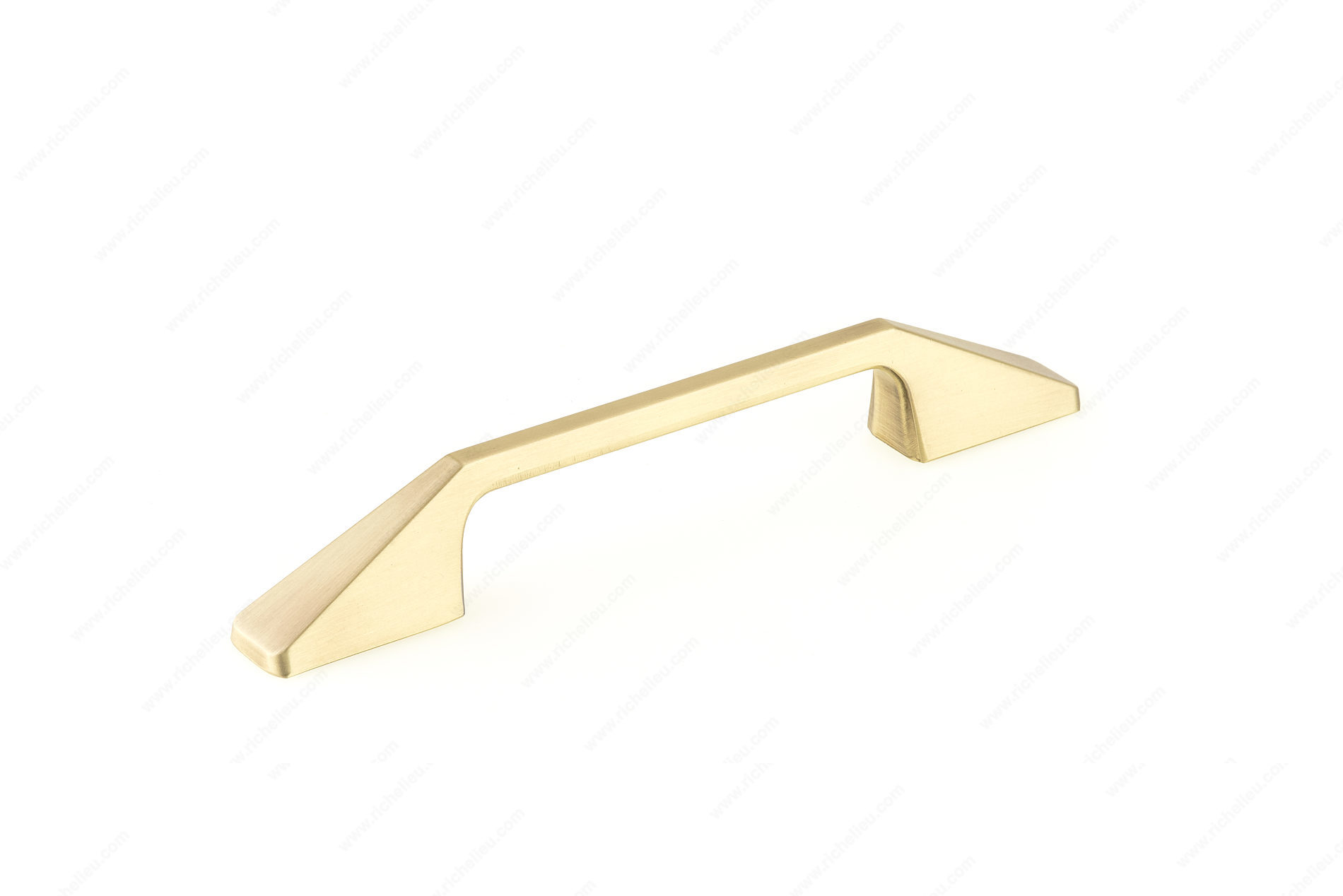 Richelieu BP7238128160 Modern Metal Pull - 7238 is an exquisite choice for contemporary furniture and cabinetry, offering a fresh and stylish upgrade. This pull features a sleek, thin handle that gracefully flares out at both ends, complemented by distinctive geometric posts that enhance its modern design. Crafted from durable zamak, this pull measures an overall length of 6 27/32 inches with a projection of 1 1/32 inches, making it not only visually appealing but also practical for everyday use. The satin brass finish in a striking yellow and brass color adds a touch of elegance and sophistication, seamlessly integrating with various design styles. With a center-to-center measurement of 5 1/32 inches, the BP7238128160 is versatile enough to fit into multiple cabinetry configurations. The included 8/32 inch screws ensure easy installation, making it a hassle-free upgrade for any project. Part of the complete 7238 collection, this modern pull stands out as an essential hardware accessory for professionals and discerning homeowners alike. Whether you are revamping a kitchen or enhancing a furniture piece, the Richelieu BP7238128160 combines functionality with contemporary aesthetics, making it an ideal choice for any modern space.