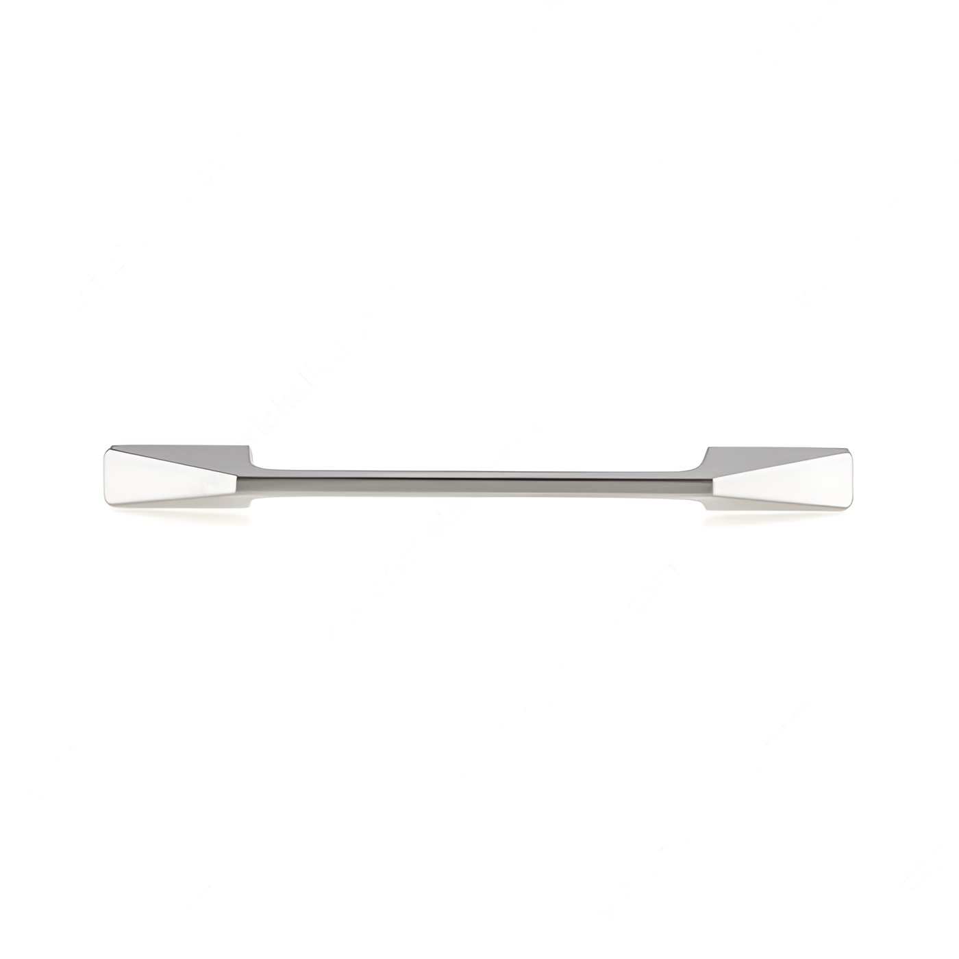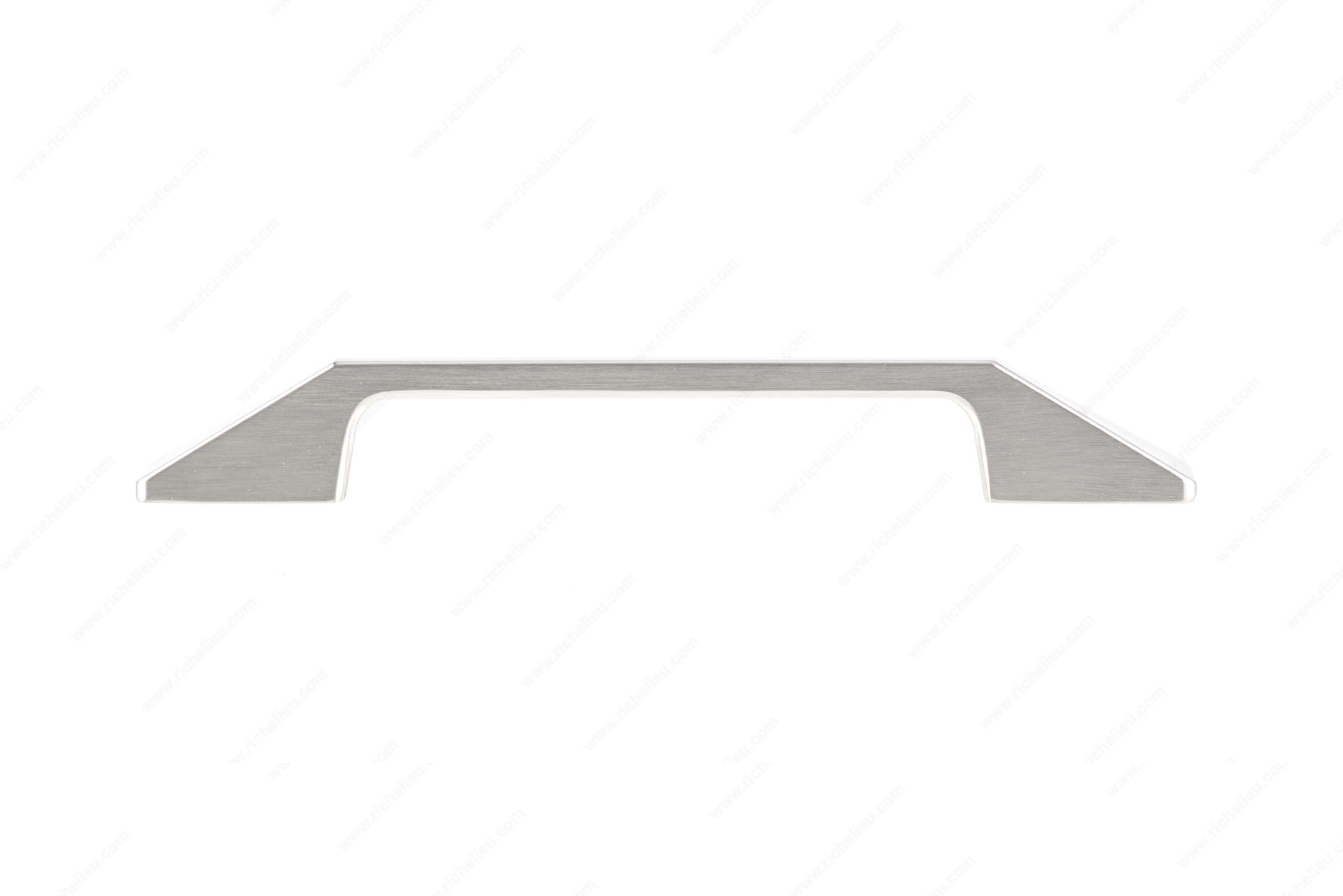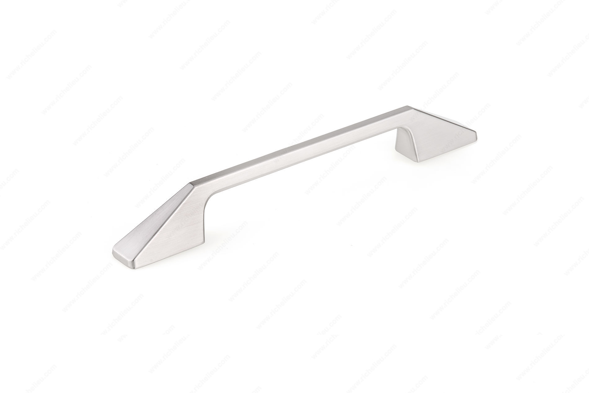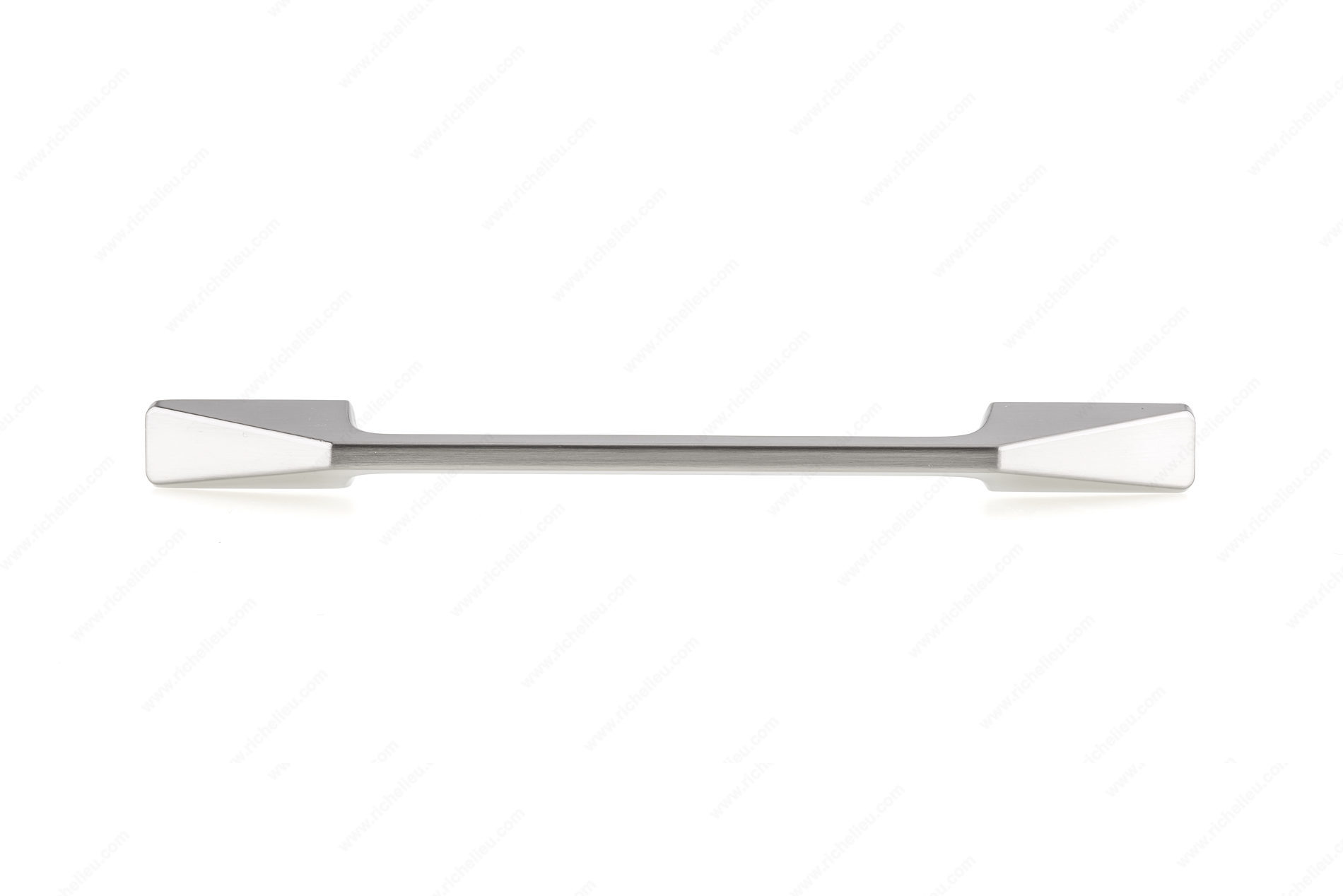 Richelieu BP7238160195 Modern Metal Pull - 7238 offers a sleek and contemporary solution for enhancing your furniture and cabinetry. The handle features a thin design that elegantly flares out at both ends, complemented by unique geometric posts that provide a striking visual appeal. With a center-to-center measurement of 6 5/16 inches, this pull is versatile enough to fit a variety of drawers and cabinets. The overall dimensions of 8 9/32 inches in length, 9/32 inches in width, and a projection of 1 1/16 inches ensure that it is both functional and stylish. Crafted from high-quality zamak material, this pull is built to last while maintaining a modern aesthetic. Finished in brushed nickel with a chic gray and chrome color scheme, the BP7238160195 seamlessly blends with contemporary designs. Installation is effortless with included 8/32 inch screws, making it an ideal choice for both professionals and DIY enthusiasts alike. Part of the complete 7238 collection, this modern pull is not just a hardware accessory; it's a statement piece that elevates the overall look of your space. Upgrade your furniture and cabinetry with this innovative pull, and enjoy the perfect fusion of form and function.