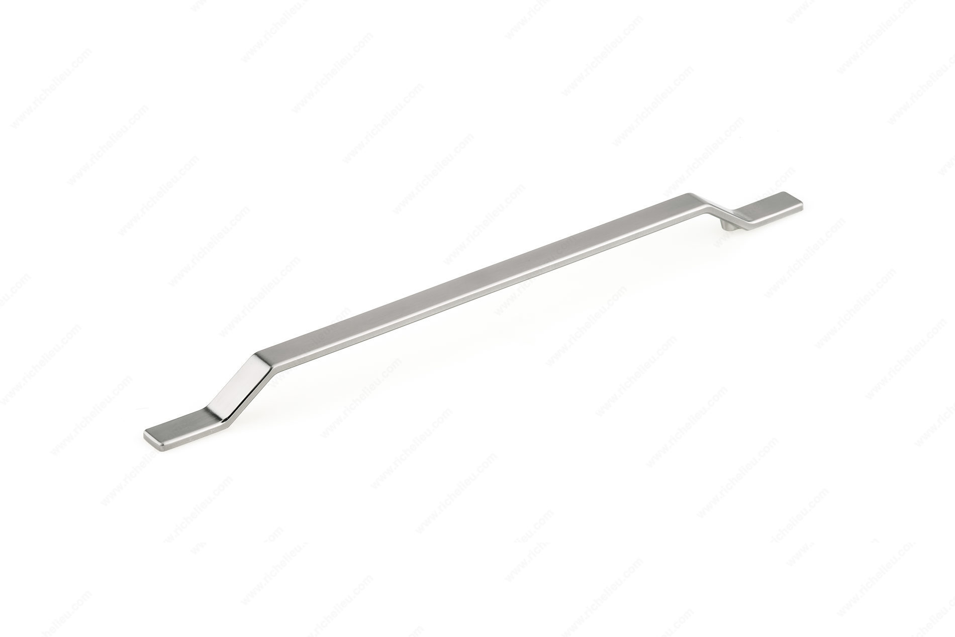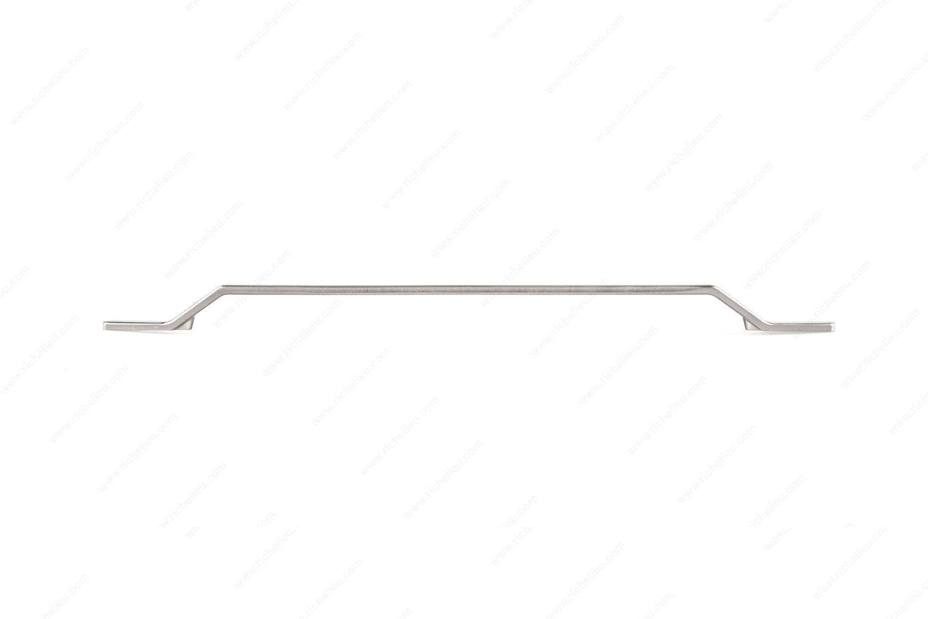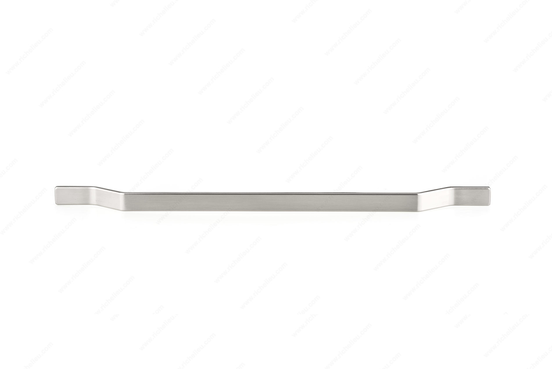 Richelieu BP7265320195 Modern Metal Pull - 7265 delivers a contemporary flair to furniture and cabinetry with its striking geometric design. Crafted from durable Zamak and finished in brushed nickel, this pull combines resilience with a sleek aesthetic, making it an ideal choice for modern interiors. With a center-to-center measurement of 12 5/8 inches and an overall length of 16 1/8 inches, the pull offers both functionality and style. The subtle gray and chrome color scheme enhances its versatility, allowing it to complement a wide range of cabinetry styles. The pull measures 1 1/32 inches in projection and 23/32 inches in width, ensuring a comfortable grip while maintaining a low-profile appearance. Included with the pull are 8/32 inch screws, ensuring a hassle-free installation process. This product is part of the complete 7265 collection, enabling seamless coordination with other hardware pieces in your project. Ideal for professionals and discerning homeowners alike, the Richelieu BP7265320195 Modern Metal Pull is an exceptional addition to any modern design, combining elegance with practicality to elevate the look and feel of your spaces.