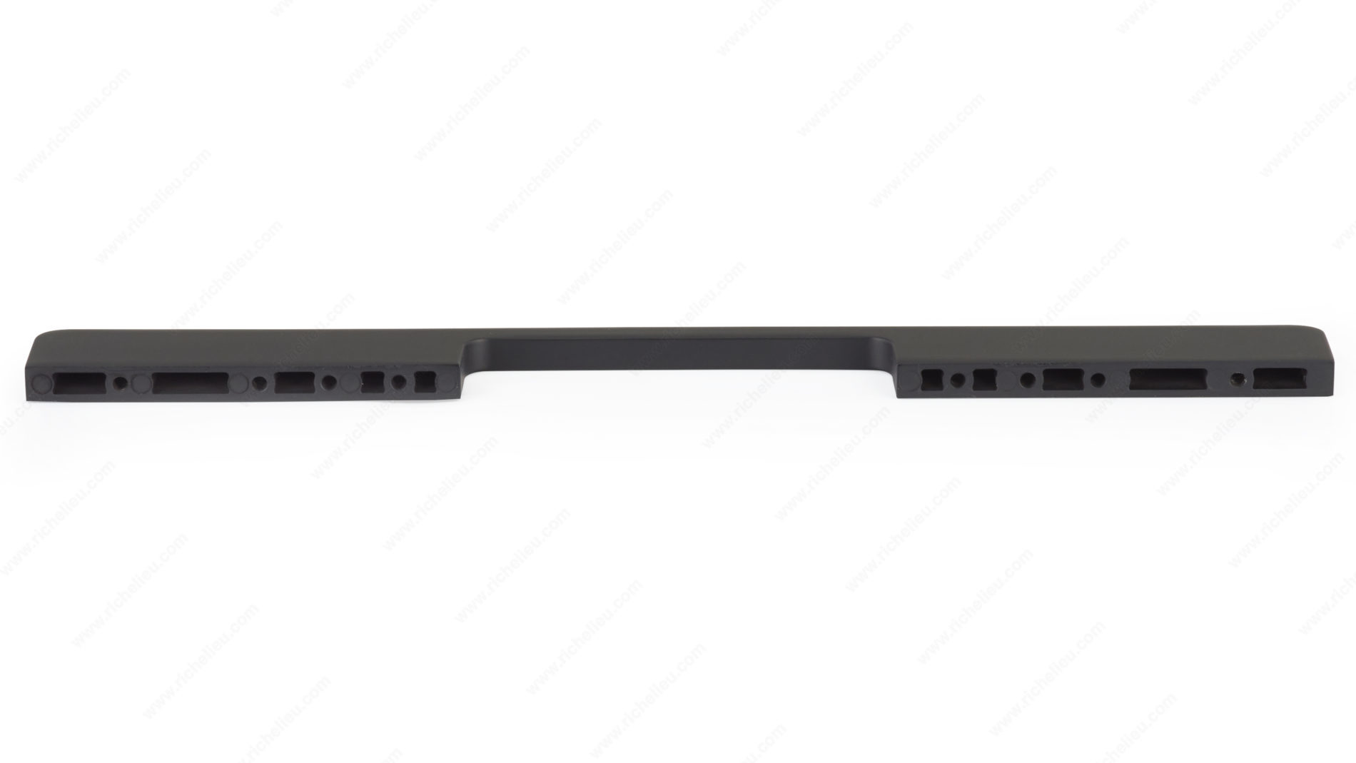 Richelieu BP730128900 Modern Metal Pull - 730 is the perfect solution for transforming your cabinetry with a sleek, contemporary touch. Crafted from durable aluminum and finished in a sophisticated matte black, this pull exudes modern elegance while ensuring long-lasting performance. With an overall length of 11 3/4 inches and a projection of 1 1/4 inches, it offers a comfortable grip that enhances functionality. This versatile pull features multiple center-to-center options, accommodating various installation needs. Choose from options ranging from 3 25/32 inches to 5 1/16 inches (96 mm to 128 mm), 5 1/16 inches to 10 3/32 inches (128 mm to 256 mm), or 12 19/32 inches to 21 7/16 inches (320 mm to 544 mm), allowing you to customize your look effortlessly. Each pull comes complete with 8/32 inch screws for easy installation, ensuring a hassle-free upgrade to your kitchen or bathroom. Designed to blend seamlessly with all collections in the 730 series, the Richelieu BP730128900 adds a polished finish to any space. Elevate your cabinetry with this stylish and functional pull that embodies both durability and modern design.