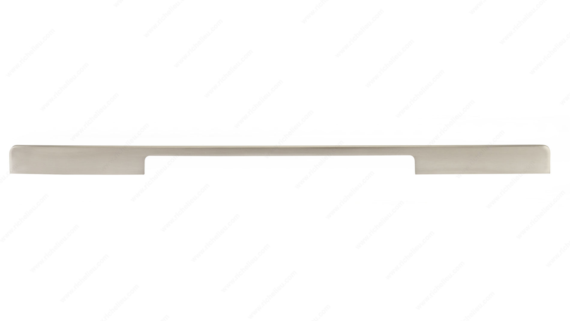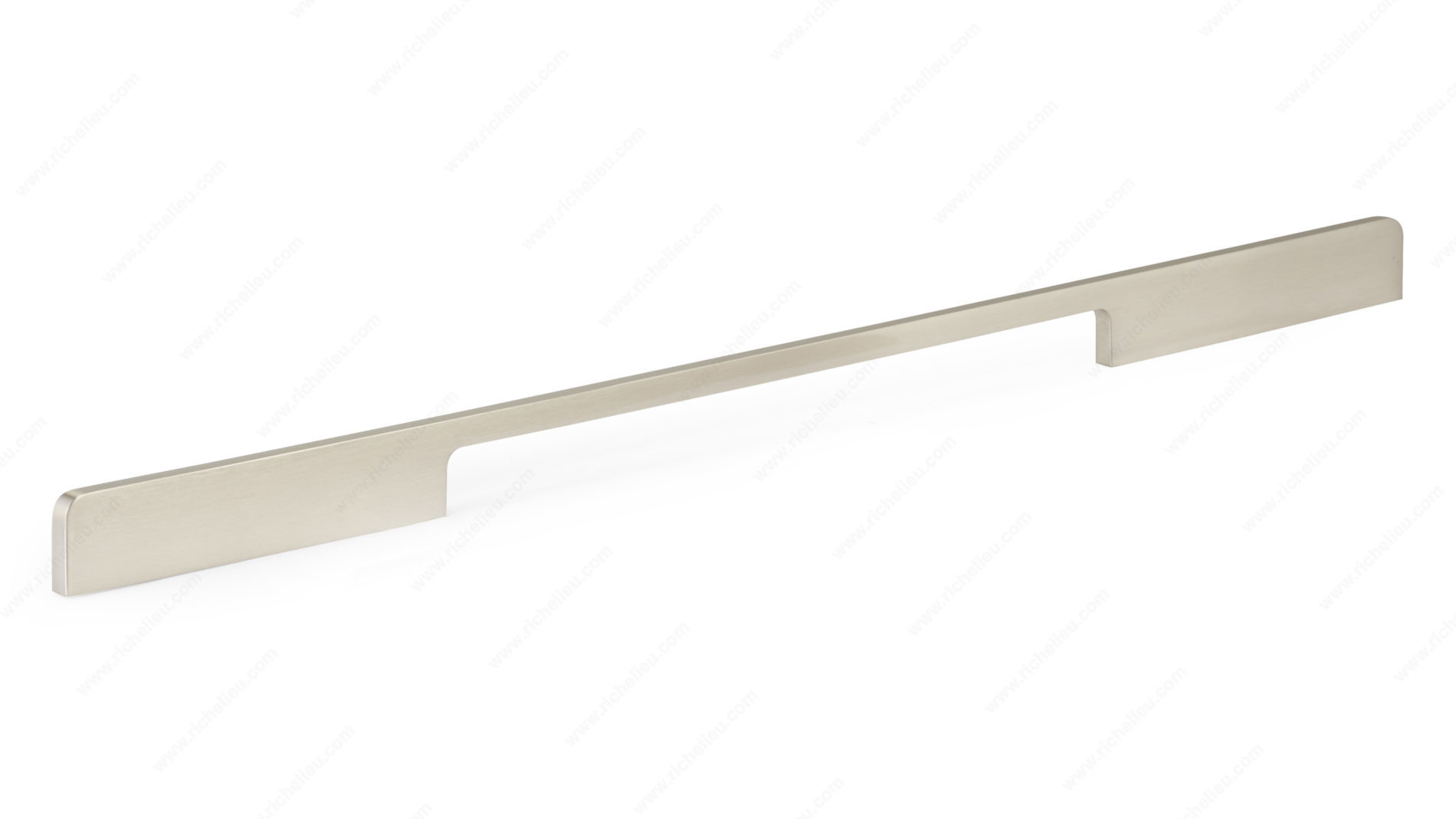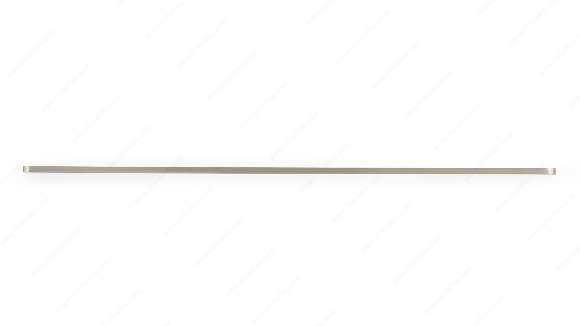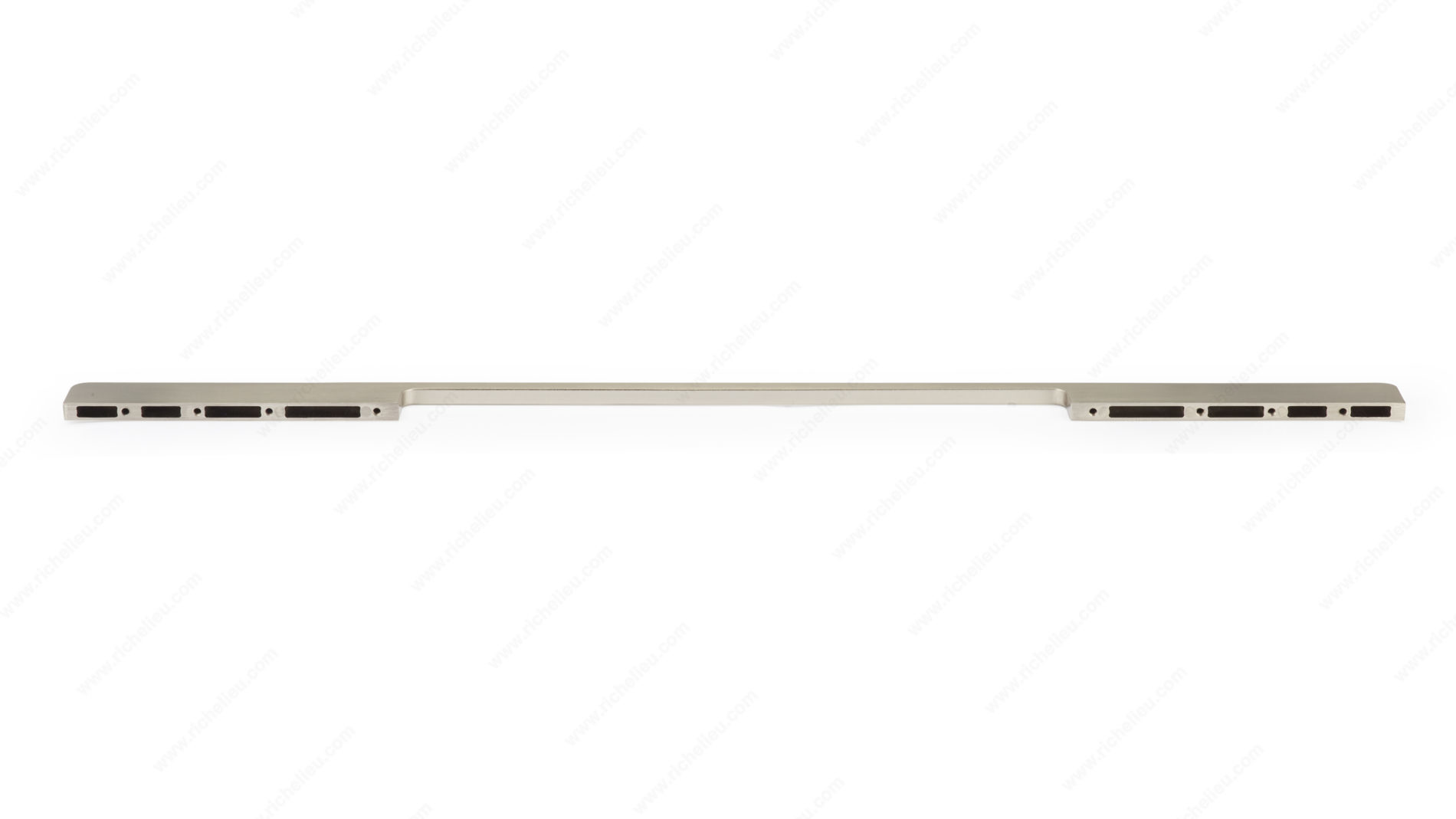 Richelieu BP730320195 Modern Metal Pull - 730 is the perfect choice for those looking to elevate their space with a contemporary touch. Designed with versatility in mind, this pull offers multiple center-to-center options, making it an ideal solution for various cabinet configurations. Available lengths include 3 25/32 in to 5 1/16 in (96 mm to 128 mm), 5 1/16 in to 10 3/32 in (128 mm to 256 mm), and 12 19/32 in to 21 7/16 in (320 mm to 544 mm), accommodating a wide range of installations. Crafted from durable aluminum, the pull features a sleek brushed nickel finish that complements its gray and chrome color scheme, ensuring it fits seamlessly into modern designs. With an overall length of 23 5/8 in and a projection of 1 1/4 in, it offers a comfortable grip while adding a refined aesthetic to your cabinetry. The pull also includes an 8/32 in screw for easy installation. Part of the complete 730 collection, the Richelieu BP730320195 is not only stylish but also practical, enhancing both form and function in kitchens, bathrooms, or any space that demands sophistication. Upgrade your cabinets effortlessly with this exceptional metal pull.