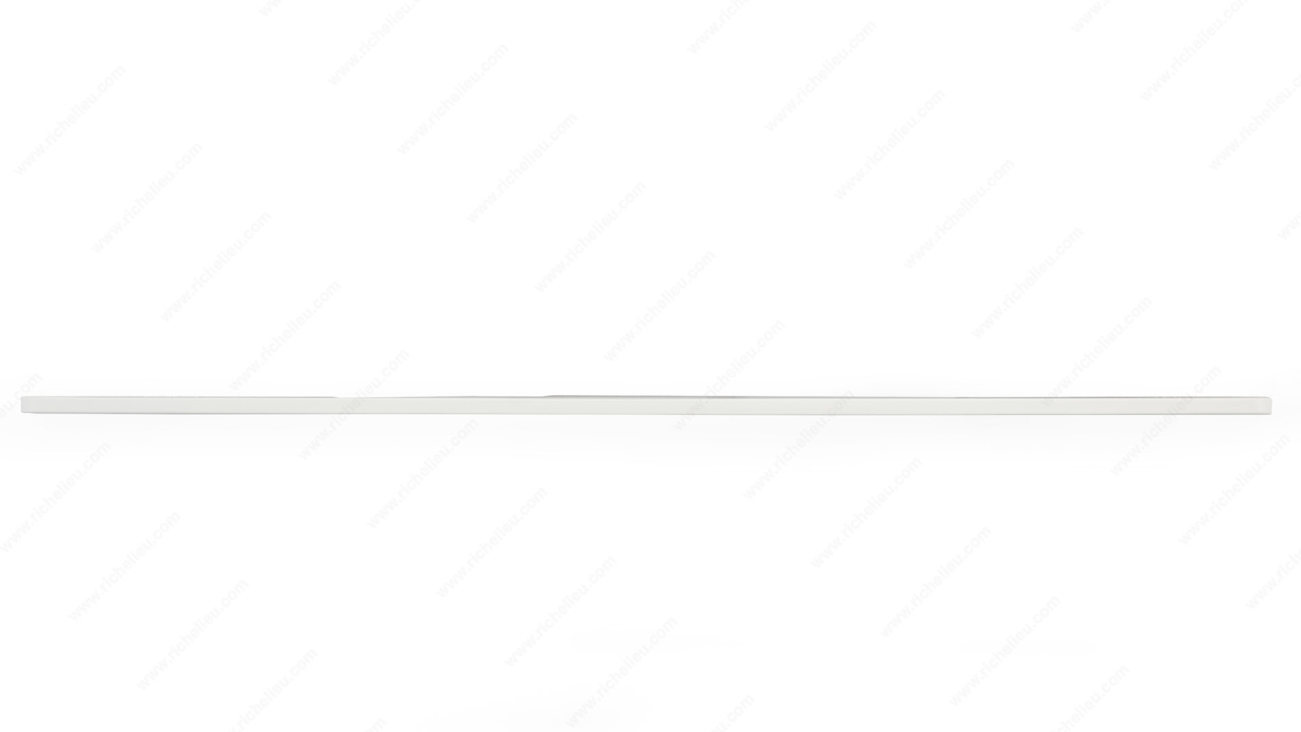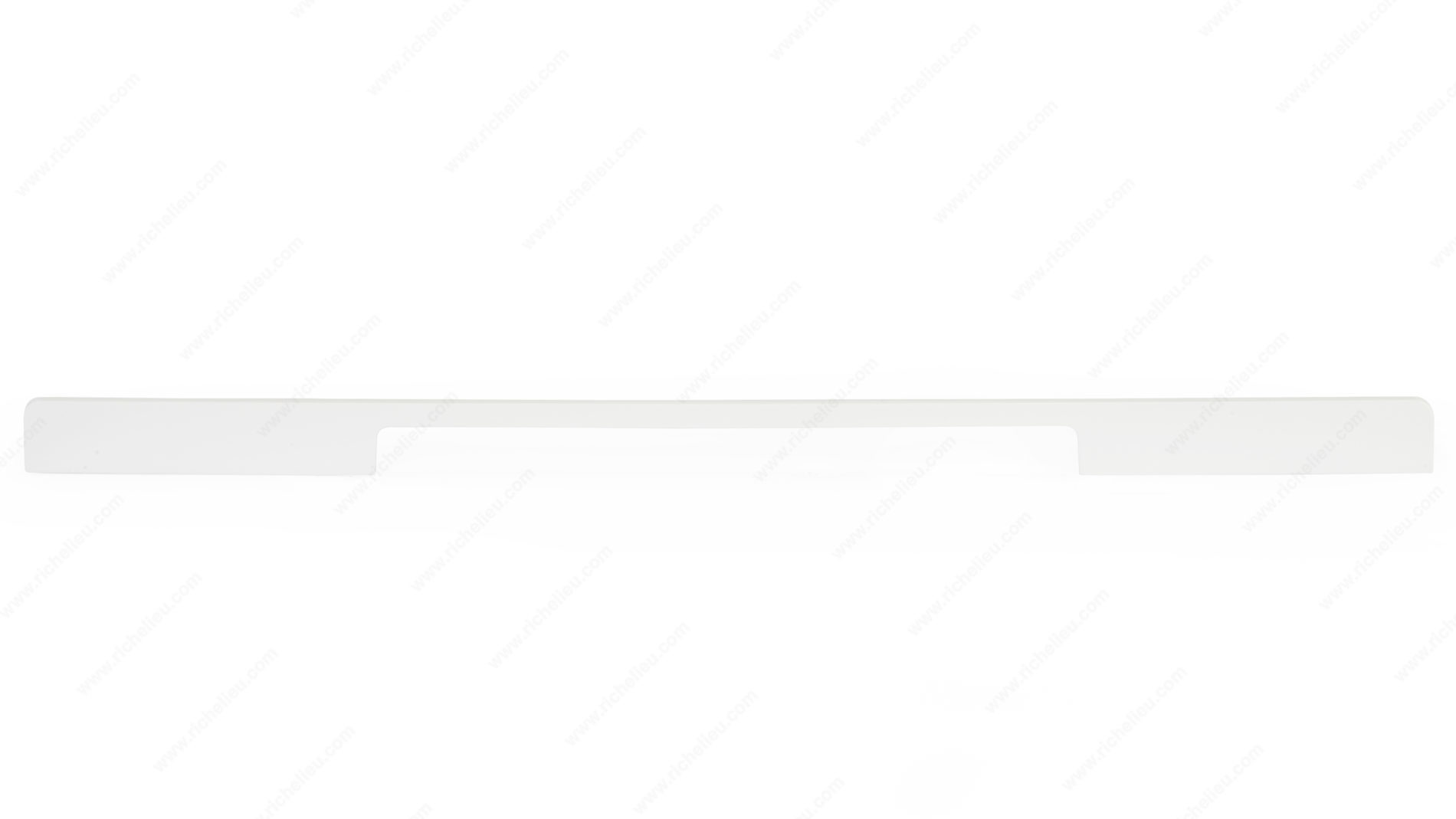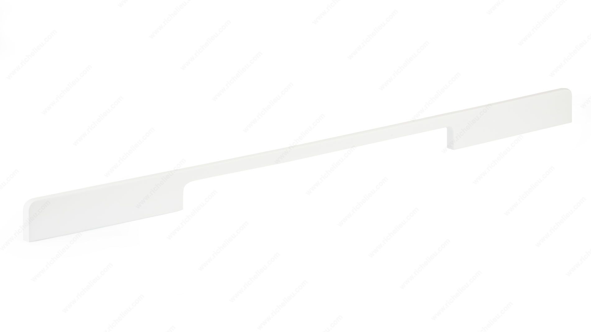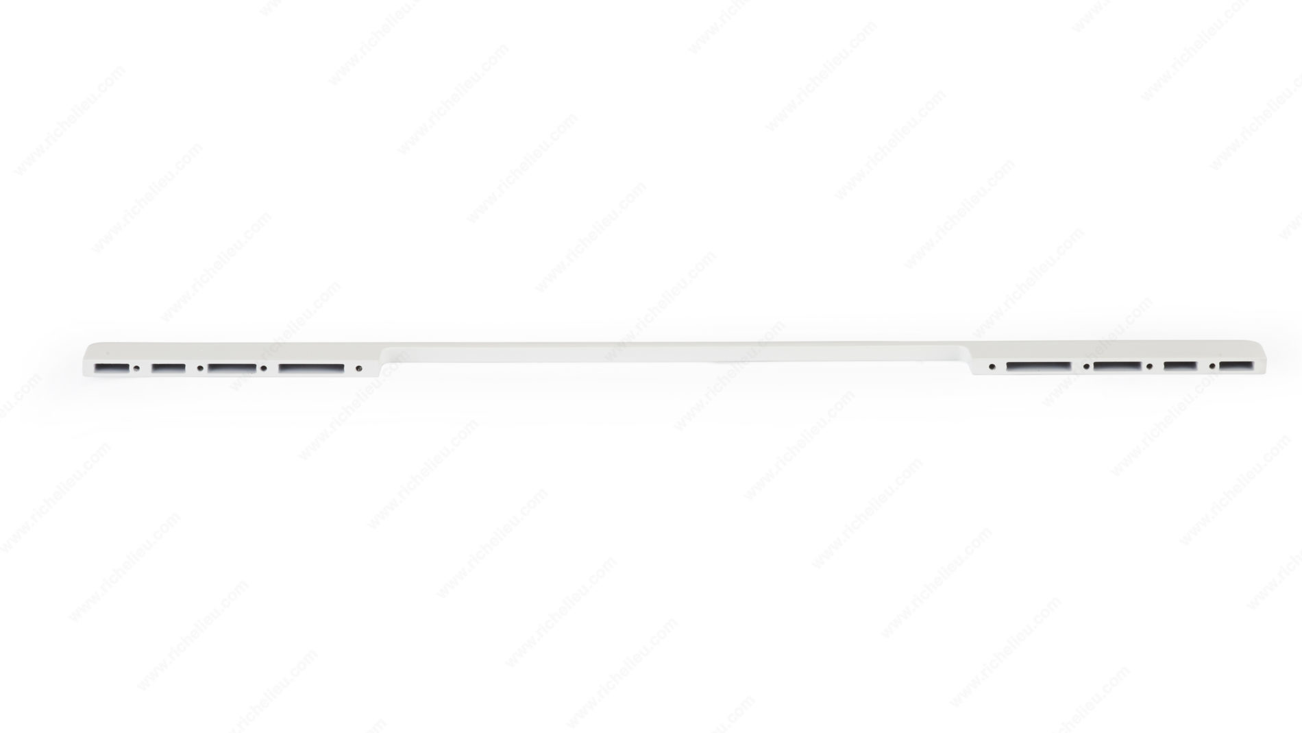 Richelieu BP73032030 Modern Metal Pull - 730 is the perfect choice for enhancing the aesthetic of any space. Crafted from durable aluminum, this pull combines strength with a sleek design, making it an excellent addition to modern cabinetry. Available in a pristine white finish, it seamlessly integrates into various styles, from contemporary kitchens to chic bathrooms. This pull offers versatile center-to-center mounting options, accommodating measurements of 3 25/32 in to 5 1/16 in (96 mm to 128 mm), 5 1/16 in to 10 3/32 in (128 mm to 256 mm), and 12 19/32 in to 21 7/16 in (320 mm to 544 mm). With an overall length of 23 5/8 in, a width of 5/16 in, and a projection of 1 1/4 in, it provides a comfortable grip while adding a modern flair. Richelieu's BP73032030 is part of the comprehensive Model 730 collection, ensuring consistency and style across your hardware choices. Each pull comes with 8/32 in screws included for easy installation. Perfect for makeovers or new builds, this extra-long pull not only improves functionality but also elevates your design aesthetic effortlessly.
