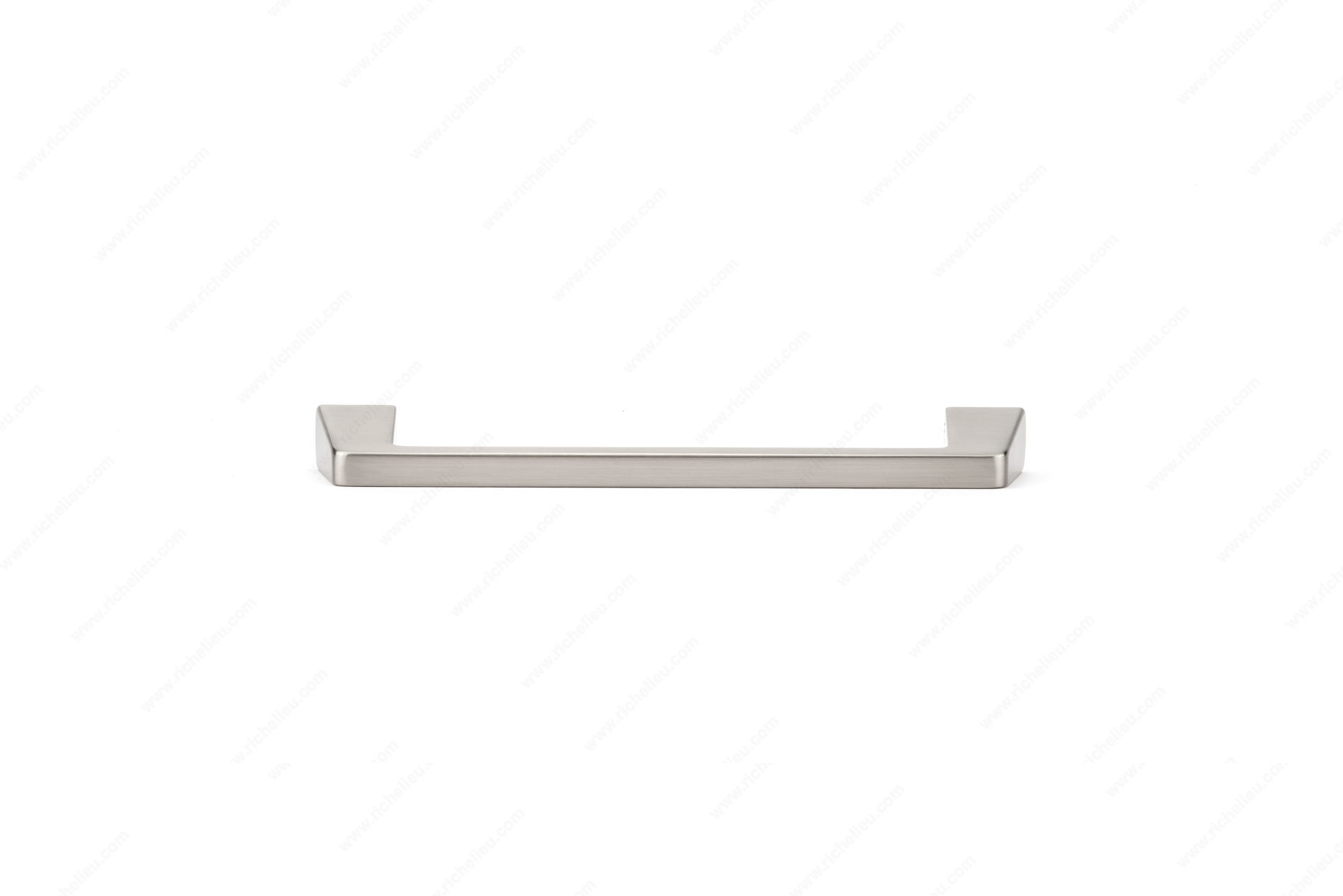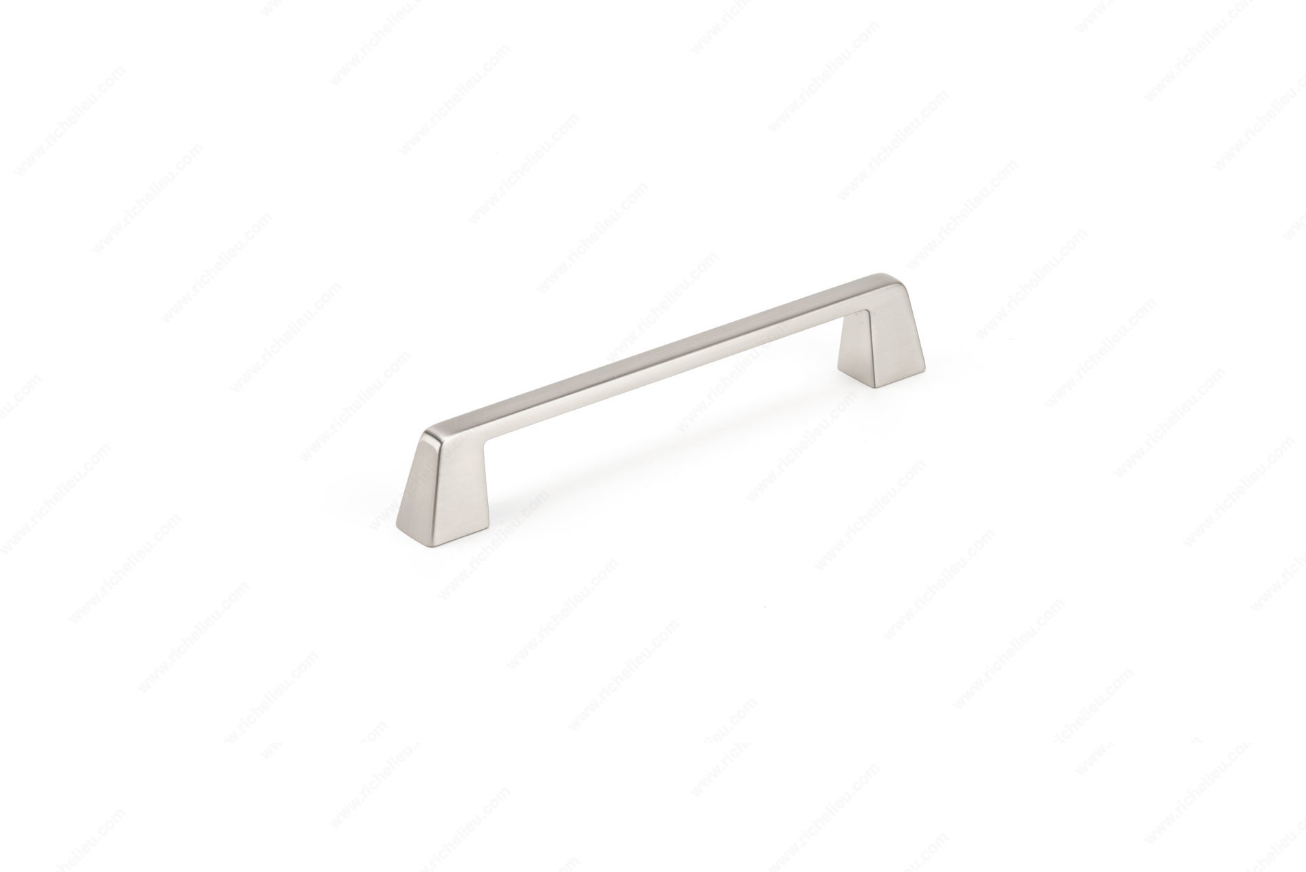 Richelieu BP7340160195 Modern Metal Pull – 7340 features a sleek and minimalist design that seamlessly integrates into various modern decor styles. Its slender handle and flared feet enhance both functionality and aesthetic appeal, making it an ideal choice for contemporary cabinetry and furniture. With a center-to-center measurement of 6 5/16 inches, this pull provides a comfortable grip while ensuring ease of use. The brushed nickel finish, complemented by gray and chrome accents, adds a sophisticated touch to any space. Measuring 7 11/16 inches in overall length and 3/4 inch in width, this pull is designed for both style and practicality, boasting a projection of 1 5/16 inches. Crafted from durable zamak, the Richelieu BP7340160195 not only looks great but is engineered for longevity. Each pull includes 8/32 inch screws for straightforward installation, making it a convenient choice for professionals and DIY enthusiasts alike. Part of the complete 7340 collection, this modern pull can elevate the look of cabinets, drawers, and furniture throughout your home. Choose the Richelieu BP7340160195 for a refined, modern touch that perfectly complements your interior design vision.
