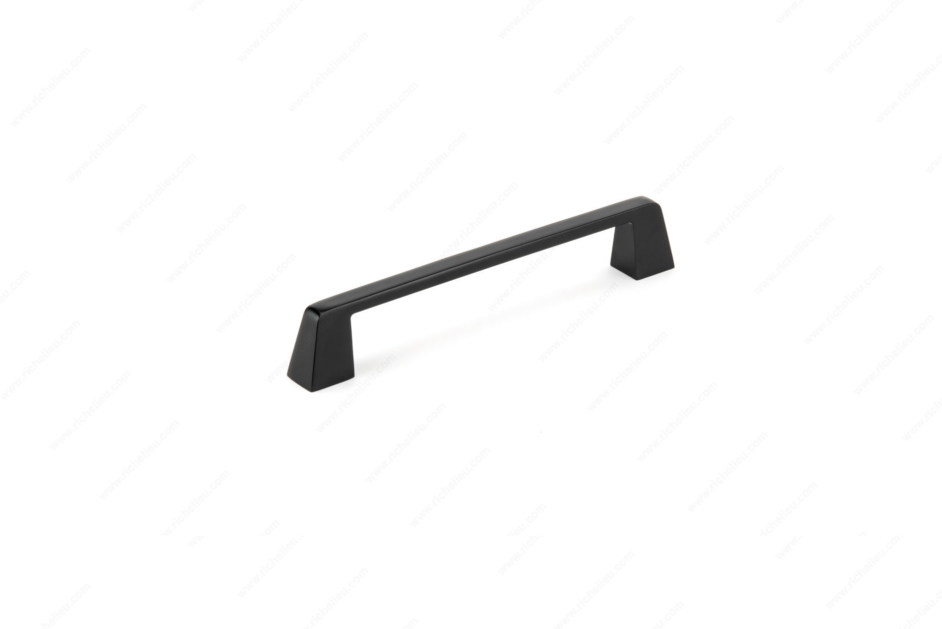 Richelieu BP7340160900 Modern Metal Pull - 7340 offers a sleek, contemporary aesthetic that enhances a variety of modern decor styles. This pull features a slender handle complemented by flared feet, creating an elegant profile that is both functional and visually appealing. Crafted from durable zamak, it ensures longevity and resilience in high-use environments. With an overall length of 7 11/16 inches and a center-to-center measurement of 6 5/16 inches, this pull is designed to fit seamlessly into your cabinetry or furniture. The matte black finish not only adds a touch of sophistication but also makes it easy to coordinate with various color schemes and materials. Measuring 3/4 inch in width and projecting 1 5/16 inches, it provides a comfortable grip while maintaining a streamlined silhouette. Each pull comes with 8/32 inch screws for straightforward installation, making it an excellent choice for both new projects and renovations. Part of the complete 7340 collection, the BP7340160900 pull is ideal for professionals and homeowners alike who appreciate modern design with practical functionality. Elevate your space with this versatile hardware solution that embodies both style and substance.