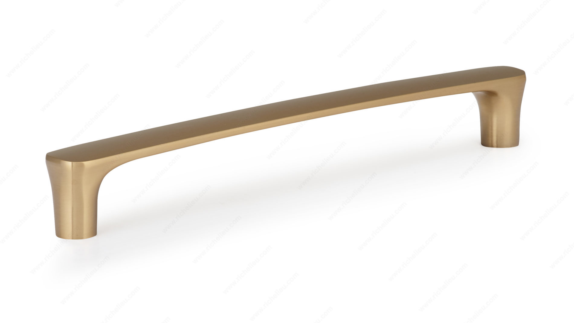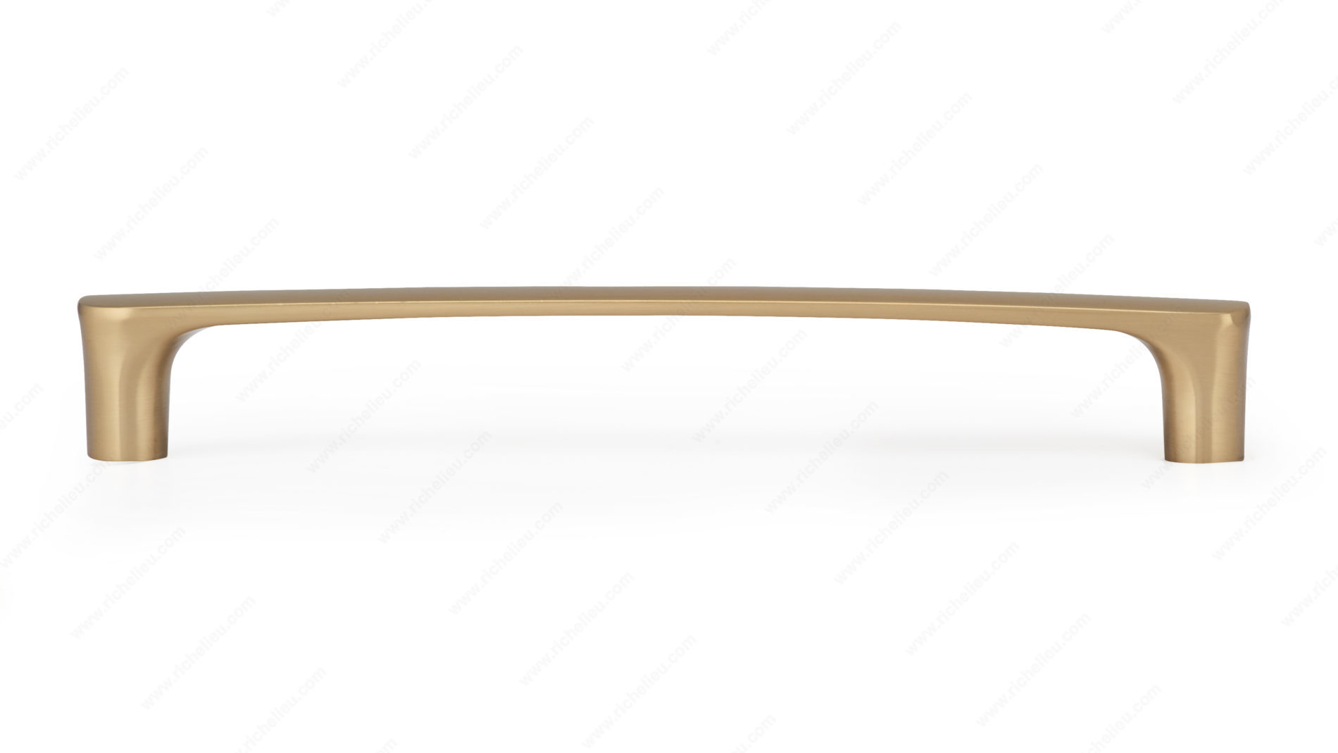 Richelieu BP7345192CHBRZ Modern Metal Pull - 7345 brings a contemporary flair to your kitchen or bathroom cabinetry. With its slightly arched design and flared rounded bases, this pull not only enhances functionality but also adds a striking visual element to your space. Crafted from durable zamak, it ensures longevity while maintaining a sophisticated look. Measuring 8 7/32 inches in length with a center-to-center distance of 7 9/16 inches, this pull fits seamlessly into a variety of cabinet styles. The champagne bronze finish provides a warm, elegant touch, complementing modern aesthetics beautifully. Its projection of 1 7/32 inches allows for a comfortable grip, making it easy to open cabinets and drawers. Included with the pull are 8/32 inch screws for hassle-free installation, ensuring a secure fit. With a width of 27/32 inches, this pull is designed to make a statement without overwhelming your cabinetry. Ideal for both new installations and updates, the Richelieu BP7345192CHBRZ is part of the complete 7345 collection, allowing you to coordinate your hardware for a cohesive look. Upgrade your space with this stylish and functional addition today.