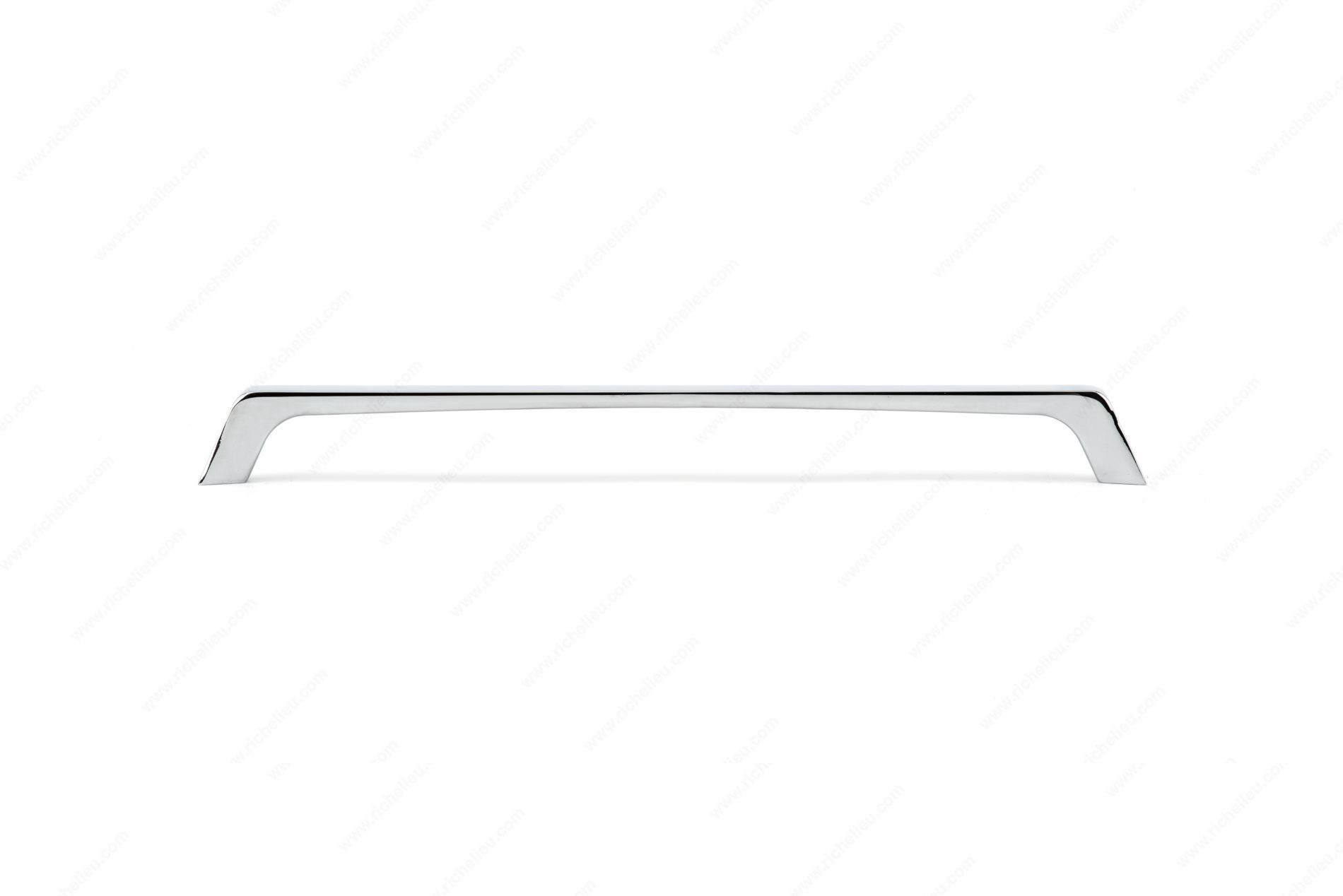 Richelieu BP7348256140 Modern Metal Pull - 7348 brings a refreshing touch to any contemporary kitchen or bathroom with its thoughtfully designed features. The slender handle, rounded corners, and tapered feet create an elegant profile that effortlessly enhances modern aesthetics. Measuring 10 3/4 inches in overall length, this pull offers a comfortable grip while maintaining a streamlined look. Crafted from durable zamak, the pull showcases a sleek chrome finish that adds a sophisticated flair to cabinetry. Its center-to-center measurement of 10 1/8 inches ensures compatibility with various installations, making it a versatile choice for renovations or new builds. The pull's projection of 1 1/16 inches allows for easy access without compromising space. Available in a striking gray and chrome color scheme, the BP7348256140 pull is part of the complete 7348 collection, catering to those who appreciate cohesive design in their spaces. Each pull comes with included screws (8/32 inches), simplifying installation. Whether upgrading cabinetry or adding finishing touches to a remodel, this modern pull is an excellent choice for professionals and discerning homeowners alike. With its combination of style and functionality, the Richelieu BP7348256140 is sure to impress.