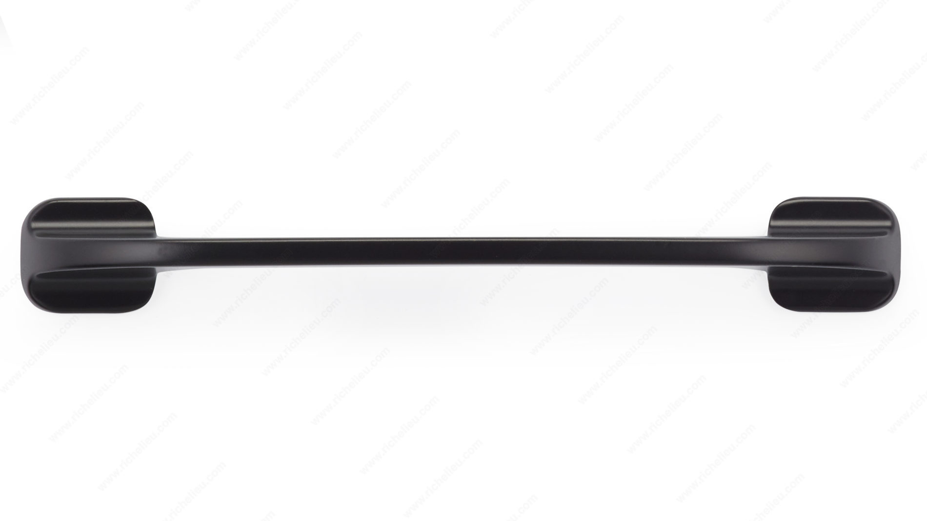 Richelieu BP7350128900 Modern Metal Pull - 7350 seamlessly blends style and functionality, making it an ideal choice for contemporary kitchens and bathrooms. This sleek pull features a slender handle with rounded corners and a wide base, ensuring it not only enhances the aesthetic of your space but also provides a comfortable grip. Crafted from durable zamak, this pull is designed for longevity, and its matte black finish adds a touch of sophistication to any cabinetry. With an overall length of 6 5/8 inches and a center-to-center measurement of 5 1/32 inches, this pull is versatile enough to fit various cabinet designs. Its dimensions include a projection of 1 3/32 inches and a width of just 1/4 inch, making it a subtle yet impactful addition to your decor. The BP7350128900 comes with included 8/32 inch screws for easy installation, ensuring a hassle-free upgrade to your cabinetry. Part of the complete 7350 collection, this modern pull is perfect for those looking to elevate their interior design with quality hardware. Whether you’re renovating or building new, Richelieu’s Modern Metal Pull is a stylish and practical solution that meets the demands of today’s discerning homeowners and building professionals.