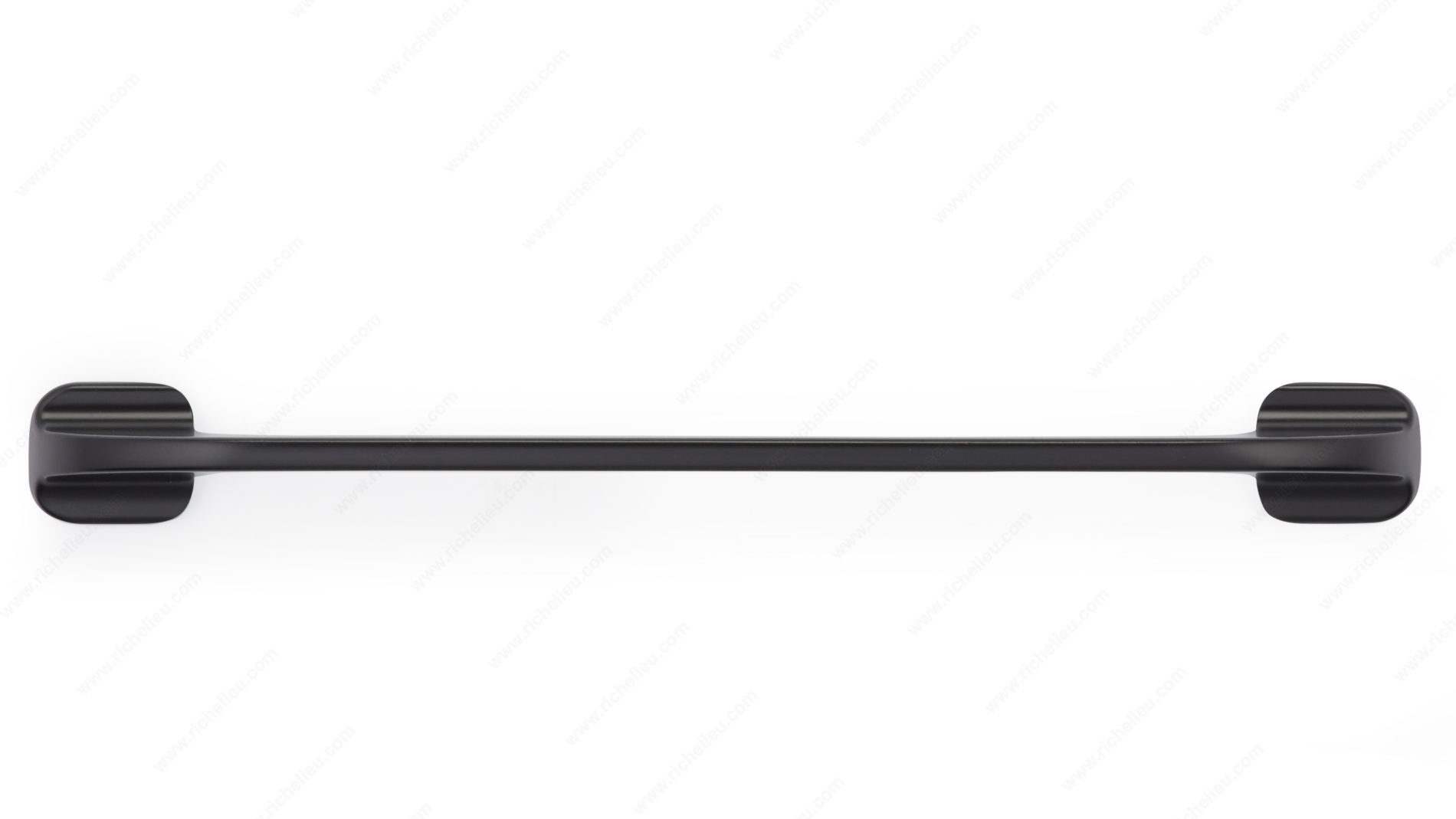 Richelieu BP7350192900 Modern Metal Pull - 7350 offers a striking and functional addition to any contemporary kitchen or bathroom. This pull features a slender handle with rounded corners that not only enhance its modern aesthetic but also provide a comfortable grip. The wide base ensures stability and makes it an ideal choice for cabinetry and drawers alike. Crafted from durable zamak material, this pull is designed to withstand daily use while maintaining its sleek appearance. The matte black finish adds a sophisticated touch, seamlessly blending with various décor styles. With an overall length of 9 1/8 inches and a center-to-center measurement of 7 9/16 inches, it fits standard installations effortlessly. The pull’s projection of 1 3/16 inches allows for easy access without compromising space. Richelieu’s commitment to quality is evident in the thoughtful design of this model, which is part of the broader 7350 collection. Each pull comes complete with an 8/32 inch screw for straightforward installation. Enhance your cabinetry with the Richelieu BP7350192900-where modern design meets practical functionality.