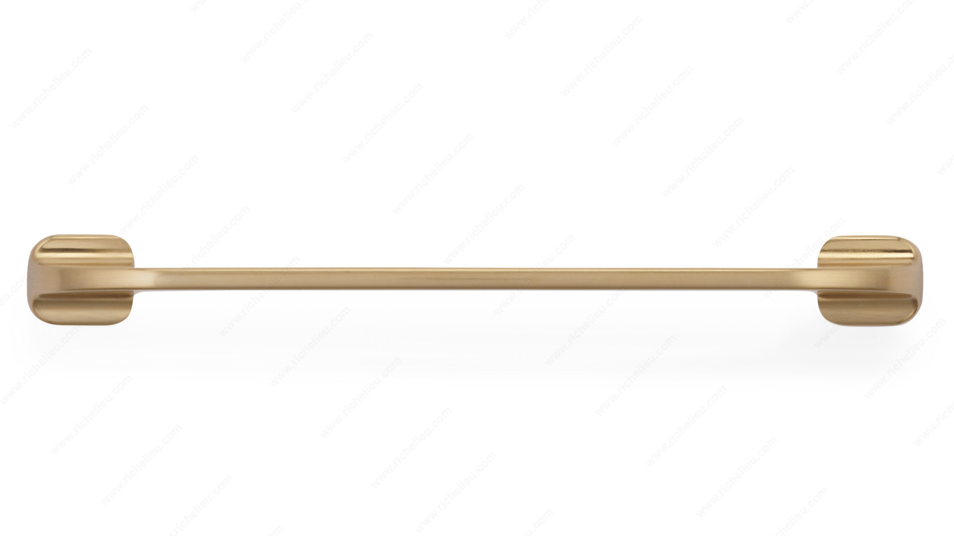 Richelieu BP7350192CHBRZ Modern Metal Pull - 7350 combines sleek design with functional elegance, making it an ideal choice for contemporary kitchens and bathrooms. This pull features a slender handle with rounded corners, ensuring a comfortable grip while enhancing the aesthetic appeal of your cabinetry. The wide base adds stability and a touch of sophistication, seamlessly integrating into various design themes. Crafted from high-quality zamak, this pull showcases a luxurious champagne bronze finish (Finish Number: CHBRZ), which beautifully complements a range of color palettes. The overall length measures 9 1/8 inches, with a center-to-center distance of 7 9/16 inches, making it an excellent fit for standard cabinet layouts. Its projection of 1 3/16 inches provides ample space for easy access, while the width of just 1/4 inch maintains a streamlined look. Included with your purchase are 8/32 inch screws, ensuring a straightforward installation process. The BP7350192CHBRZ is part of the Modern collection, allowing you to mix and match with other pieces in the series for a cohesive design. Elevate your space with this stylish and functional pull, designed to make a lasting impression.
