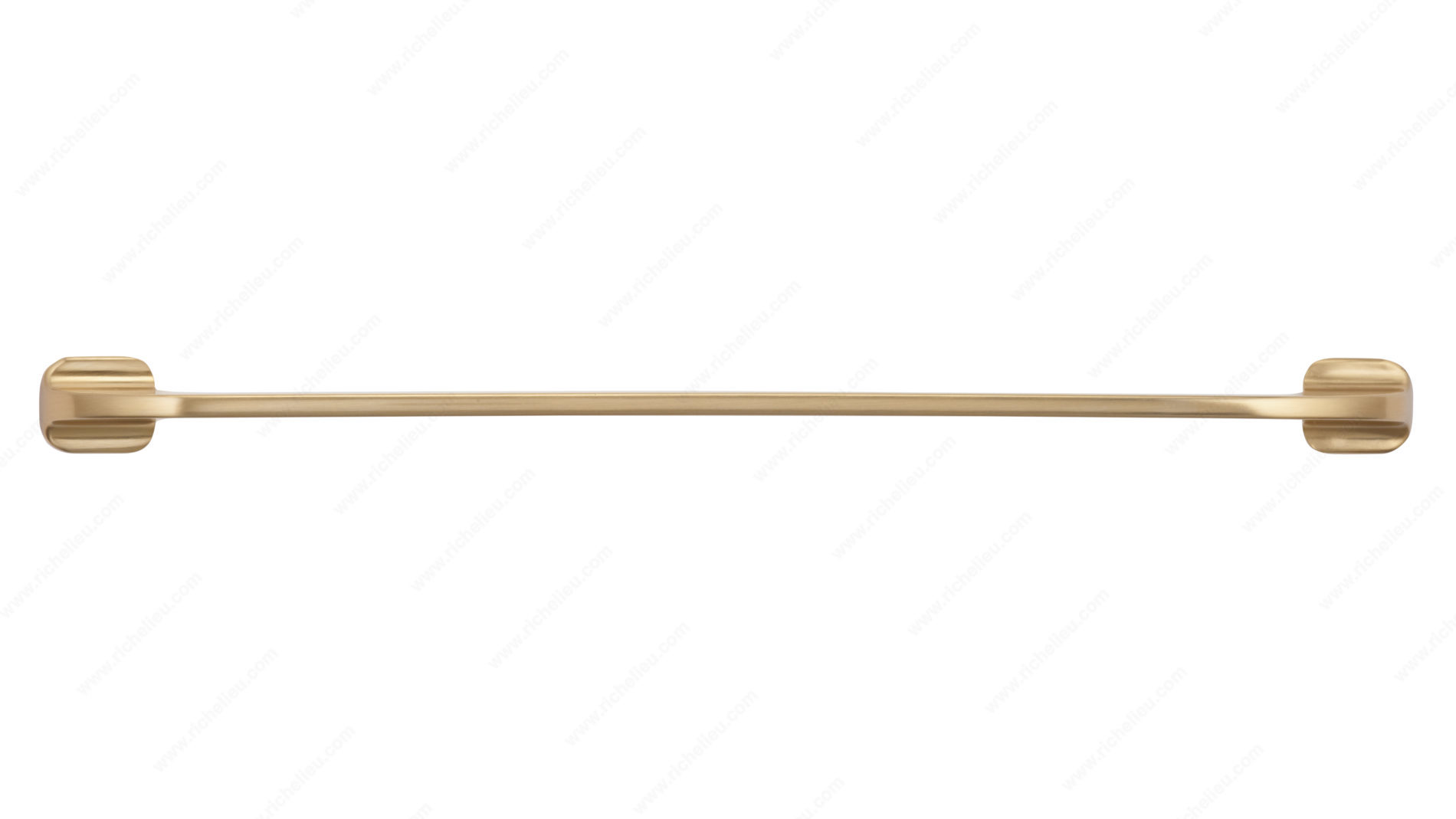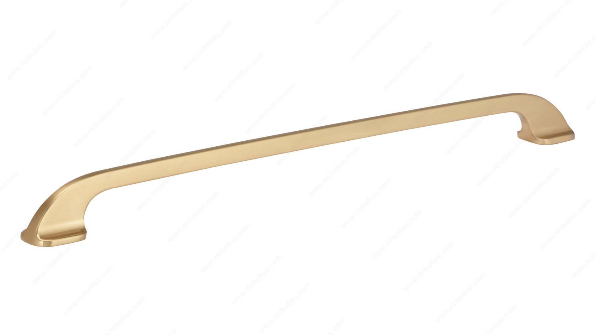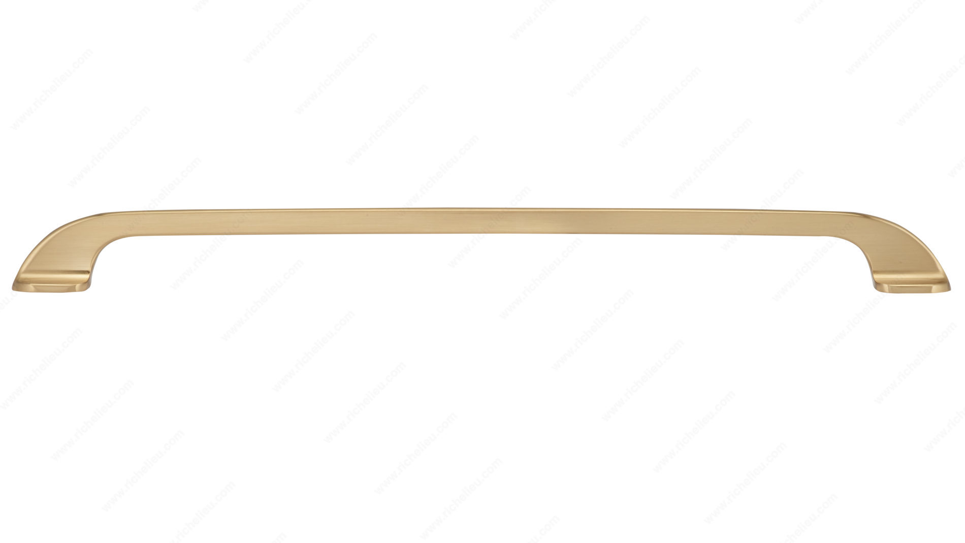 Richelieu BP7350320CHBRZ Modern Metal Pull - 7350 presents a striking blend of elegance and functionality, making it an ideal choice for contemporary kitchens and bathrooms. This pull features a slender handle with rounded corners, ensuring a comfortable grip while enhancing the aesthetic appeal of your cabinetry. The wide base provides added stability and a polished look, seamlessly integrating with various design styles. Crafted from durable Zamak, this pull is not only stylish but also built to withstand daily use. The champagne bronze finish (CHBRZ) adds a touch of warmth and sophistication, perfectly complementing modern decor. With an overall length of 14 1/4 inches and a center-to-center measurement of 12 5/8 inches, it is designed to fit standard cabinet configurations effortlessly. The overall projection of 1 7/32 inches ensures that your drawers and cabinets open smoothly, while the width of just 1/4 inch maintains a sleek profile. Each pull comes with the necessary 8/32 inch screws, making installation quick and easy. Part of the complete 7350 collection, the Richelieu BP7350320CHBRZ pull is a stylish and practical addition to any home improvement project, enhancing both form and function.
