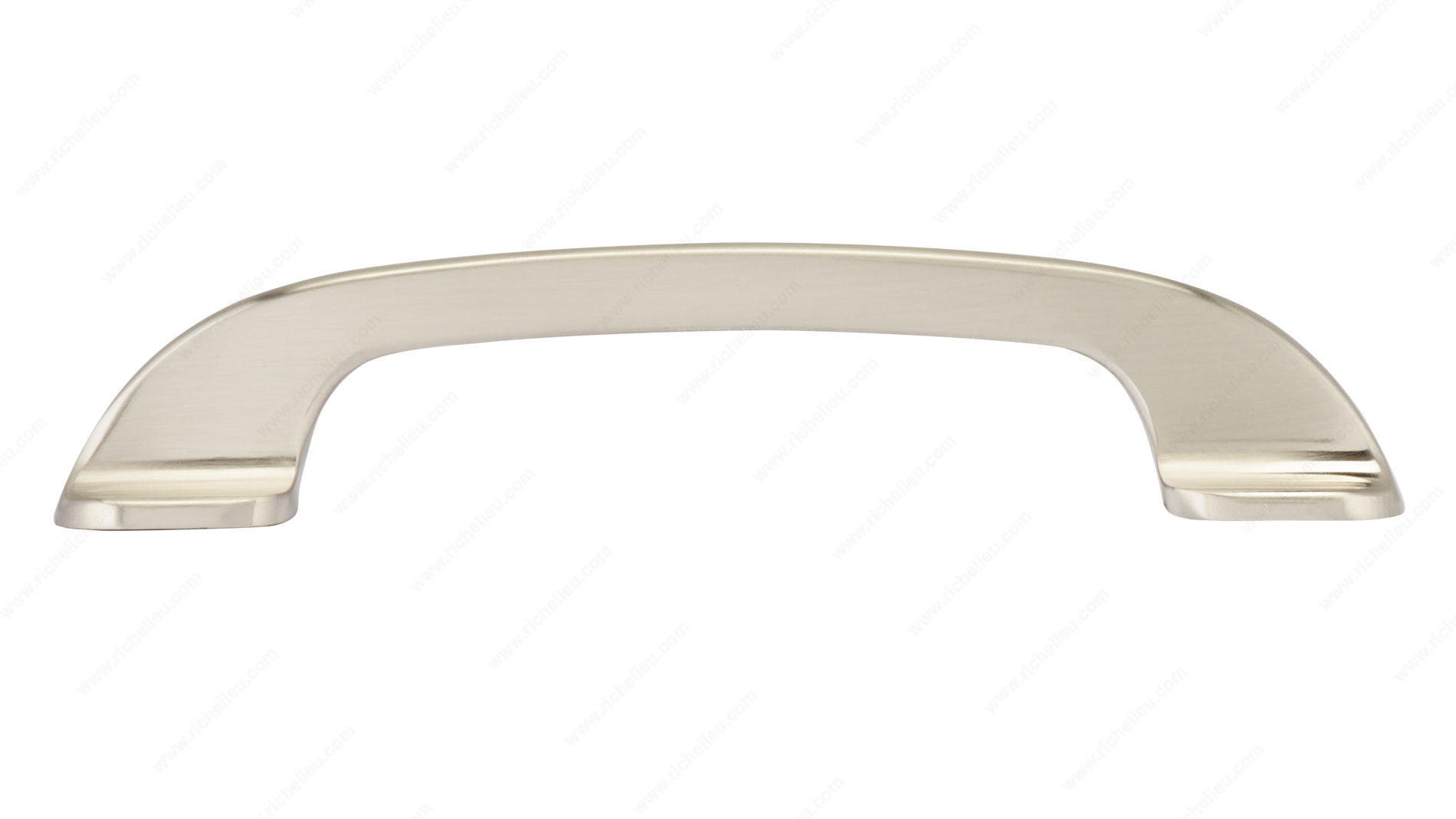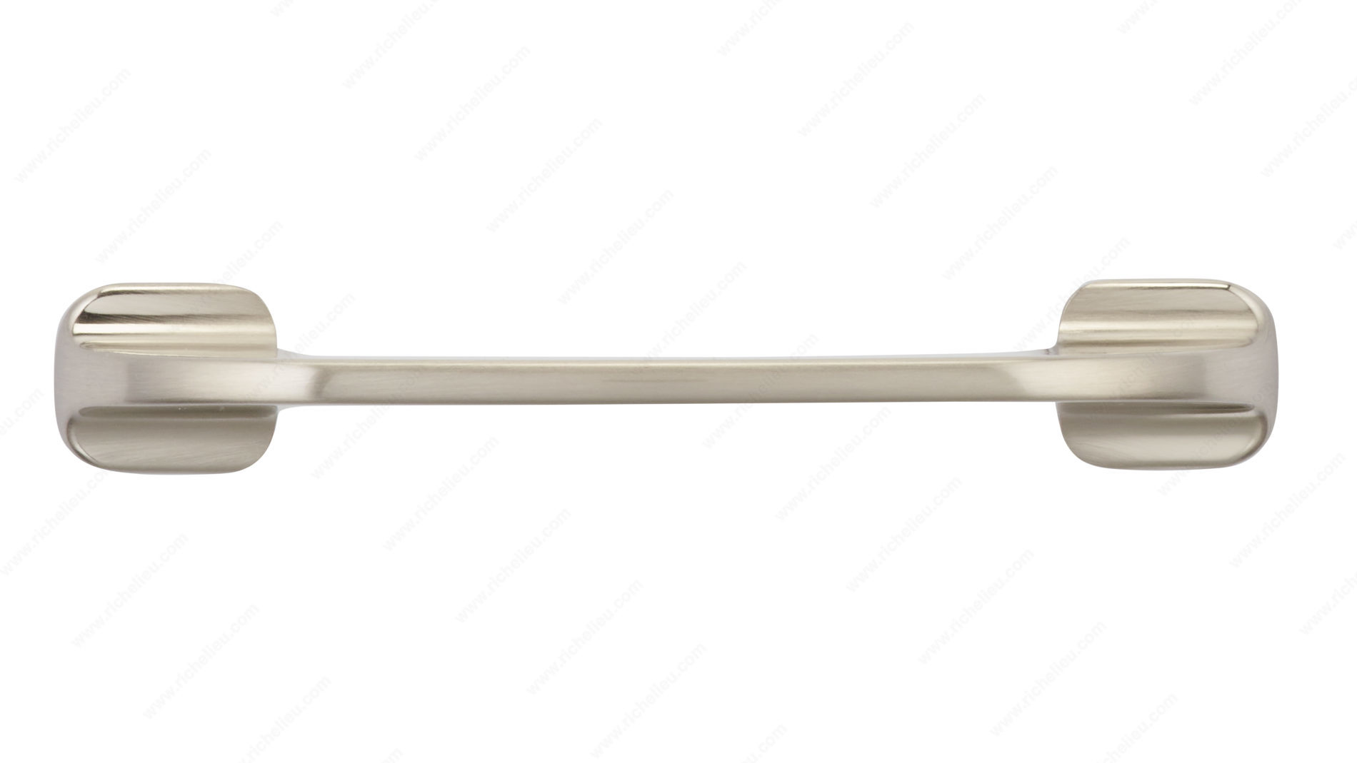 Richelieu BP735096195 Modern Metal Pull - 7350 is a striking addition to any contemporary kitchen or bathroom. This elegantly designed pull features a slender handle with rounded corners, providing a sleek aesthetic that complements modern decor. Its wide base enhances stability and ease of use, making it a practical choice for high-traffic areas. Crafted from durable Zamak, this pull is finished in brushed nickel, delivering a sophisticated gray and chrome look that effortlessly integrates into various design themes. With an overall length of 5 11/32 inches and a projection of 1 1/32 inches, it offers a comfortable grip while maintaining a streamlined profile. The center-to-center measurement of 3 25/32 inches ensures compatibility with standard cabinetry. The Richelieu BP735096195 includes an 8/32 inch screw for easy installation, making it a hassle-free upgrade for any renovation project. Its modern style is part of the complete 7350 collection, allowing seamless coordination with other hardware pieces. Whether you're updating your space or designing a new one, this pull adds the perfect finishing touch with both functionality and flair. Elevate your home’s appeal with this exceptional piece from Richelieu.