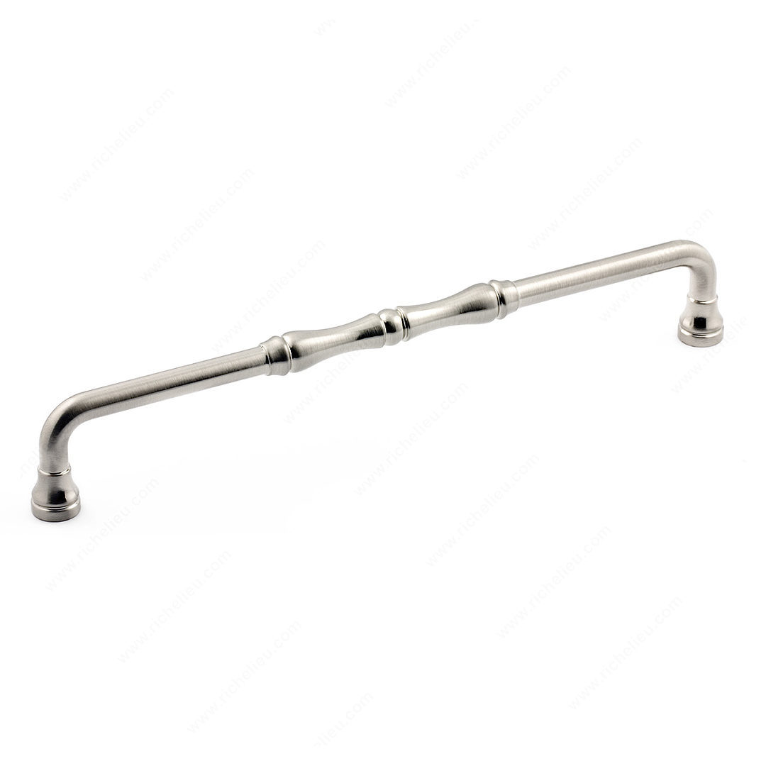 Richelieu BP740192195 Traditional Metal Pull - 740 is the perfect addition to elevate your kitchen or bathroom décor with its classic elegance. This pull features simple lines complemented by interesting detailing on the center handle and ends, making it a stylish choice for any traditional design scheme. Crafted from durable Zamak, this pull ensures longevity and reliability, while the brushed nickel finish adds a touch of sophistication to your cabinetry. With an overall length of 8 1/16 inches and a center-to-center measurement of 7 9/16 inches, it fits seamlessly into standard cabinet configurations. The projection of 1 5/16 inches provides a comfortable grip, and the width of 13/32 inches allows it to blend harmoniously with various styles. Offered in a sleek gray and chrome color scheme, the BP740192195 also comes with 8/32 inch screws included for easy installation. Packaged conveniently in a bag, this pull can ship via UPS, ensuring it arrives promptly at your project site. Upgrade your cabinets with this traditional pull, and enjoy the perfect fusion of functionality and timeless design.