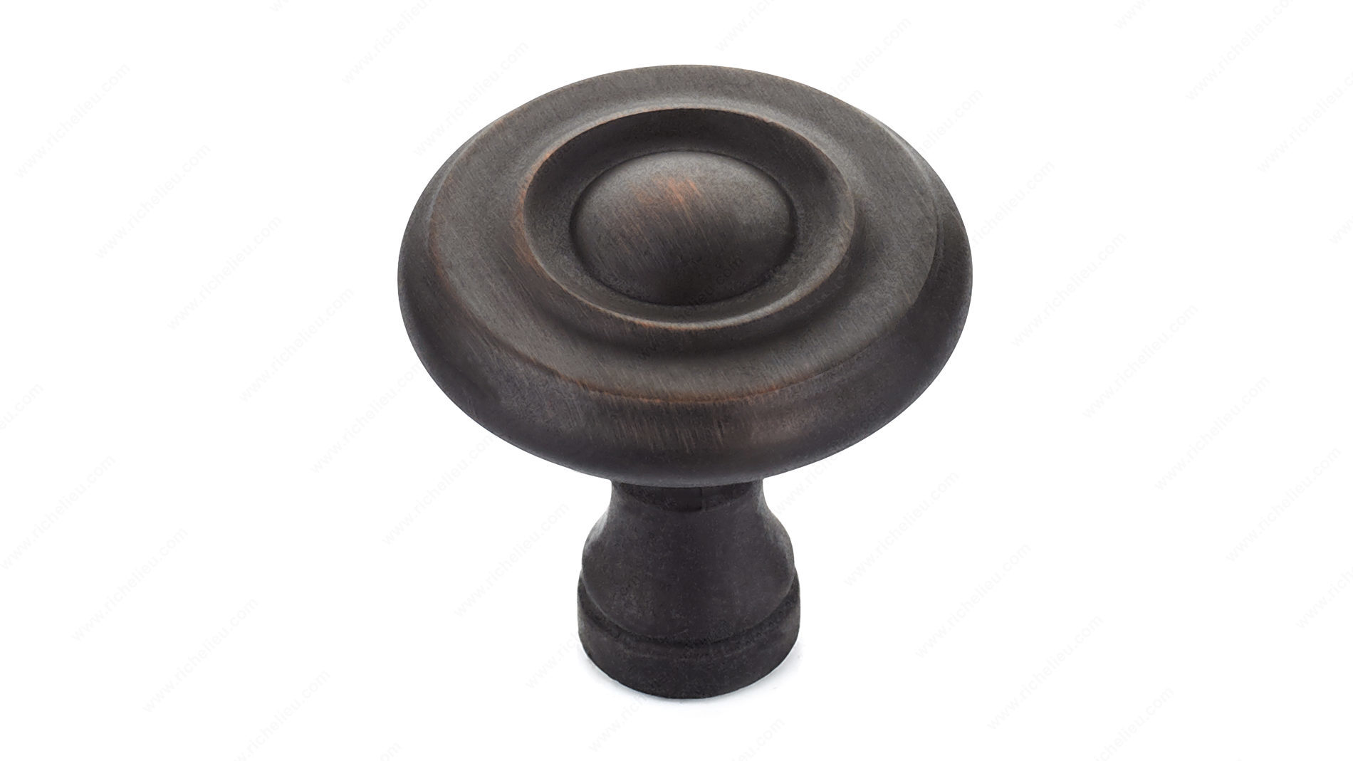 Richelieu BP74032BORB Traditional Metal Knob - 740 is a striking addition to any furniture piece, embodying a classic round design that combines elegance with functionality. Crafted from high-quality Zamak, this knob features a beautiful brushed oil-rubbed bronze finish, offering a rich brown and bronze color that enhances the aesthetic of both modern and traditional interiors. With an overall diameter of 1 1/4 inches and a projection of 1 5/16 inches, this knob is perfectly sized for comfortable gripping while maintaining a stylish profile. The details in its design provide a touch of sophistication, making it an ideal choice for kitchen cabinets, dressers, or any furniture that requires a refined finishing touch. Installation is straightforward, as the knob comes with an 8/32 inch screw included, ensuring a secure fit. This product is not only visually appealing but also durable and reliable, making it suitable for homeowners and professionals alike. With the ability to ship via UPS, the Richelieu BP74032BORB is readily available to enhance your space with its traditional charm and bold character. Elevate your cabinetry and furniture with this exquisite knob, designed to impress and built to last.
