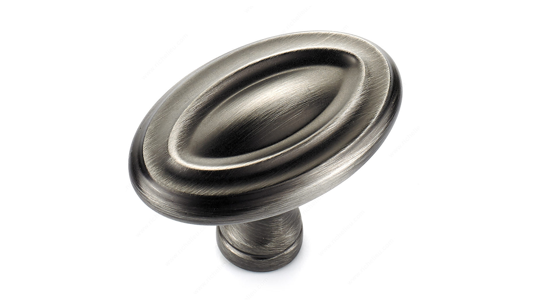 Richelieu BP74043143 Traditional Metal Knob - 7404 is a classic oval knob that seamlessly blends timeless elegance with modern functionality. Crafted from durable zamak, this knob features an antique nickel finish that enhances its sophisticated appearance, making it an eye-catching addition to any furniture piece. With overall dimensions of 1 11/16 inches in length, 1 1/16 inches in width, and a projection of 1 5/16 inches, it offers a comfortable grip while providing a substantial presence. The stylish details of this knob not only elevate the aesthetic of cabinets and drawers but also ensure durability for long-term use. The traditional design is perfect for various décor styles, from vintage to contemporary, making it a versatile choice for homeowners and builders alike. Richelieu includes an 8/32 inch screw for easy installation, ensuring that you can enhance your furniture with minimal effort. Available in a striking gray and chrome color palette, this knob is a bold statement piece that complements a range of finishes and textures. For those seeking a blend of style and practicality, the Richelieu BP74043143 knob is an excellent choice that will enhance any space.