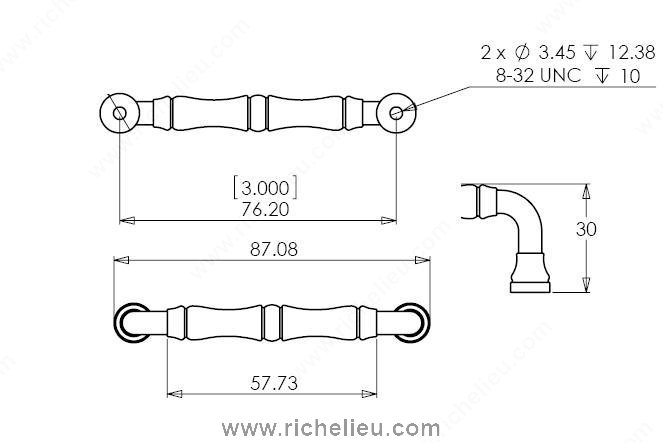 Richelieu BP74076143 Traditional Metal Pull - 740 brings a refined elegance to both kitchen and bathroom spaces. This classic pull features simple lines complemented by intricate detailing along the center handle and at the ends, making it a perfect addition to traditional cabinetry. With a center-to-center measurement of 3 inches, this pull is designed for seamless installation and functionality. The antique nickel finish (Finish Number: 143) exudes a timeless charm, while the gray and chrome color palette adds a modern twist. Crafted from durable zamak, this pull not only enhances aesthetics but also ensures longevity and strength in everyday use. Measuring 3 7/16 inches in overall length and with a projection of 1 3/16 inches, it offers a comfortable grip. The width of 13/32 inches allows it to fit well with various cabinet styles. Each pull comes with an included 8/32 inch screw, making installation straightforward. Packaged conveniently in a bag, the Richelieu BP74076143 is ready to ship via UPS, making it a hassle-free choice for professionals and homeowners alike. Elevate your cabinetry with this blend of functionality and style, embodying the quality and craftsmanship synonymous with Richelieu products.