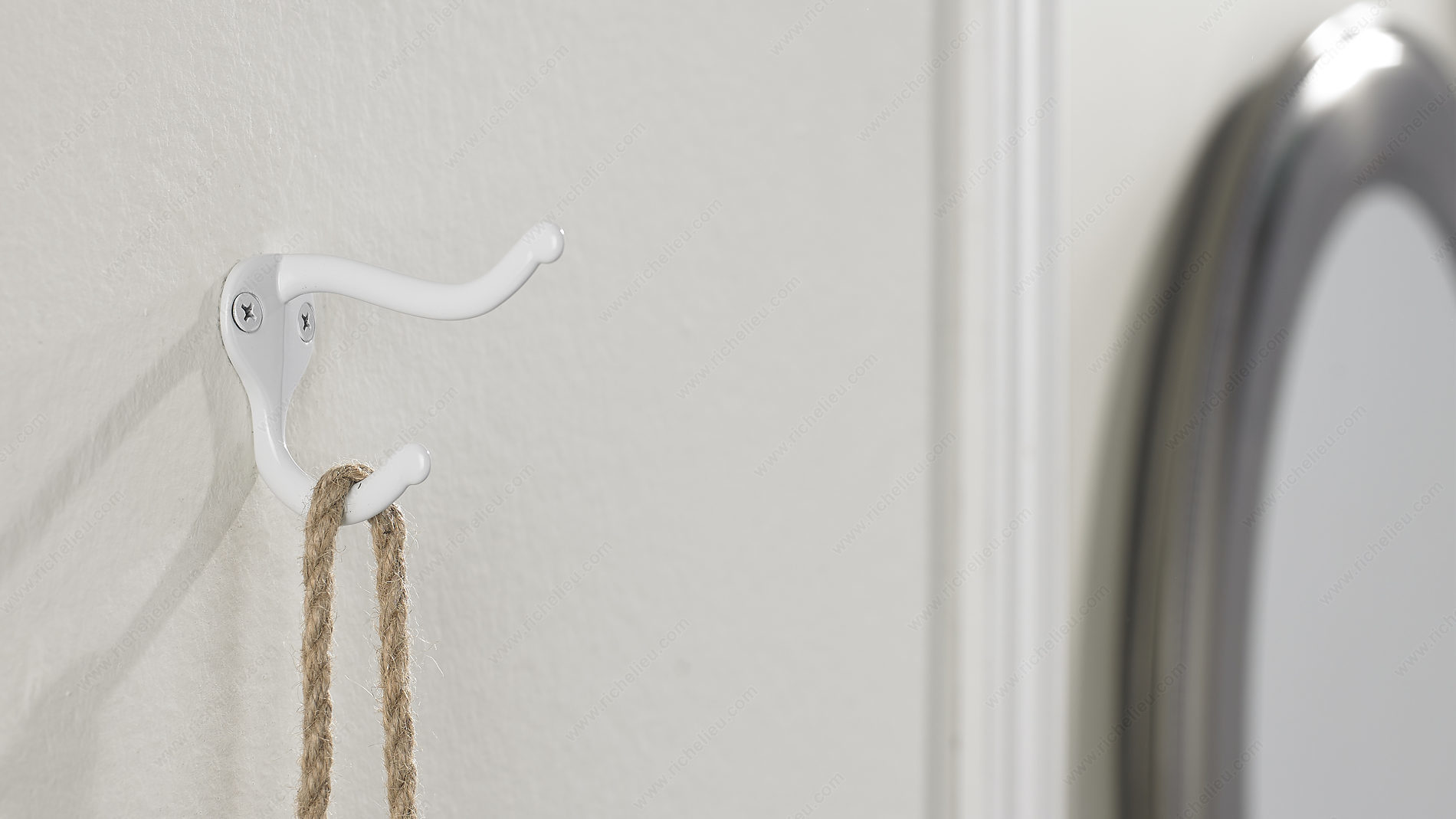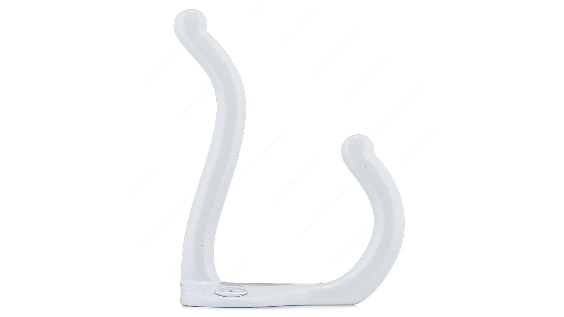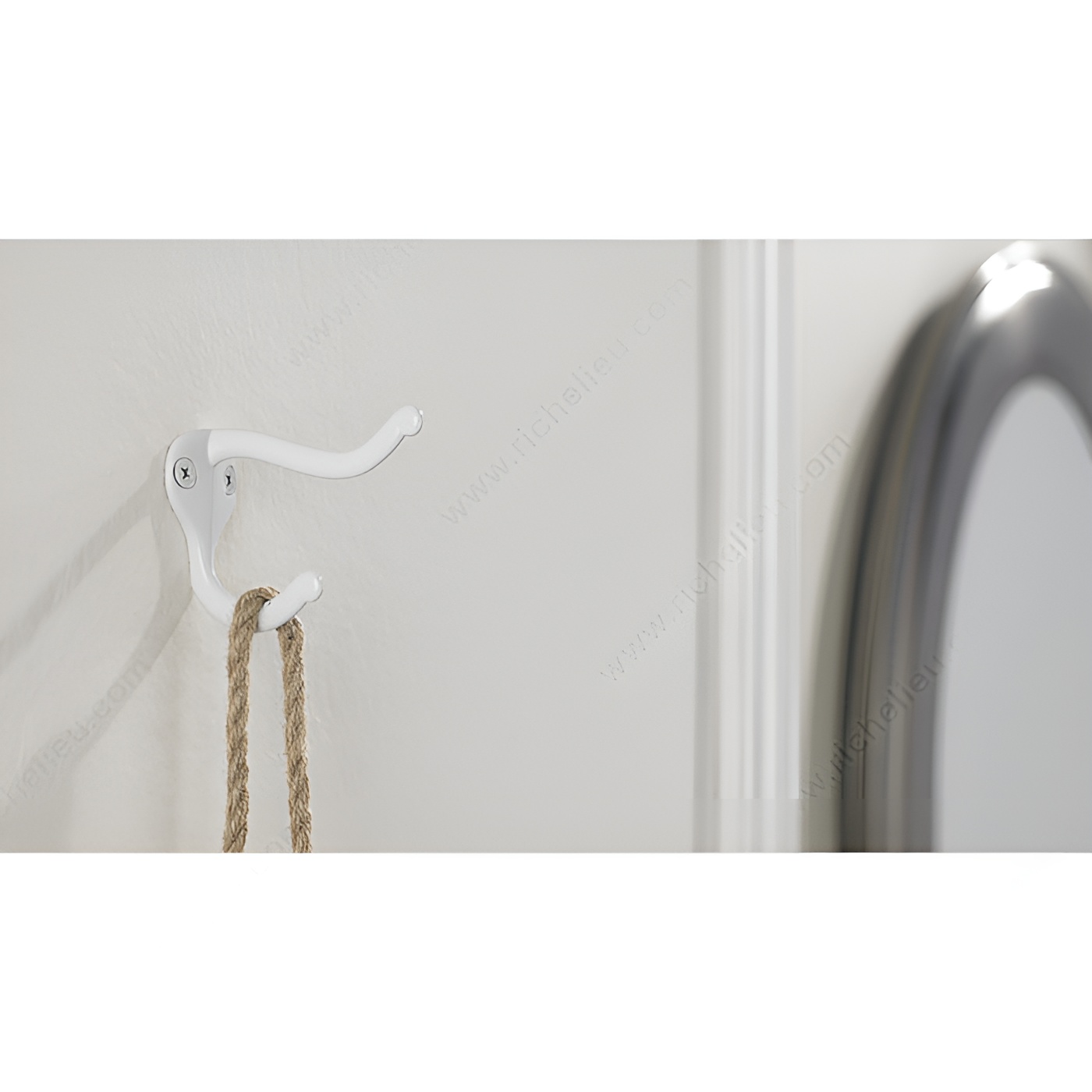 Richelieu BP7440130 2-3/4 in Utility Hook - 744 offers an elegant and practical solution for organizing your space. Designed to keep clutter at bay, this double hook brings a unified look to your entryway, mudroom, or any area in need of stylish storage. With a robust load capacity of 22 lbs, it effortlessly accommodates hats, coats, and bags, making it an essential addition to your home or workspace. Constructed from durable metal and finished in a clean white, the BP7440130 complements a variety of décors, ensuring versatility in placement. Its overall dimensions measure 1 31/32 in in height, 1 1/16 in in width, and a projection of 2 3/4 in, making it an unobtrusive yet functional choice for tight spaces. The center-to-center distance of 21/32 in allows for easy installation, and screws are included for your convenience. Whether you're a building professional or a knowledgeable homeowner, this utility hook is designed to enhance organization while maintaining a polished appearance. Say goodbye to disarray and embrace the simplicity and efficiency that the Richelieu BP7440130 brings to your surroundings.