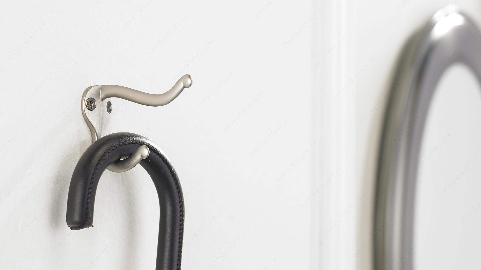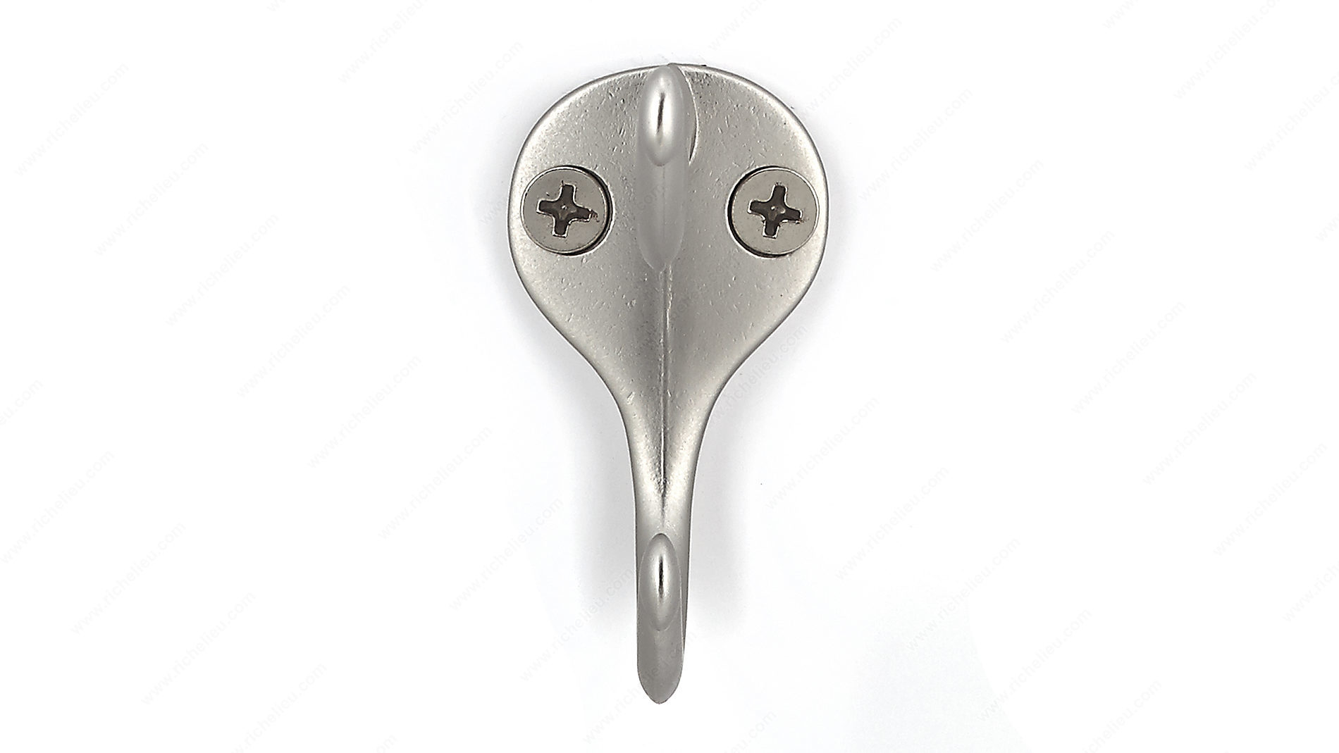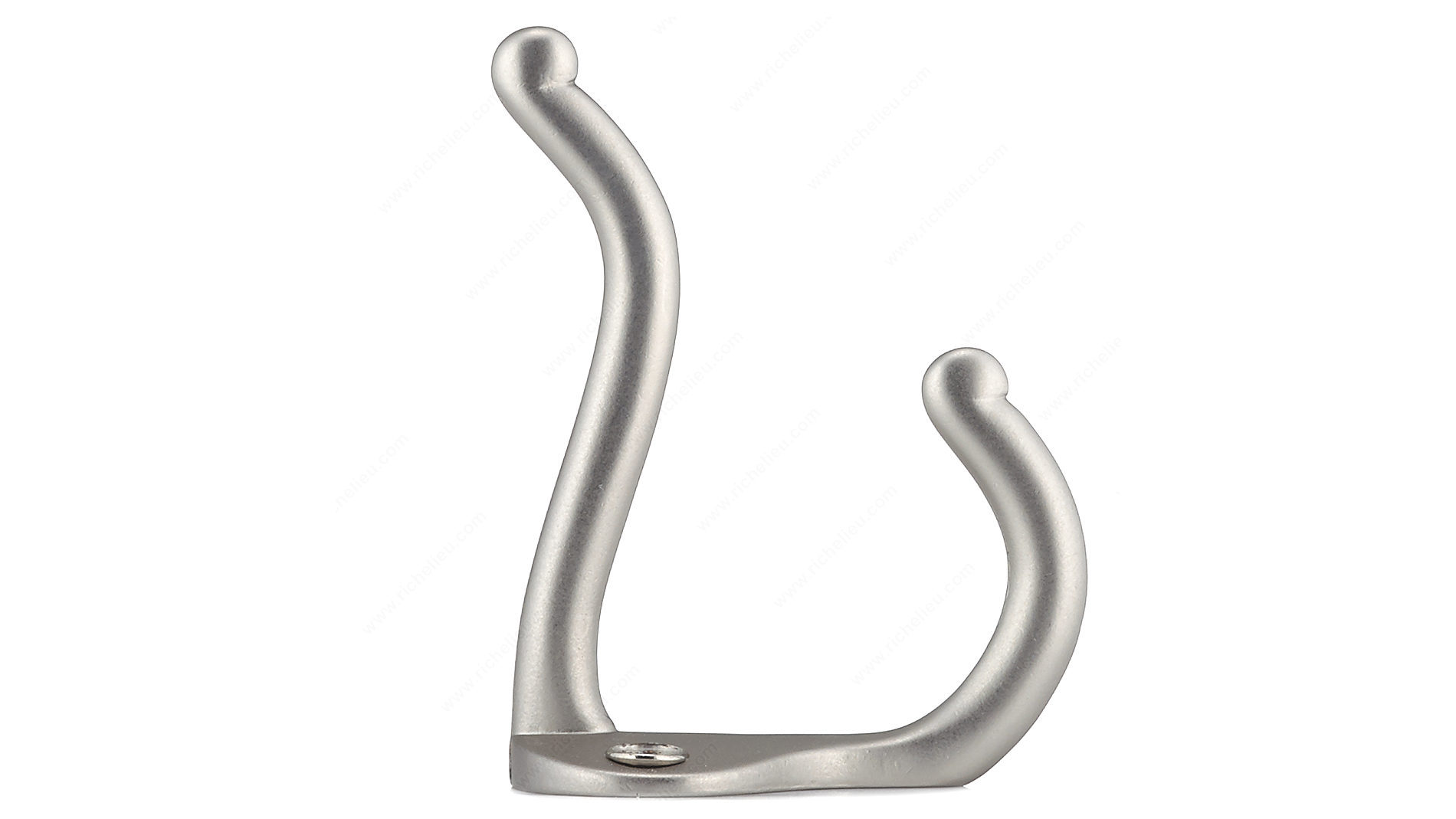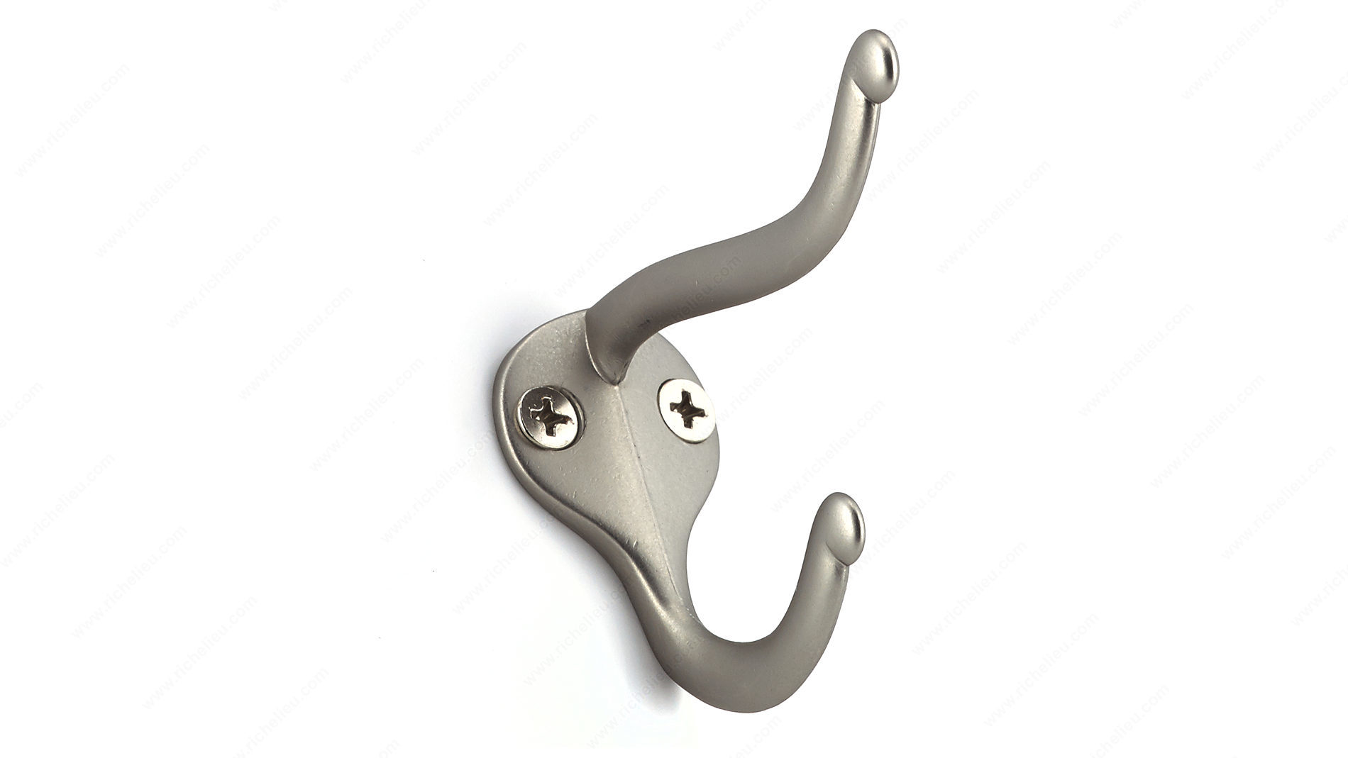 Richelieu BP74421184 2-3/4 in Utility Hook - 744 is the perfect solution for keeping your space organized while adding a touch of modern elegance. Designed with a sleek matte nickel finish, this double hook combines functionality and style, making it an ideal addition to any entryway, hallway, or closet. With an overall height of 1 31/32 inches and a projection of 2 3/4 inches, the hook maintains a compact profile while providing ample utility. It features a center-to-center measurement of 21/32 inches, ensuring it can fit seamlessly into your existing decor. The hook's robust metal construction allows it to support a load capacity of up to 22 pounds, making it suitable for hanging coats, hats, bags, and other accessories. Available in a contemporary gray and chrome color scheme, the Richelieu utility hook enhances the aesthetic of your space without overwhelming it. Each hook comes with screws included for quick and easy installation. Say goodbye to clutter and embrace a more organized environment with this stylish and practical solution from Richelieu. Whether for residential or professional use, this utility hook is a smart choice for those seeking durability and design.
