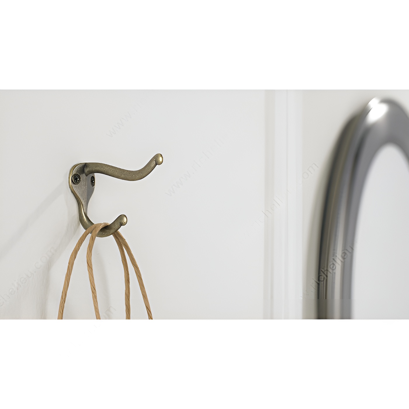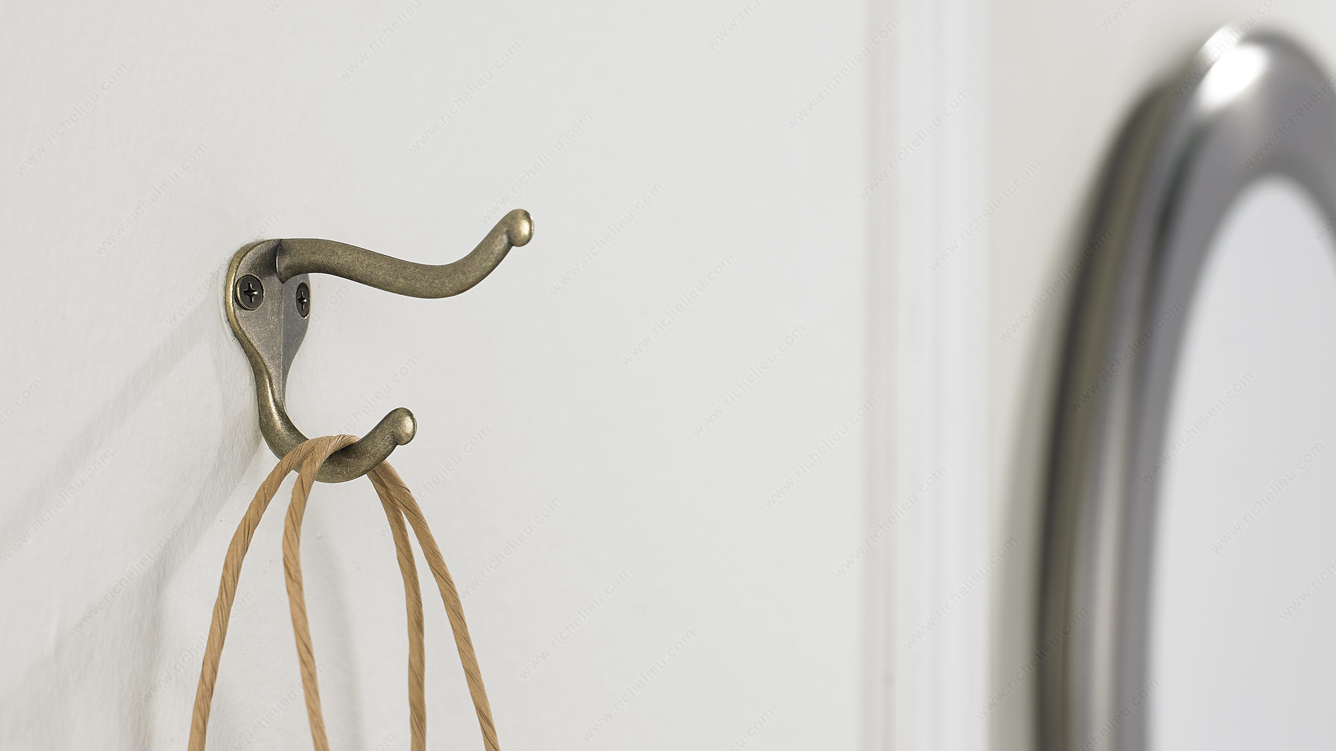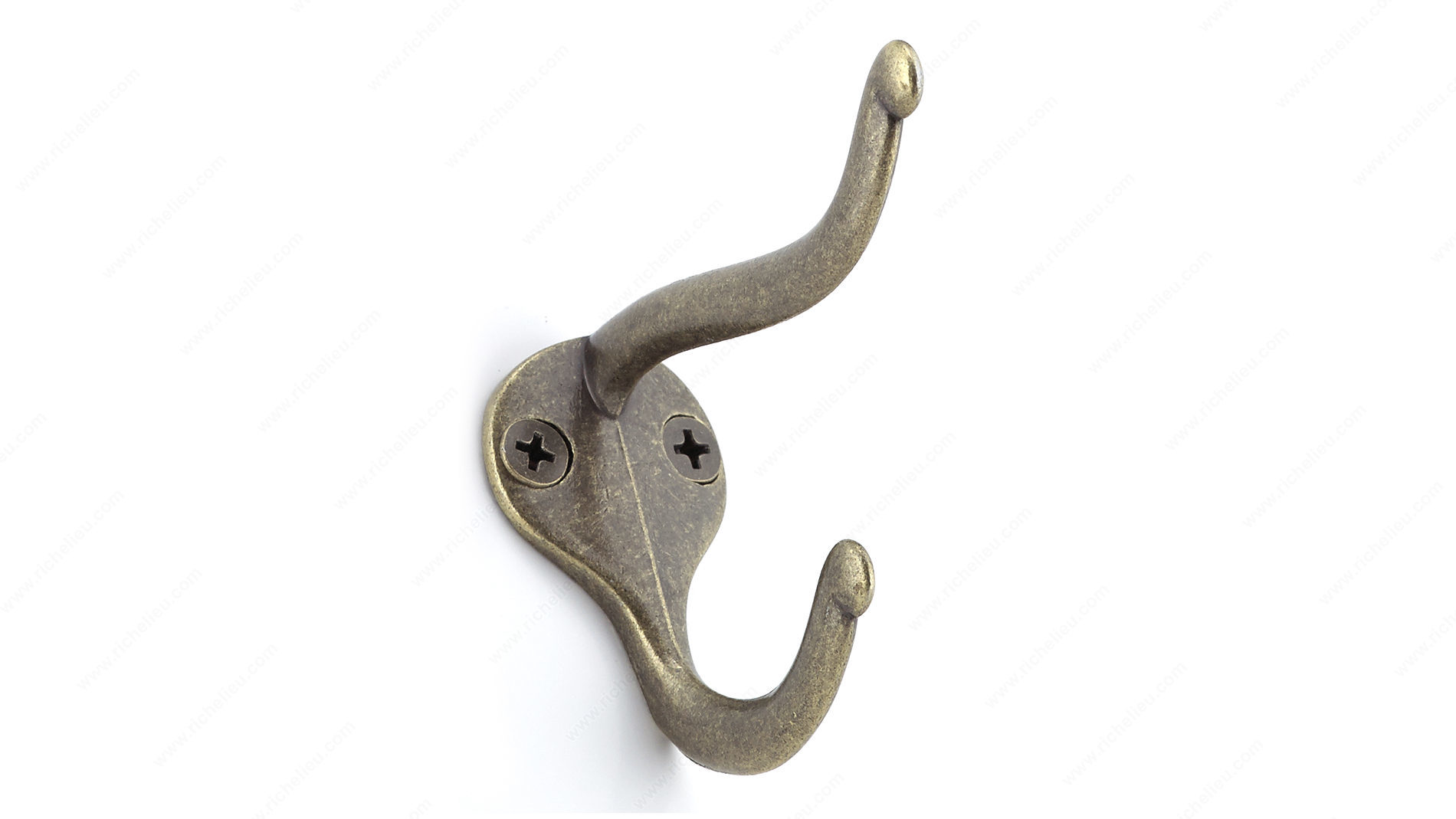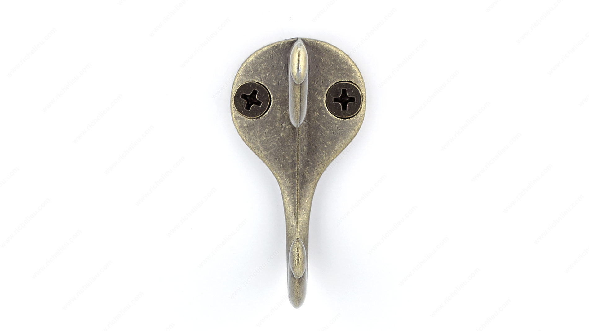 Richelieu BP74445BB 2-3/4 in Utility Hook - 744 elegantly combines functionality with style, making it an essential addition to your organization solutions. Designed with a burnished brass finish, this double utility hook not only provides a sleek appearance but also enhances the overall aesthetic of your space. With a load capacity of up to 22 lbs, it is ideal for hanging coats, hats, or bags, effectively reducing clutter in entryways, hallways, or mudrooms. Measuring 1 31/32 inches in height and 1 1/16 inches in width, the compact design fits seamlessly into any environment. The hook's projection of 2 3/4 inches ensures ample space for hanging items without encroaching on your living area. The center-to-center distance of 21/32 inches allows for easy installation, while the required screws are included for your convenience. The striking yellow and brass color scheme complements various interior styles, making it a versatile choice for both professional and residential settings. Say goodbye to disorganization and embrace a tidy atmosphere with the Richelieu BP74445BB Utility Hook, a perfect blend of durability, practicality, and aesthetic appeal.