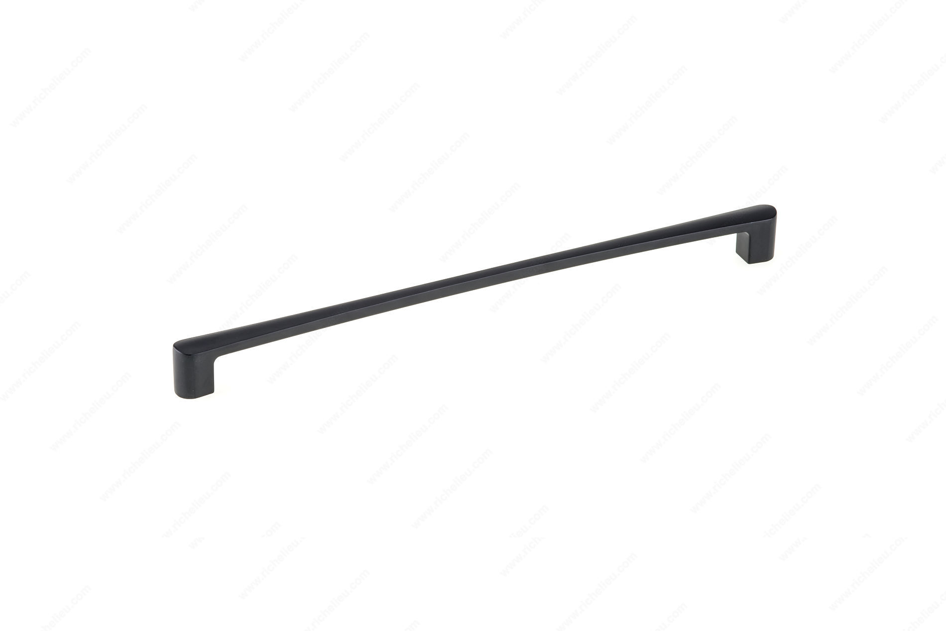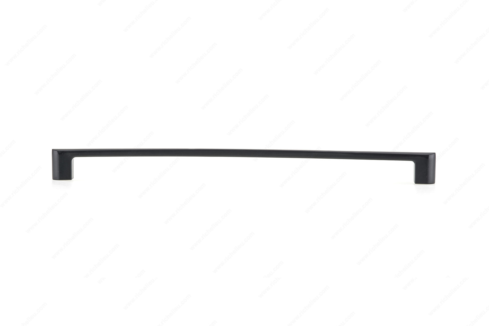 Richelieu BP7470320900 Modern Metal Pull - 7470 enhances the aesthetic of your cabinetry with its unique rounded and flared design. This pull is perfect for those looking to add a modern touch to drawer fronts and furniture, seamlessly blending functionality with style. Measuring 12 5/8 inches center to center, it offers a comfortable grip while maintaining a streamlined appearance. Crafted from durable zamak, this pull boasts a robust construction that ensures longevity and resilience. The matte black finish not only adds to its contemporary appeal but also resists fingerprints and smudges, keeping your hardware looking pristine. With overall dimensions of 13 1/4 inches in length, 9/32 inches in width, and a projection of 31/32 inches, it fits comfortably in various settings. The Richelieu BP7470320900 is designed for easy installation, coming with 8/32 inch screws included for your convenience. This pull is part of the complete 7470 collection, providing a cohesive look when used throughout your home. Ideal for kitchen remodels or furniture updates, this modern pull combines elegance and practicality, making it a valuable addition to any space.
