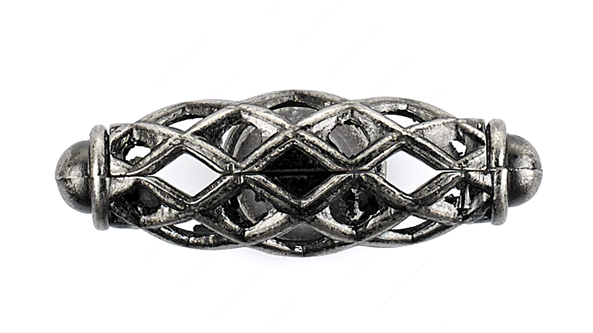Richelieu BP74958908 Traditional Metal Knob - 7495 showcases a refined design that perfectly complements your elegant décor. This birdcage knob offers a charming blend of old-fashioned influence and bold impact, making it an excellent choice for those looking to add a touch of sophistication to their space. Crafted from high-quality zamak, the knob features a natural iron finish that enhances its traditional style. With an overall length of 2 9/32 inches, a width of 25/32 inches, and a projection of 1 1/2 inches, it is designed to fit comfortably in hand while providing a sturdy grip. The gray and chrome color scheme adds versatility, allowing it to blend seamlessly with various interior styles. Included with the knob is an M4 screw for easy installation, ensuring that you can quickly update your cabinetry or furniture without hassle. This knob is part of the complete 7495/7671 collection, allowing for cohesive design throughout your home. Whether you're renovating or simply looking to refresh your space, the Richelieu BP74958908 Traditional Metal Knob is an ideal choice that combines elegance with functionality, elevating any room it graces.