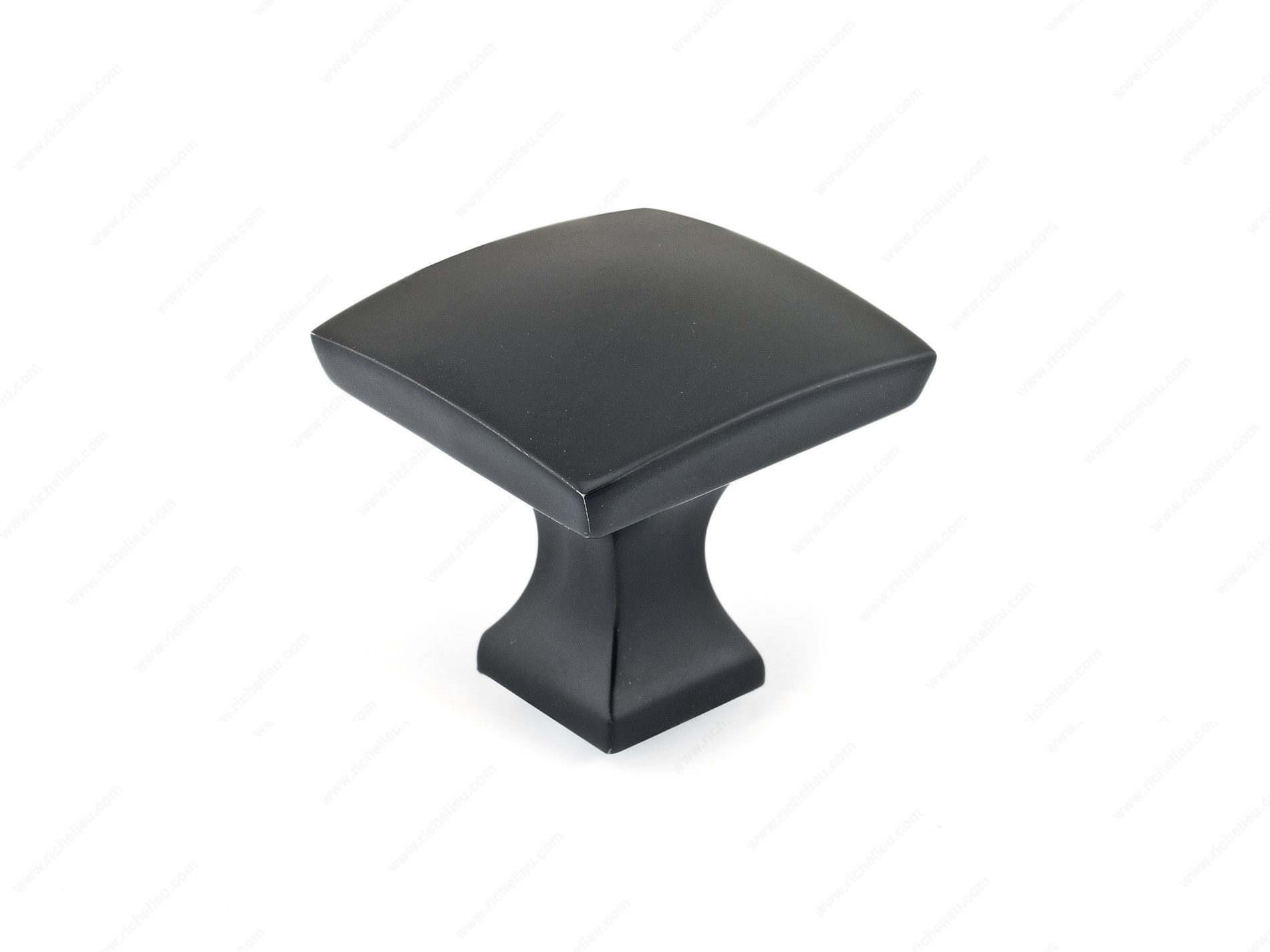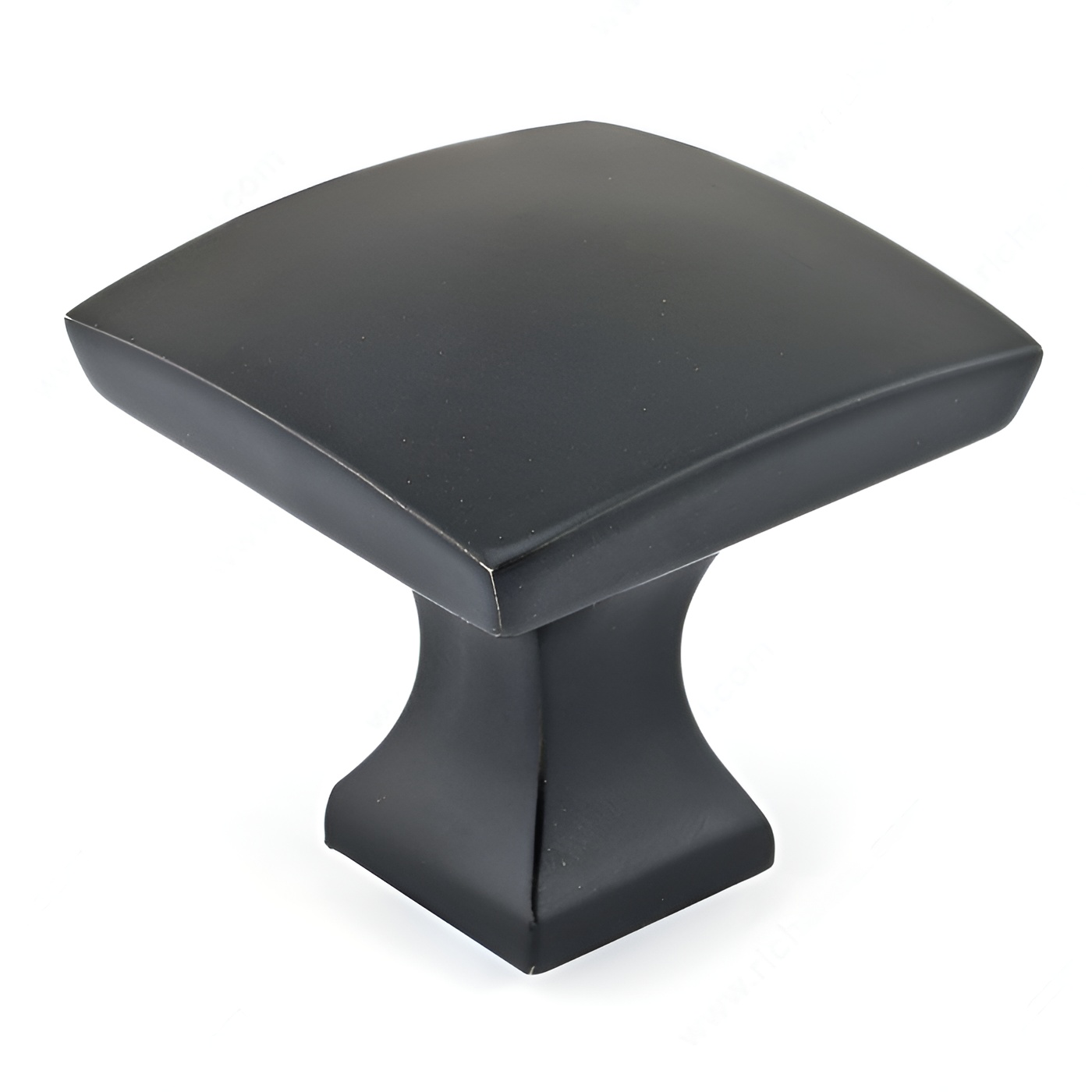 Richelieu BP76533900 Transitional Metal Knob - 7653 features a sleek, square design that seamlessly blends with various décors. Crafted from durable zamak, this knob boasts a matte black finish that adds a contemporary touch while ensuring longevity. Measuring 1 5/16 inches in length and width, and with a projection of 1 1/4 inches, it provides a comfortable grip that enhances functionality without compromising aesthetics. The clean lines and simple detailing of this transitional knob make it an ideal choice for kitchen cabinets, bathroom vanities, or furniture pieces, allowing for versatile integration into both modern and traditional spaces. The flared base further enhances its elegant appeal, making it a standout accessory in any room. Installation is straightforward, as the knob comes with an included 8/32-inch screw, ensuring that you can quickly and easily upgrade your cabinetry. The black color adds depth and sophistication, making it a perfect complement to lighter finishes or a bold statement against darker tones. Whether you are a building professional or a knowledgeable homeowner, the Richelieu BP76533900 knob combines style and practicality, making it a perfect choice for your next project. Enjoy the blend of form and function with this exquisite hardware solution.