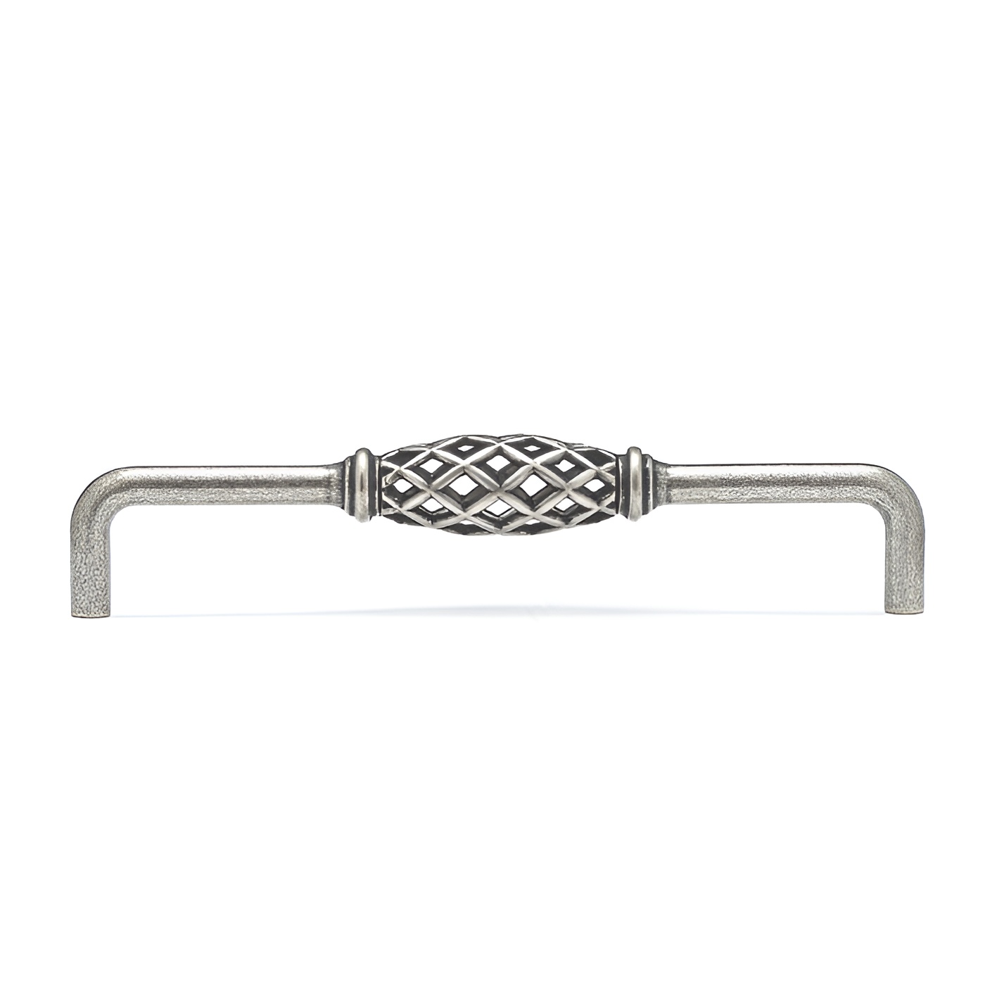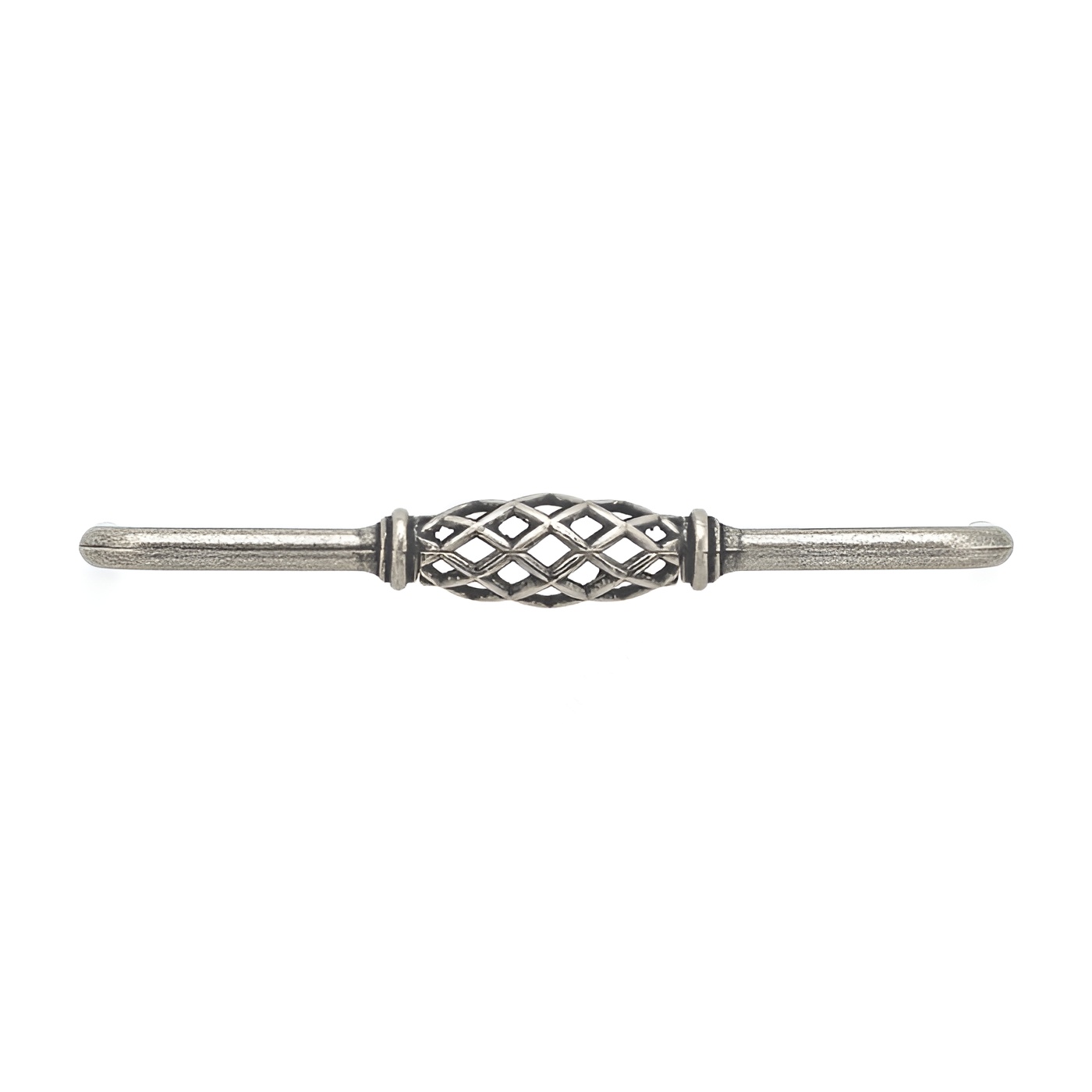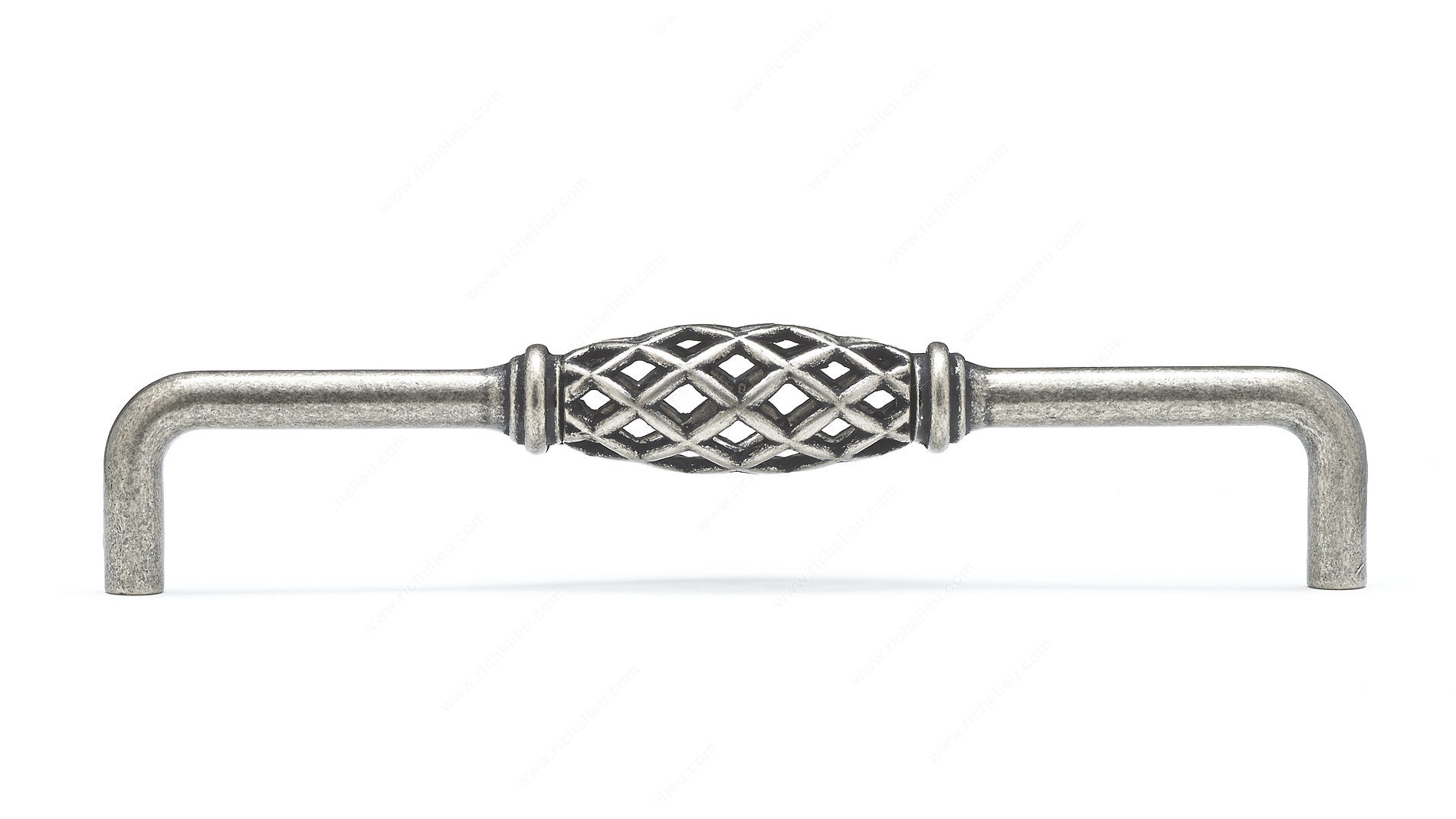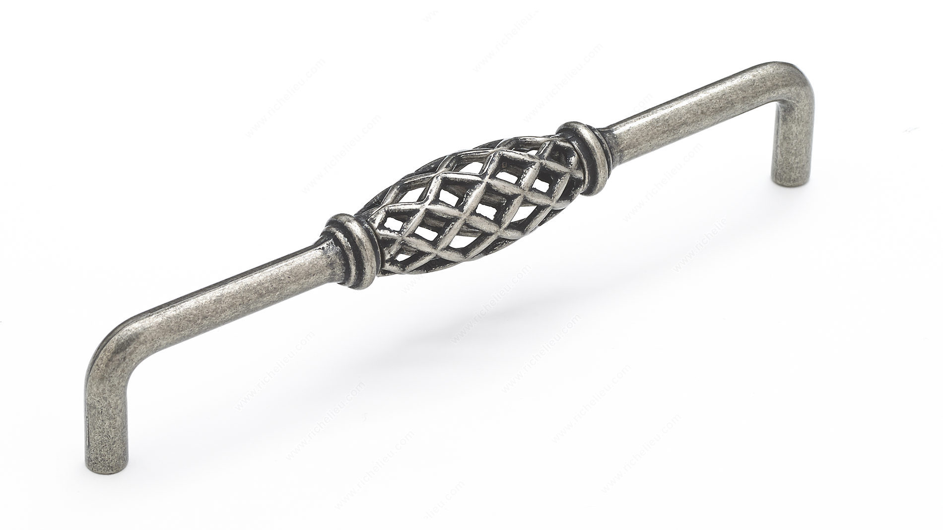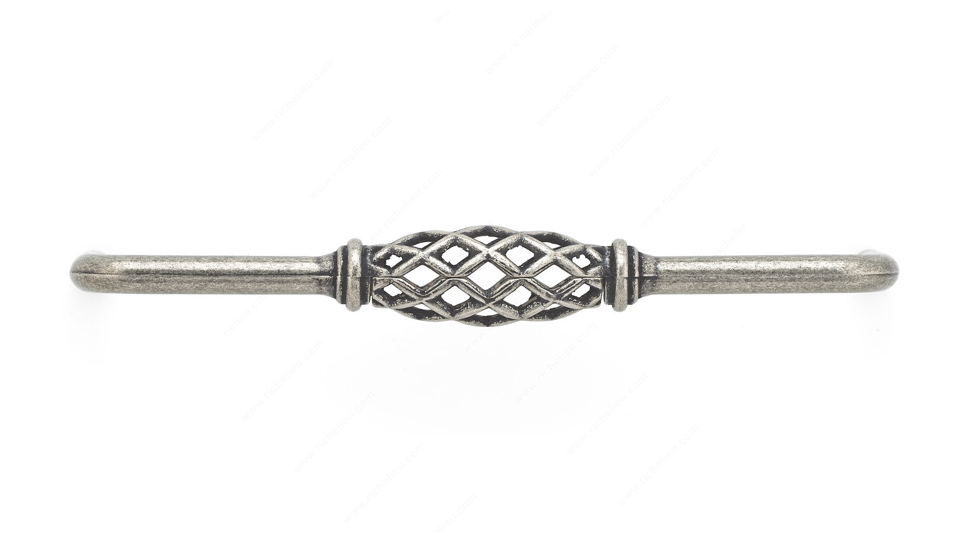 Richelieu BP767160908 Traditional Metal Pull - 7671 combines timeless elegance with practical functionality, making it an ideal choice for your elegant décor. This traditional metal pull features a beautifully designed birdcage handle that adds a touch of sophistication to any cabinetry or furniture piece. Crafted from durable zamak material, it ensures long-lasting performance while enhancing the aesthetic appeal of your space. With a center-to-center measurement of 6 5/16 inches, this pull is designed to fit seamlessly into your existing installations. The overall dimensions measure 6 5/8 inches in length, with a projection of 1 3/8 inches, and a width of 13/16 inches, making it comfortable to grip and easy to use. The natural iron finish in gray and chrome complements a wide variety of styles, from rustic to modern, ensuring that it blends beautifully with your design vision. Included with the pull are M4 screws for effortless installation. This piece is part of the complete collection by model 7495/7671, allowing for cohesive design options throughout your home. Elevate your interiors with Richelieu’s BP767160908 Traditional Metal Pull, where style meets functionality.