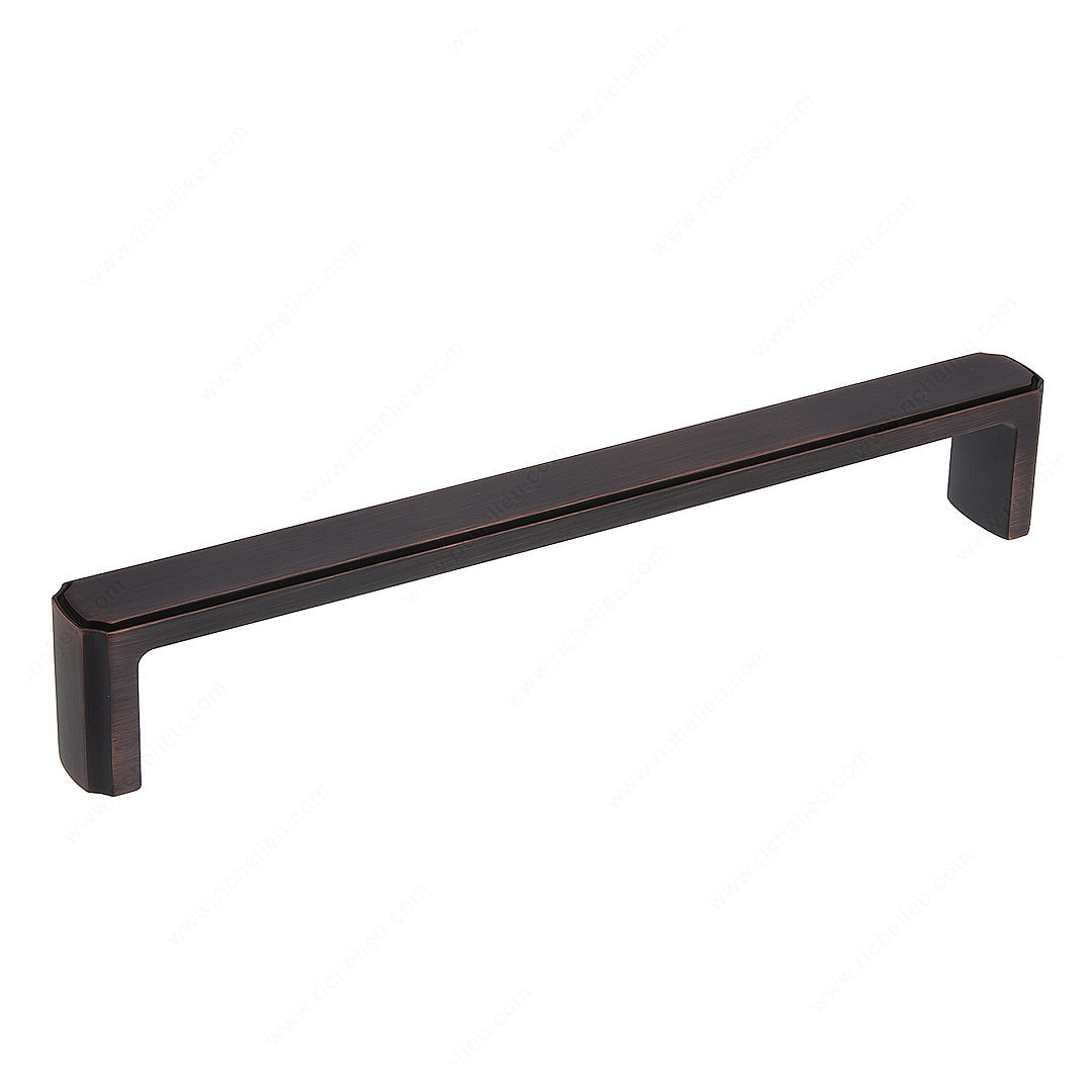 Richelieu BP770192BORB Transitional Metal Pull - 770 combines elegance with functionality, making it an ideal choice for both kitchen and bathroom cabinetry. This transitional rectangular pull features beveled edges that add a discreet charm, seamlessly blending with various décor styles. Finished in a sophisticated brushed oil-rubbed bronze, it brings warmth and depth, enhancing the overall aesthetic of your space. With an overall length of 8 1/32 inches and a center-to-center measurement of 7 9/16 inches, this pull is designed for comfortable grip and ease of use. Its dimensions, including a projection of 1 1/4 inches and a width of 25/32 inches, ensure it stands out without overwhelming your cabinetry. Crafted from durable zamak, this pull is built to withstand daily use while maintaining its stylish appearance. Installation is straightforward, as it includes an 8/32 inch screw for a secure fit. The Richelieu BP770192BORB is part of the complete 770 collection, allowing for cohesive design across your hardware selections. Whether you're updating your home or working on a new build, this pull offers both beauty and practicality, making it a smart choice for discerning homeowners and professionals alike.