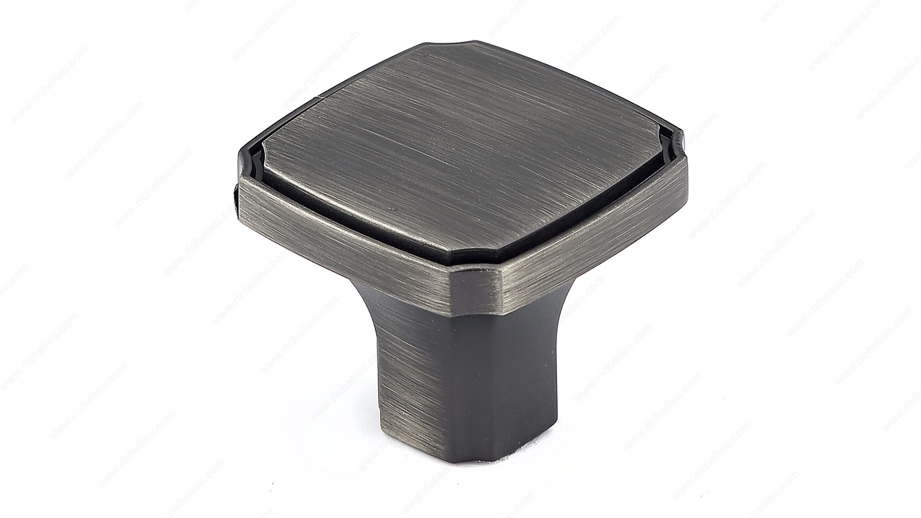Richelieu BP77035143 Transitional Metal Knob - 770 seamlessly blends sophistication with functionality, making it an ideal choice for enhancing your kitchen and bathroom furniture. Designed with discreet edge and corner details, this square knob adds a touch of elegance to any cabinetry while maintaining a transitional aesthetic that complements various styles. Crafted from durable metal, the knob features an antique nickel finish that not only elevates its visual appeal but also ensures long-lasting performance. Measuring 1 3/8 inches in both length and width, with a projection of 1 3/16 inches, it is perfectly sized for comfortable grip and easy operation. The included 8/32 inch screw simplifies installation, allowing you to effortlessly upgrade your space. Available in a sophisticated gray and chrome color scheme, the Richelieu BP77035143 is part of the complete 770 collection, offering additional design options to harmonize your interiors. Whether you're refreshing existing cabinetry or completing a new installation, this transitional knob provides both style and functionality, making it a smart choice for building professionals and discerning homeowners alike. Enhance your spaces with this elegant hardware that promises to make a lasting impression.