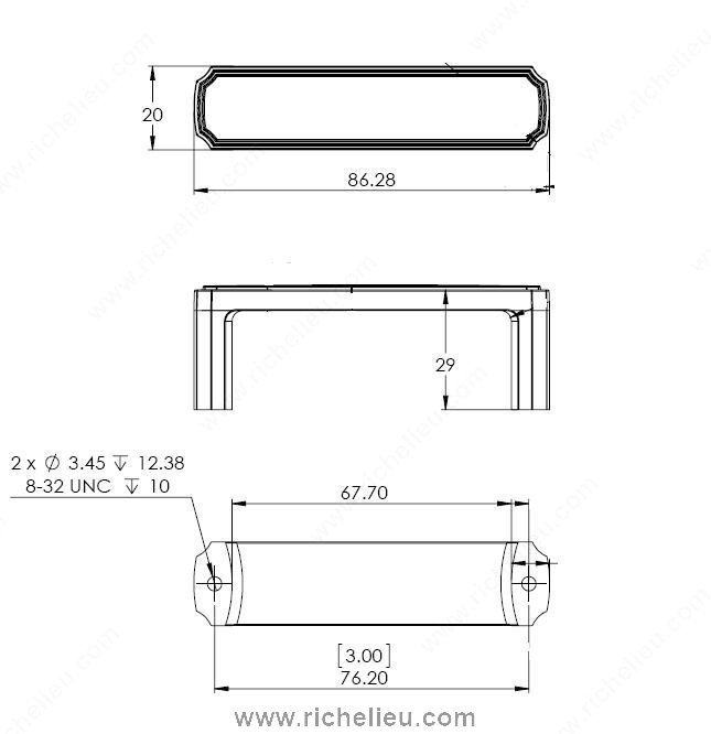 Richelieu BP77076BORB Transitional Metal Pull - 770 combines functionality with understated elegance, making it an ideal addition to both kitchens and bathrooms. This rectangular pull features beveled edges that enhance its subtle charm, seamlessly fitting into a variety of décor styles. Crafted from durable zamak, this pull ensures longevity while offering a refined aesthetic. With a center-to-center measurement of 3 inches, the BP77076BORB is perfectly sized for cabinet doors or drawers, providing a comfortable grip. Its brushed oil-rubbed bronze finish, characterized by rich brown and bronze tones, adds warmth and sophistication to your space. The pull measures 3 3/8 inches in length, 25/32 inches in width, and projects 1 5/32 inches from the surface, making it both practical and visually appealing. Each pull comes complete with 8/32 inch screws for easy installation, ensuring a hassle-free upgrade to your cabinetry. This piece is part of the complete 770 collection, allowing for cohesive design throughout your home. The Richelieu BP77076BORB Transitional Metal Pull is a stylish choice for those who appreciate quality craftsmanship and timeless design.