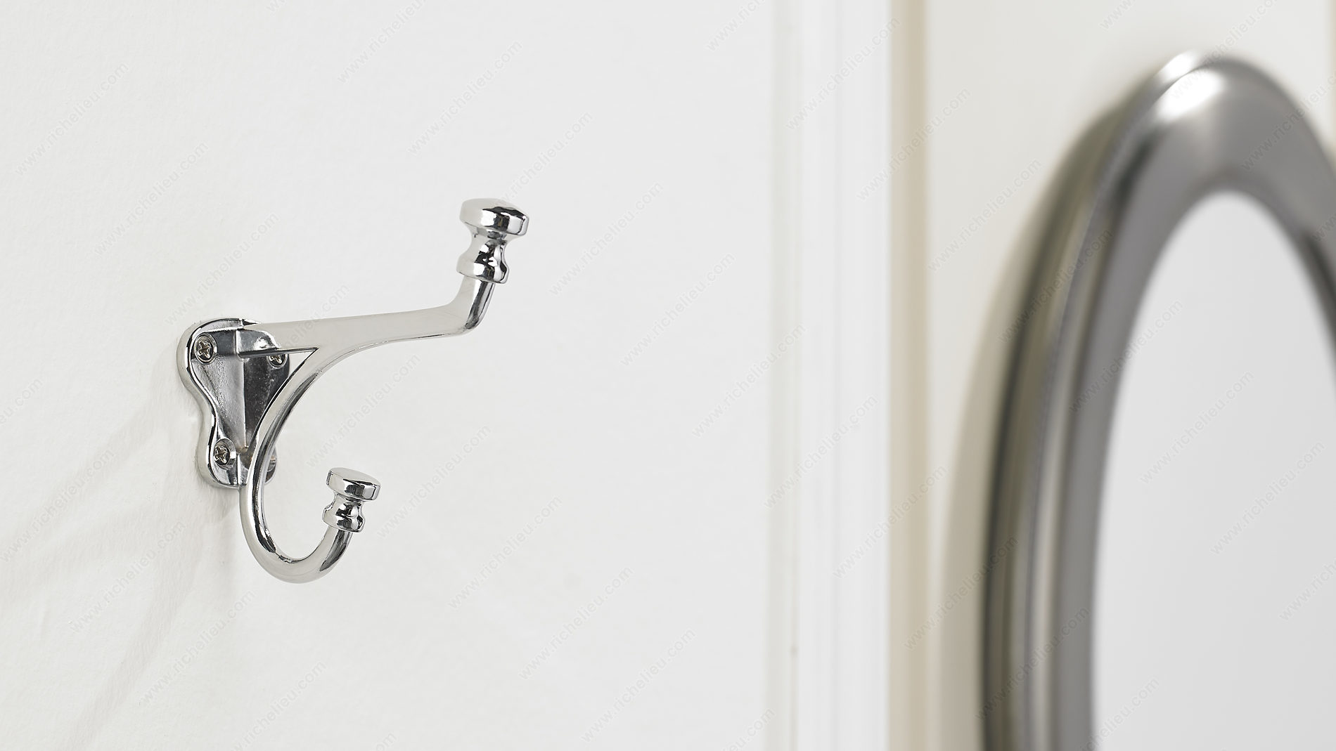Richelieu BP77143140 Classic Metal Hook - 771 offers a perfect blend of style and functionality, making it an excellent choice for any space in your home. Featuring a dual arm design, this classic metal hook effectively doubles your storage potential while enhancing your decor with its elegant chrome finish. Ideal for use in bedrooms, bathrooms, entryways, mudrooms, and closets, it effortlessly adds a touch of sophistication and a traditional feel to modern interiors. With overall dimensions of 4 7/32 inches in height and a projection of 4 9/32 inches, this hook is both compact and practical. It has a load capacity of 22 lbs, ensuring it can securely hold a variety of items, from coats to bags. The hook is available in stylish gray and chrome or sleek black finishes, allowing you to choose the perfect match for your decor. Installation is straightforward, as screws are included, and it can be mounted on walls or doors with ease. The hook's center-to-center measurement is 1 5/32 inches, providing ample space for hanging. Enhance your organization and elevate your space with the Richelieu Classic Metal Hook - a timeless accessory that combines beauty and utility seamlessly.