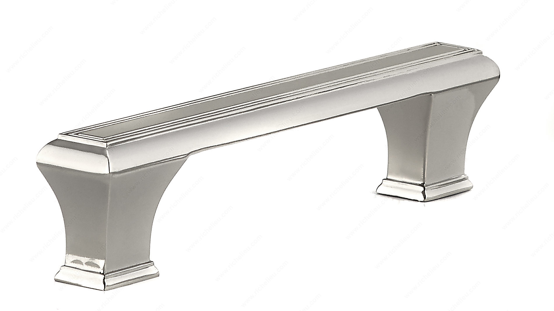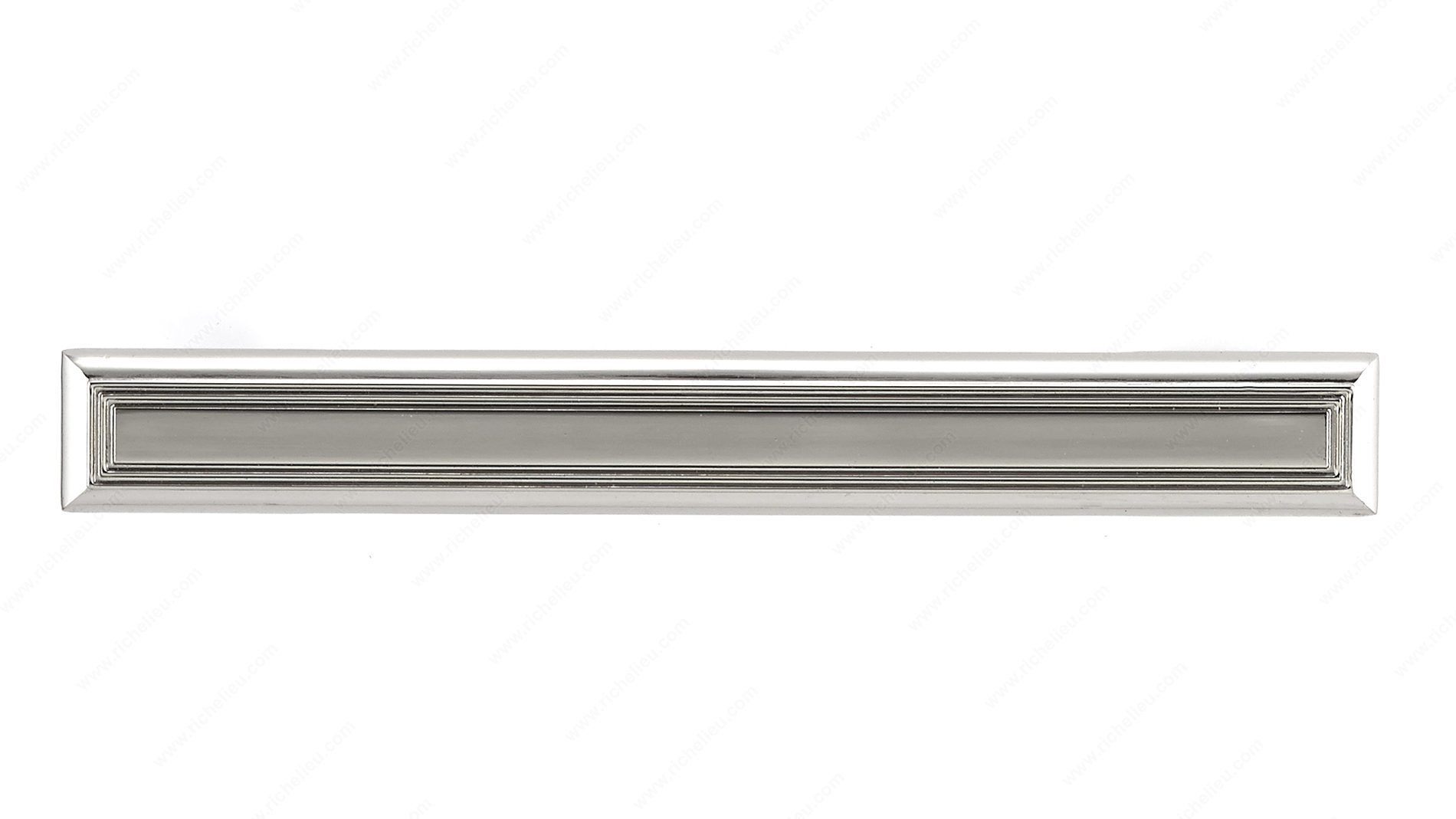 Richelieu BP775128180 Traditional Metal Pull - 7759 offers a classic rectangular design that enhances both kitchen and bathroom cabinetry. With a sophisticated polished nickel finish, this pull adds a touch of elegance to any room. The beveled edges and tapered feet contribute to its refined aesthetic, making it an attractive choice for professionals and discerning homeowners alike. Measuring 6 7/32 inches in length and featuring a center-to-center distance of 5 1/32 inches, this pull is designed for easy installation. The projection of 1 5/16 inches ensures a comfortable grip while maintaining a streamlined profile. Crafted from durable zamak, it promises long-lasting performance and strength. The BP775128180 is part of the complete 7753/7759 collection, allowing for cohesive design across your space. Each pull comes with 8/32 inch screws for straightforward mounting. Available in a stylish gray and chrome color combination, this traditional pull can seamlessly blend with various design themes, from contemporary to classic. Whether you are upgrading your cabinetry or designing a new space, the Richelieu Traditional Metal Pull is an excellent choice that combines functionality with timeless style.